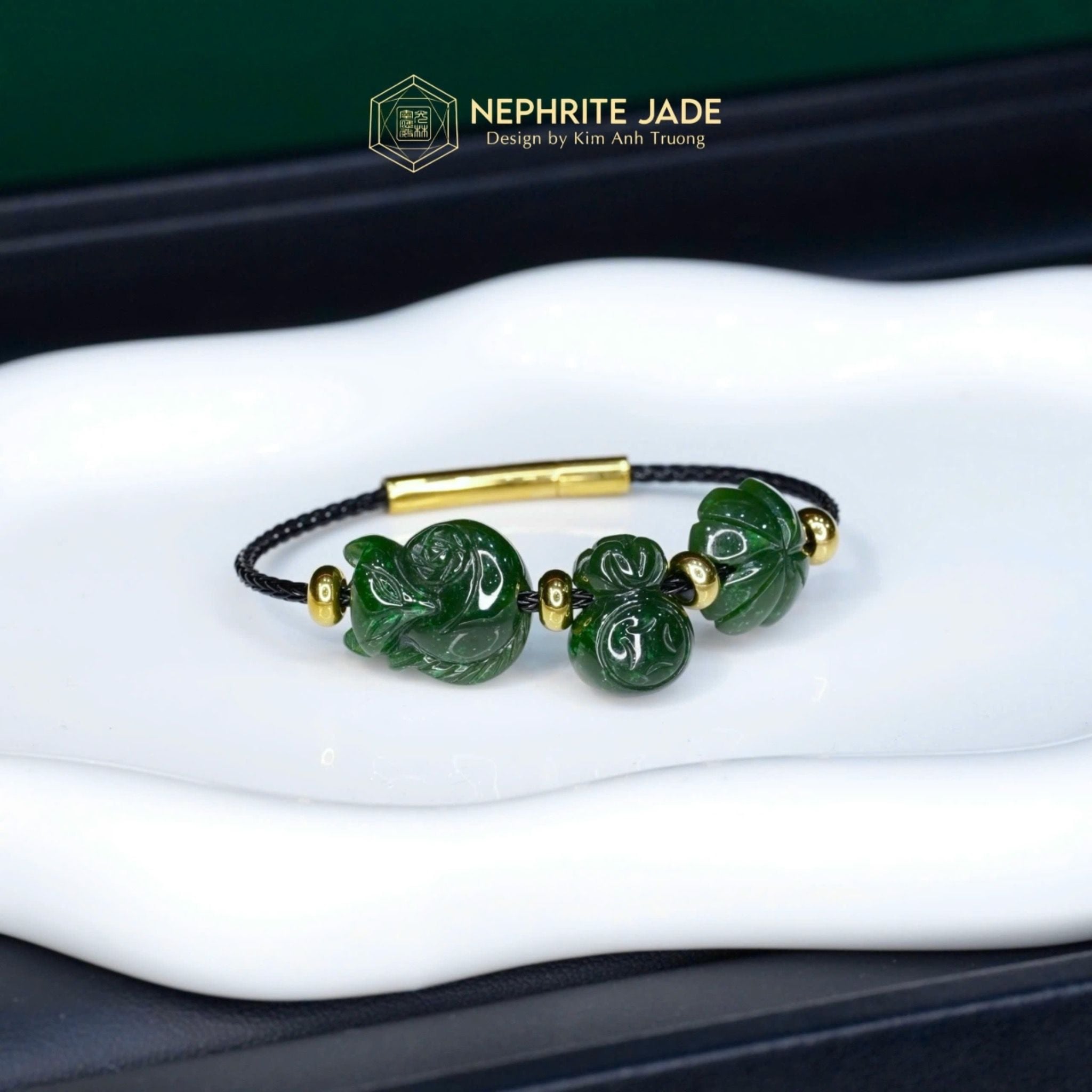 Vòng Dây Cáp Ngọc Bích Canada Túi Tiền Kim Bảo Mix Cỏ Bốn Lá Và Bà Hồ Ly Phượng VIP (Không Kén Mệnh)