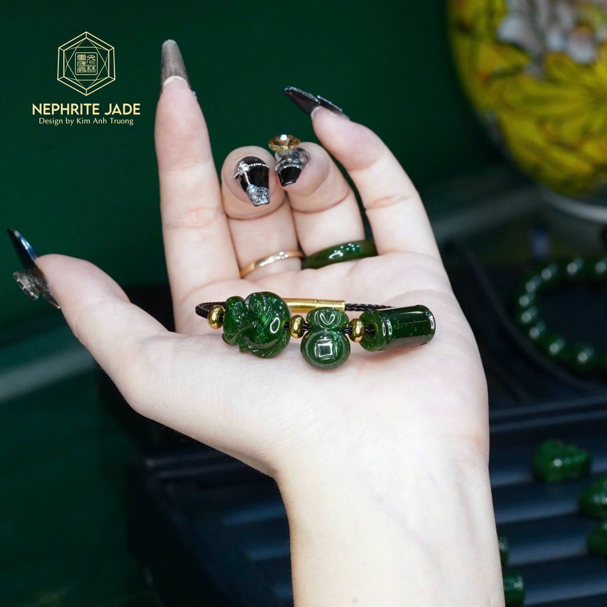 Vòng Dây Cáp Ngọc Bích Canada Vip Lu Thống Mix Hồ Ly, Túi Tiền Tài Lộc (Không Kén Mệnh)