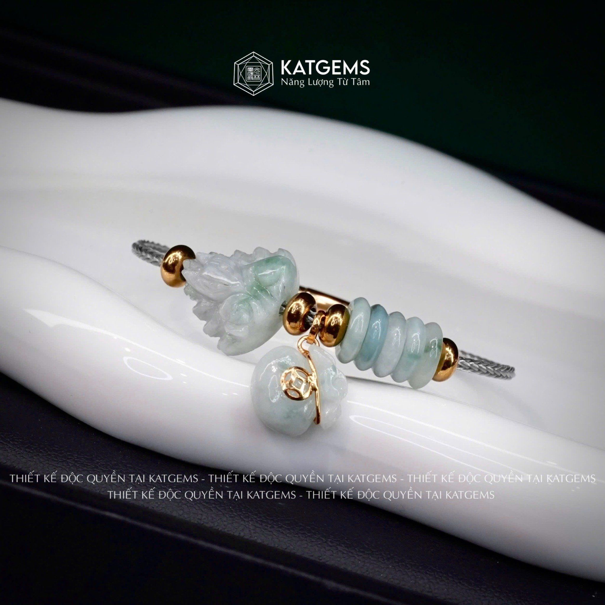 Vòng Dây Cáp Ngọc Hoa Bay Ngũ Điếu Mix Hồ Ly Chúa Và Túi Tiền Kim Bảo Charm Rơi Vàng Trang Sức (Không Kén Mệnh) 200525-21