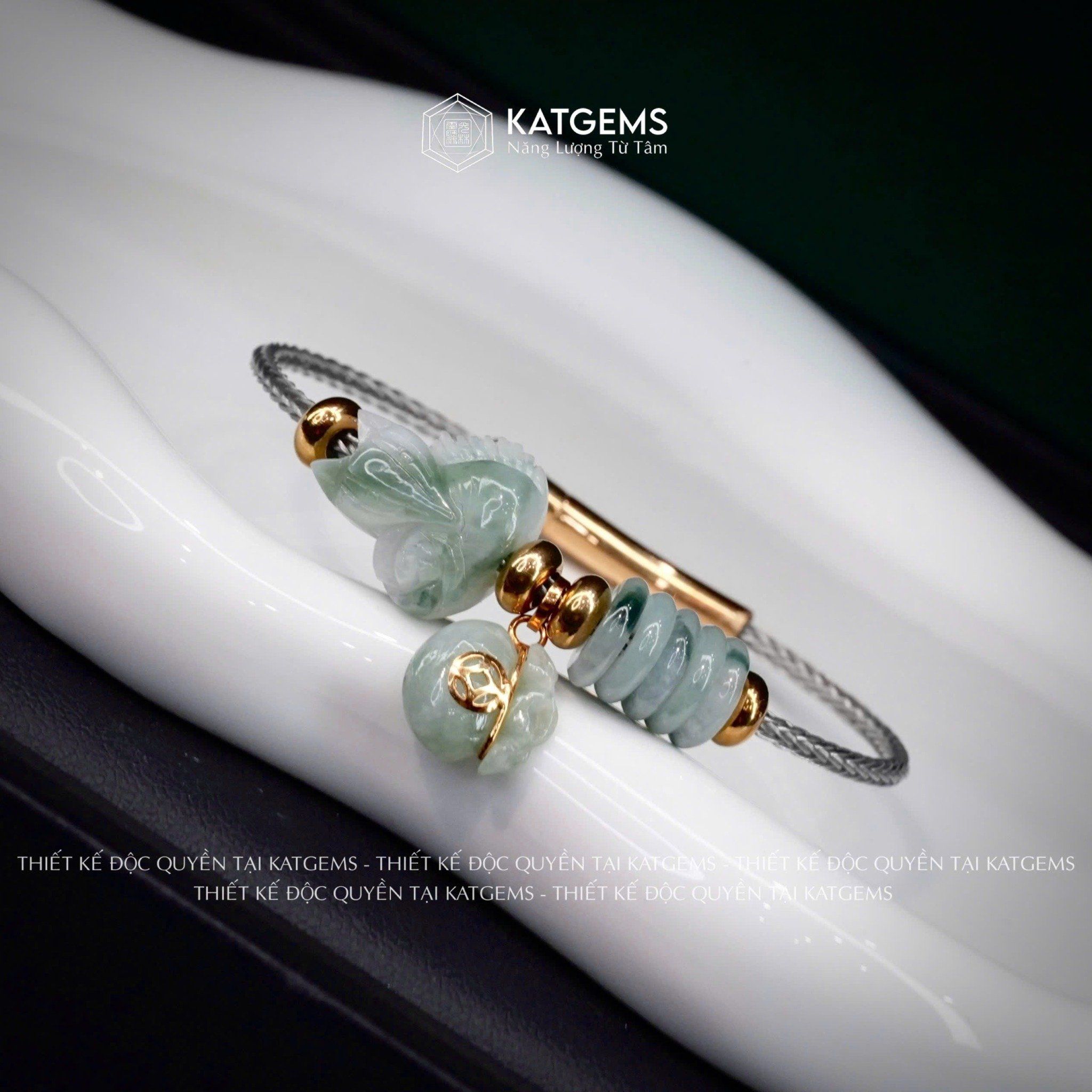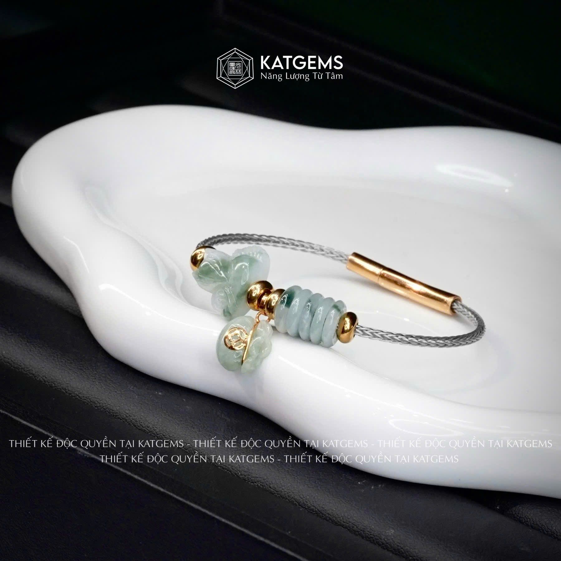Vòng Dây Cáp Ngọc Hoa Bay Ngũ Điếu Mix Hồ Ly Phượng Và Túi Tiền Kim Bảo Charm Rơi Vàng Trang Sức (Không Kén Mệnh)
