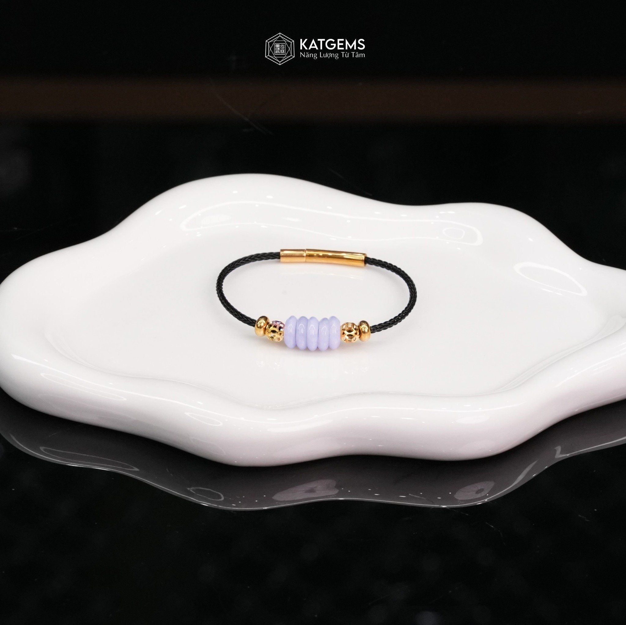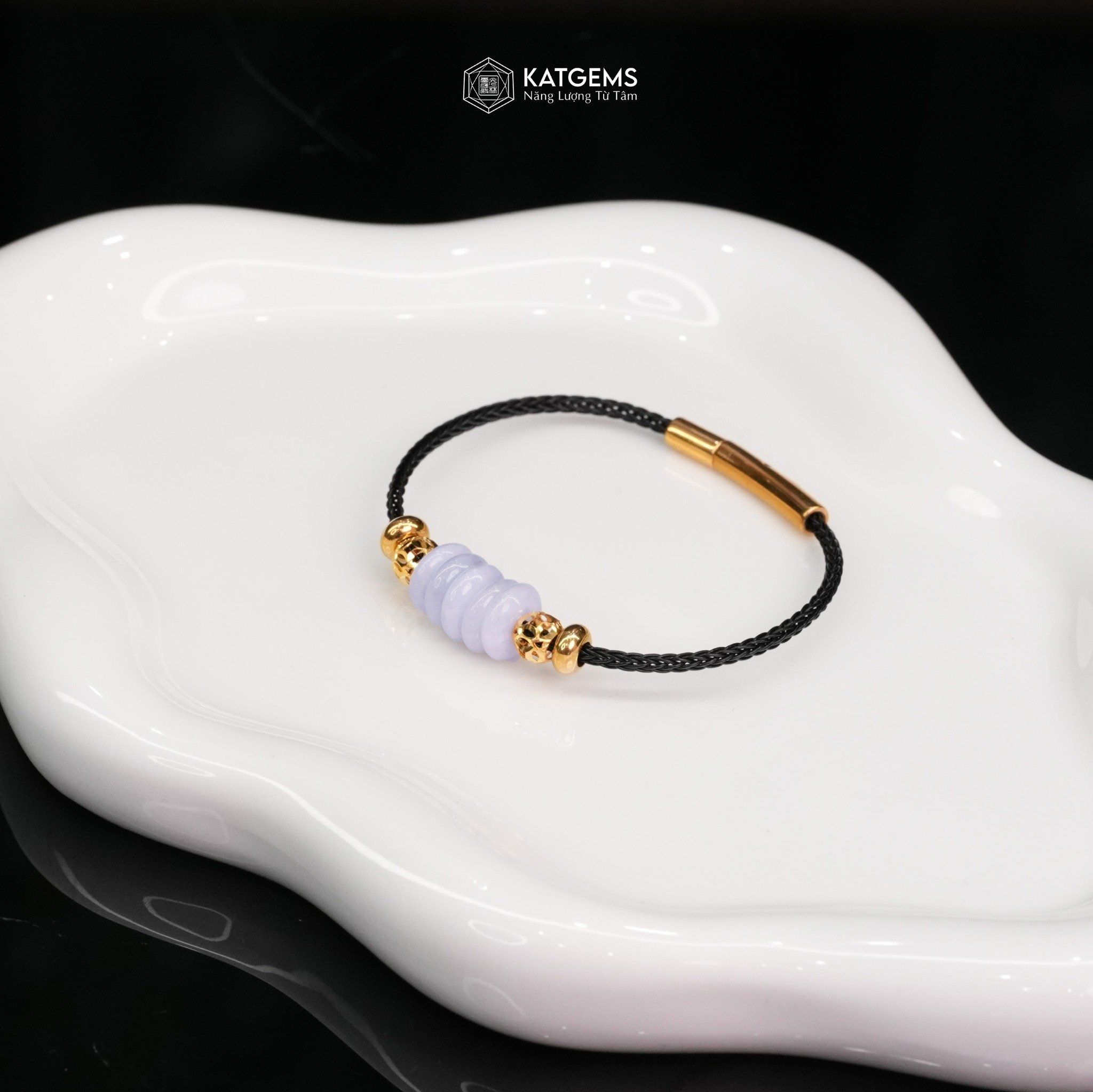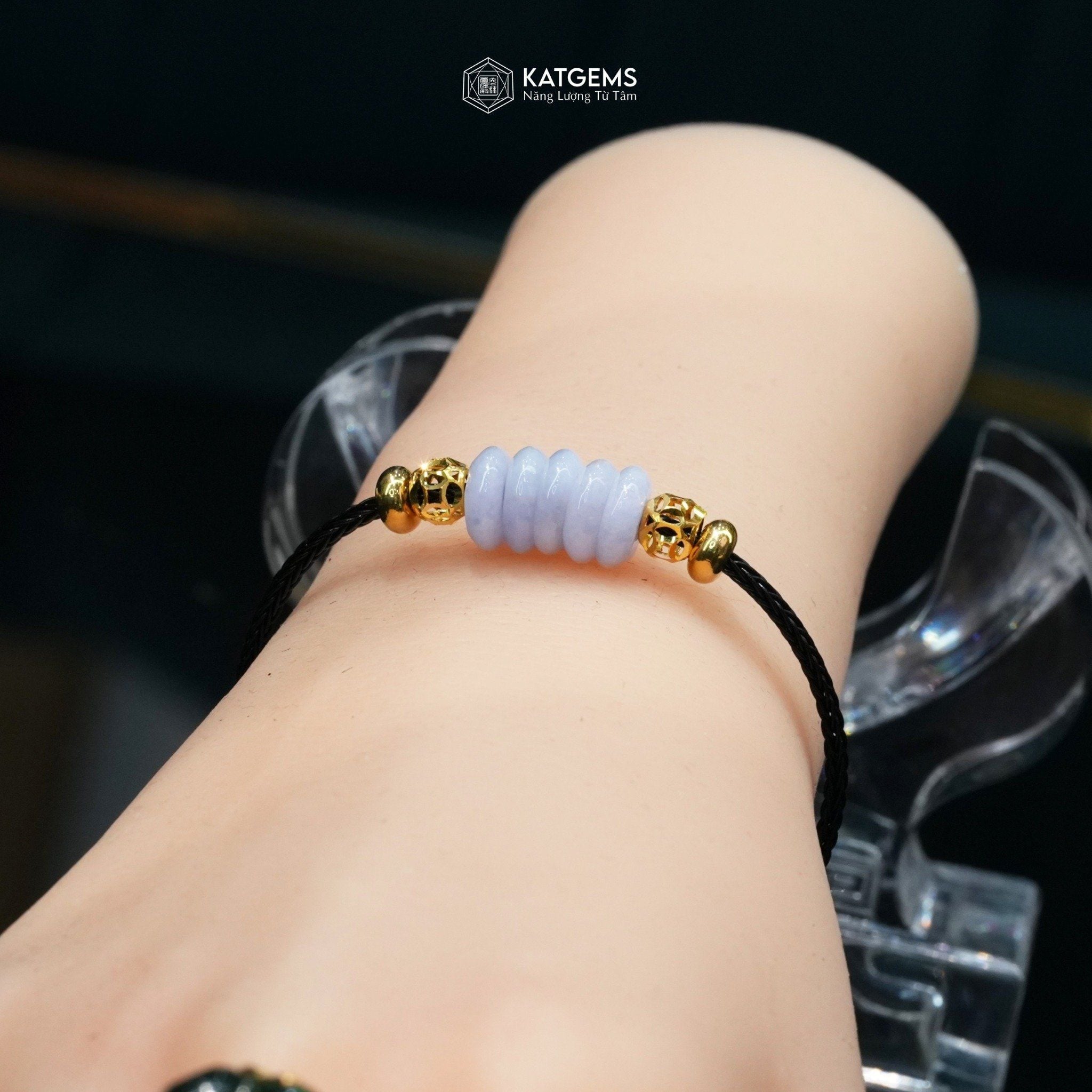 Vòng Dây Cáp Ngũ Điếu Phỉ Thúy Phớt Tím Tử La Lan Mix 2 Bi Kim Tiền Vàng Trang Sức (Không Kén Mệnh) ( SL Có Hạn )