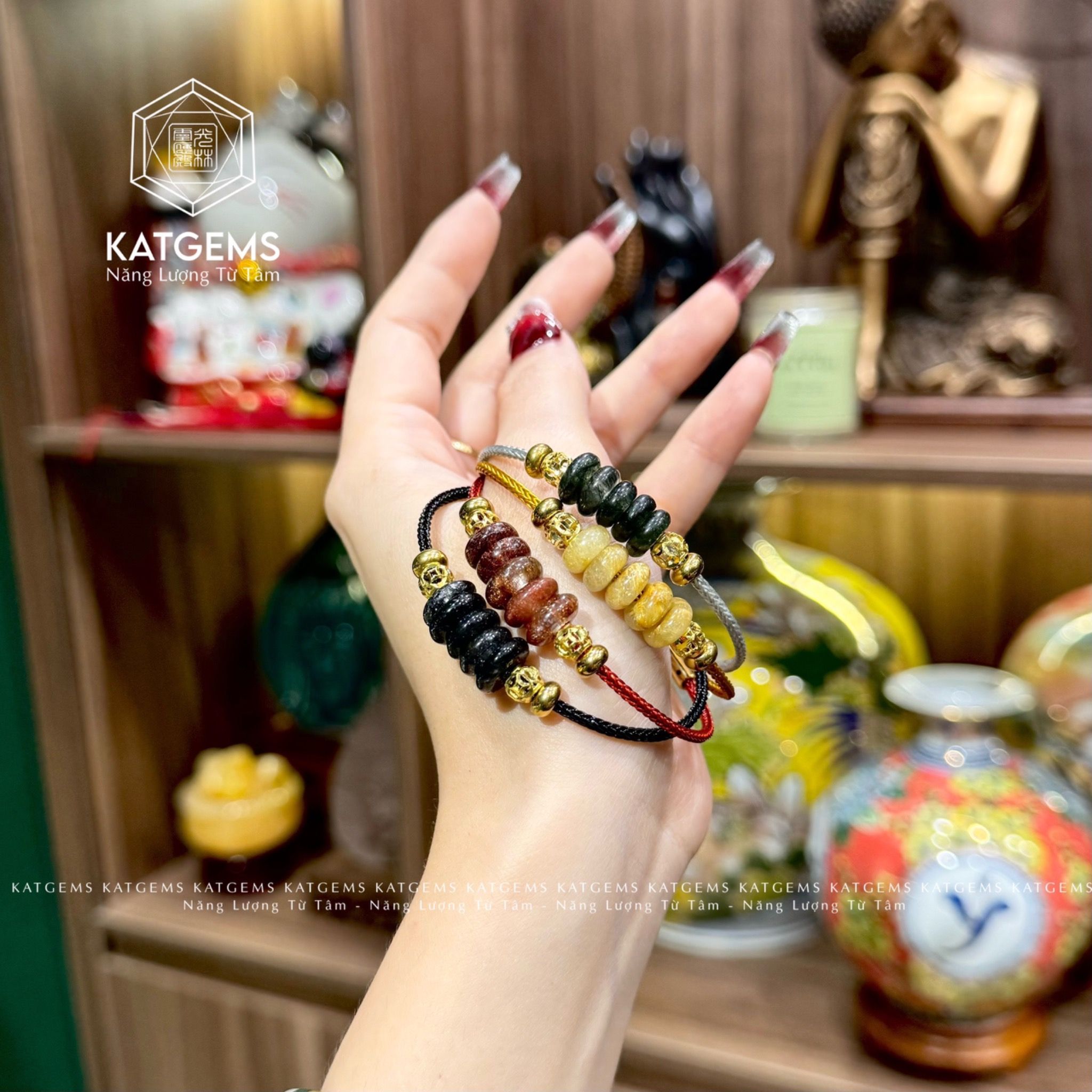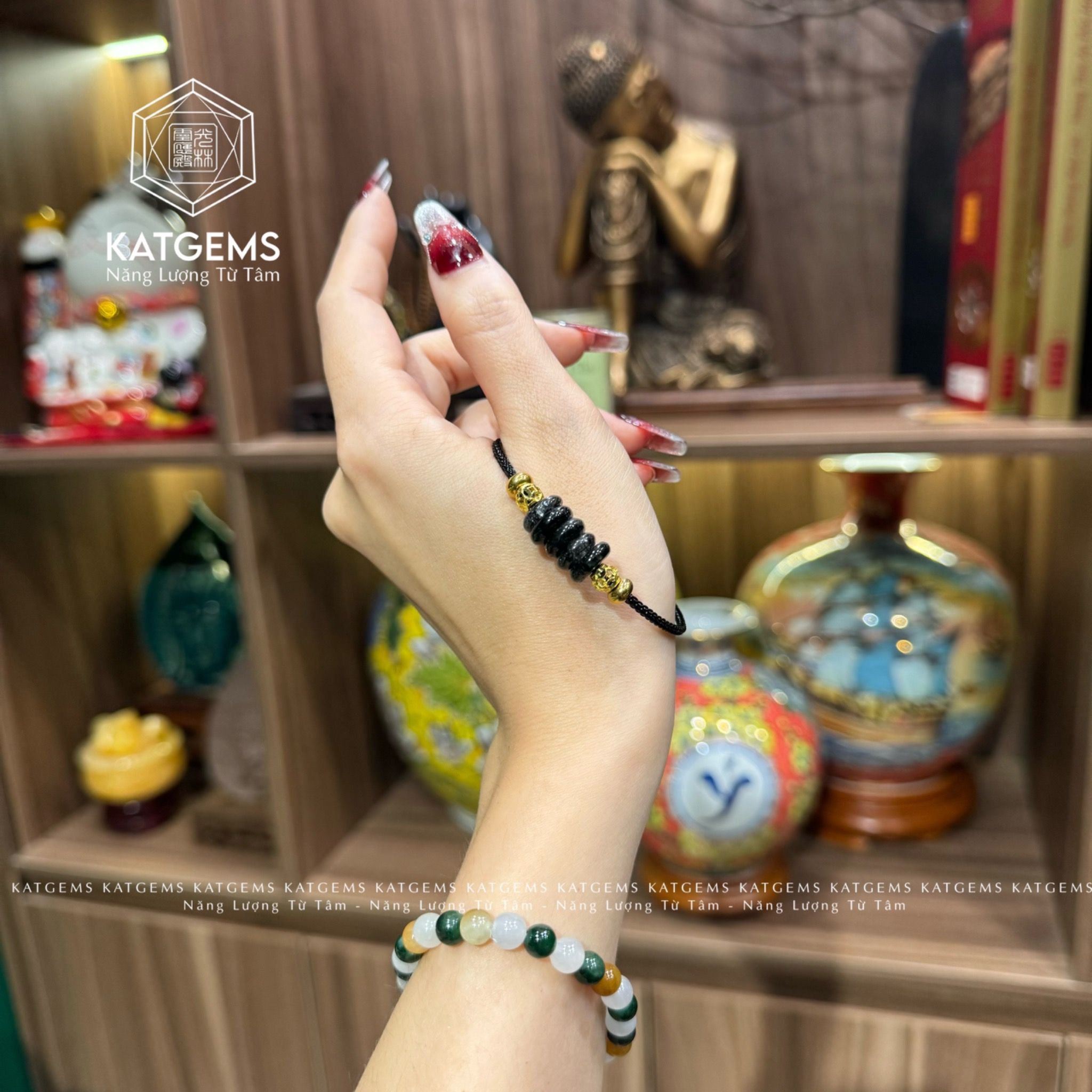 Vòng Dây Cáp Ngũ Điếu Thạch Anh Tóc Đen Mix 2 Bi Kim Tiền Vàng Trang Sức (Mộc, Thủy)