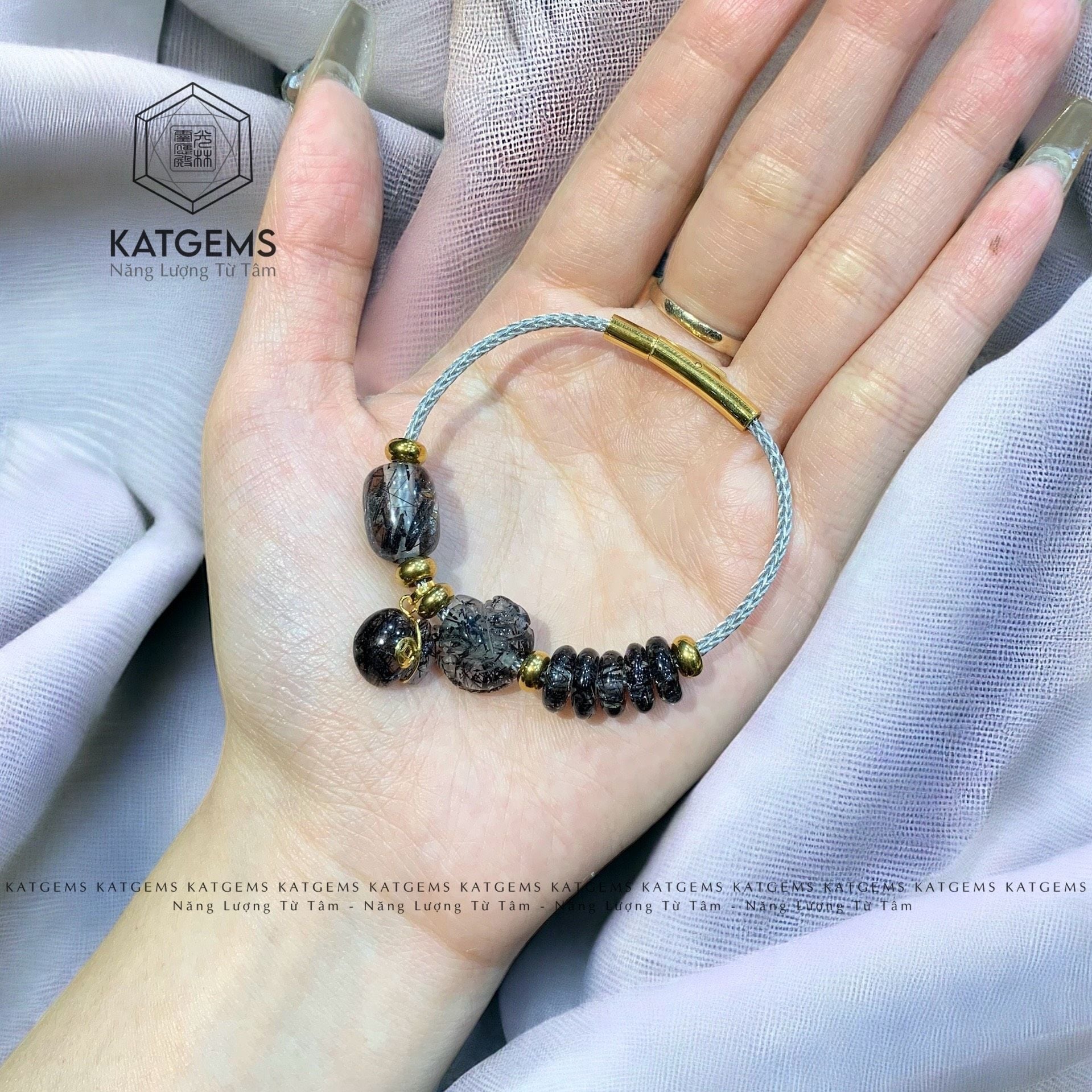 Vòng Dây Cáp Thạch Anh Tóc Đen Mix Ngũ Điếu, Lu Thống, Charm Túi Tiền Và Bà Hồ Ly (Mộc, Thủy)