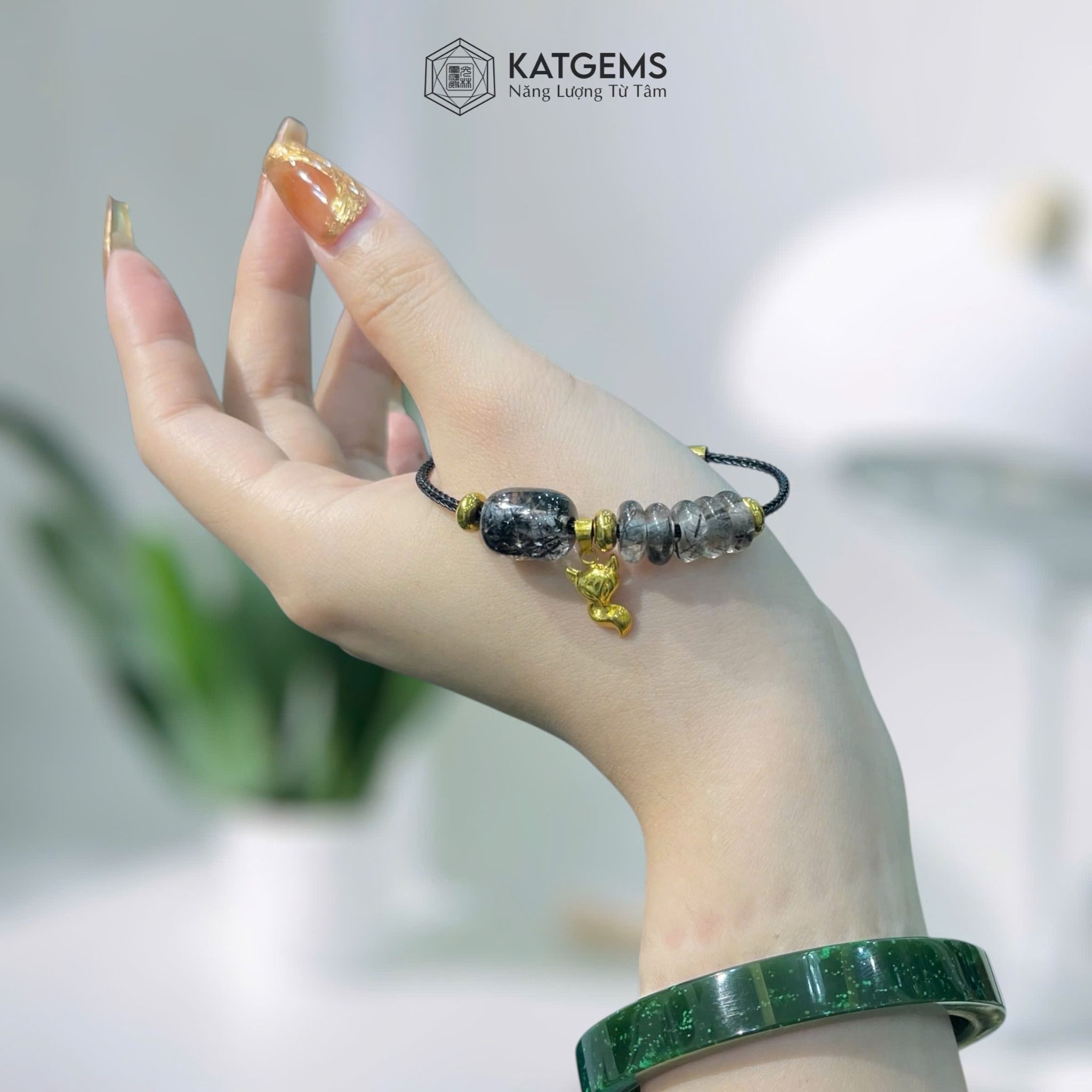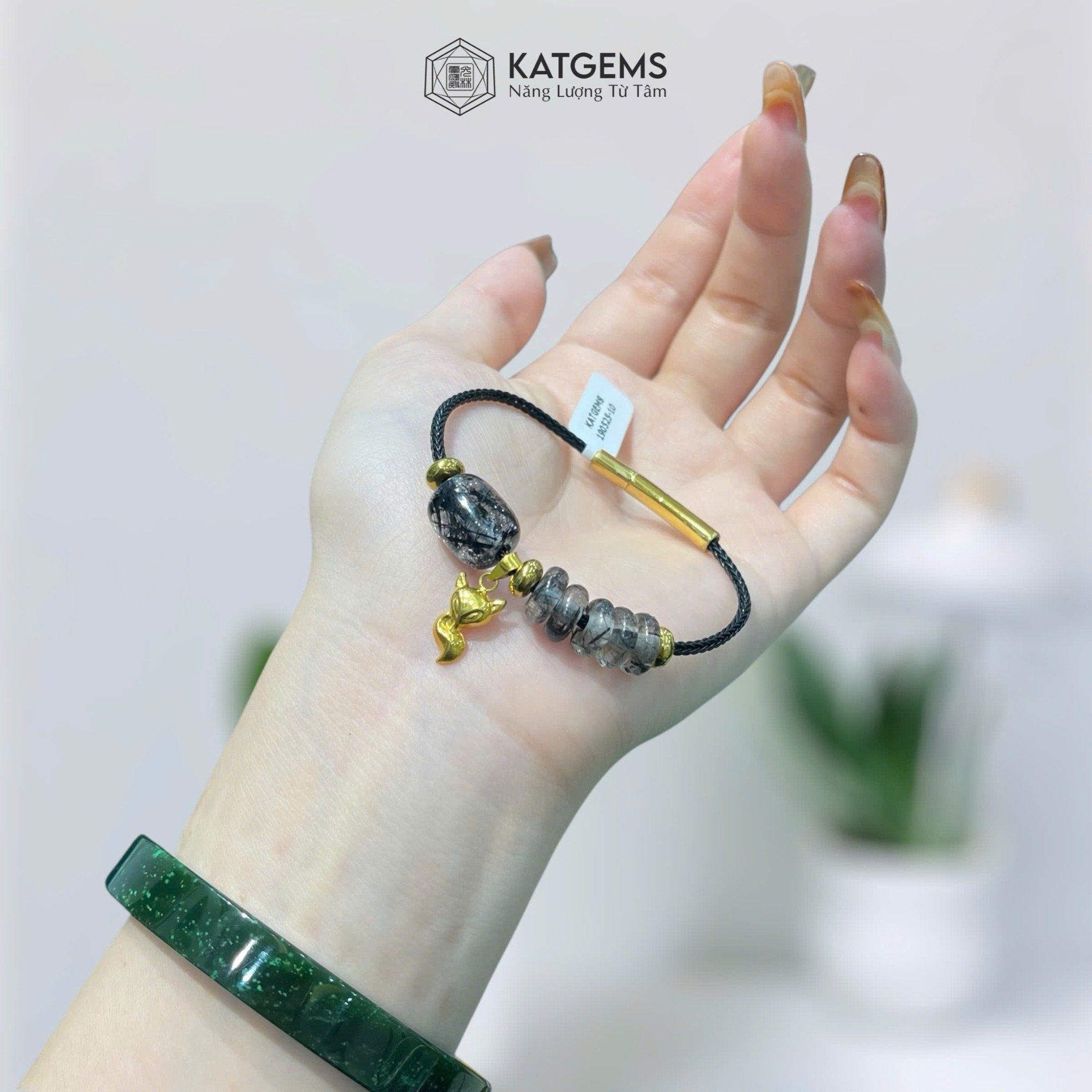 Vòng Dây Cáp Thạch Anh Tóc Đen Ngũ Điếu Mix Lu Thống, Bà Hồ Ly Vàng (Thủy, Mộc)