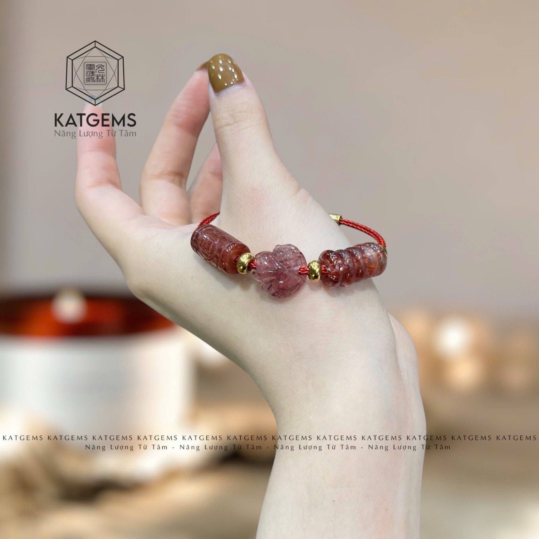Vòng Dây Cáp Thạch Anh Tóc Đỏ Mix Ngũ Điếu, Lu Thống Chạm Kim Tiền, Bà Hồ Ly (Thổ, Hỏa)