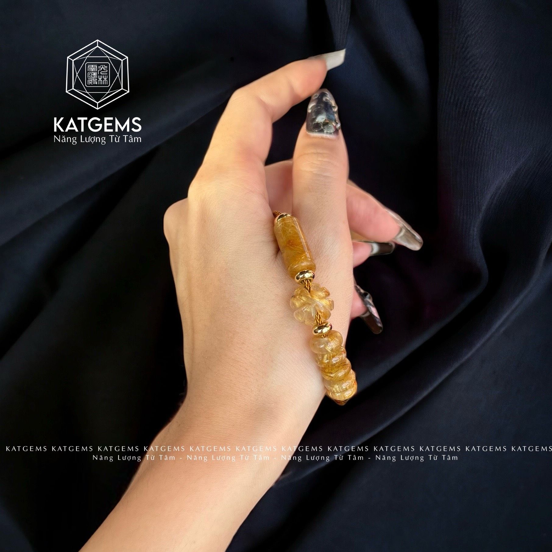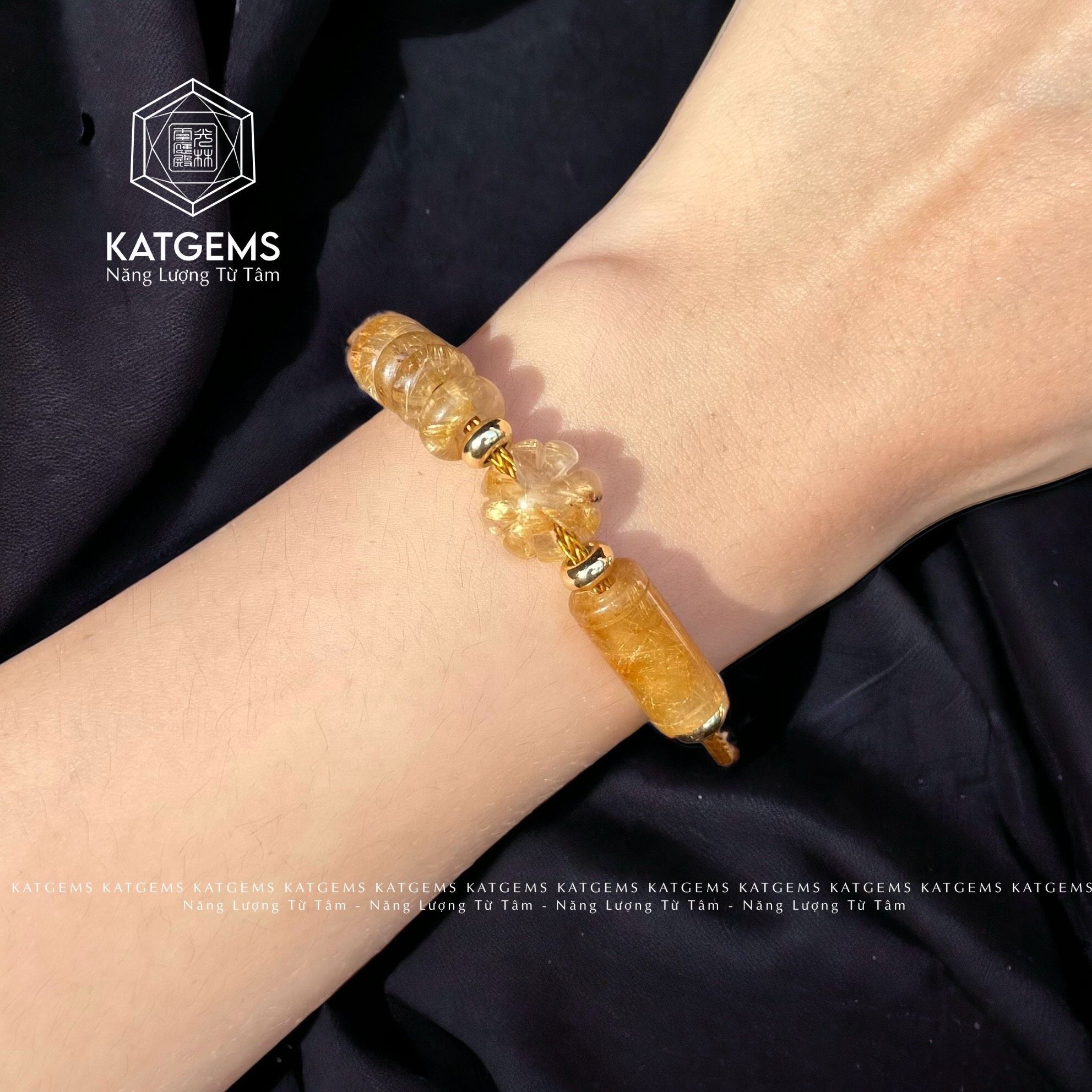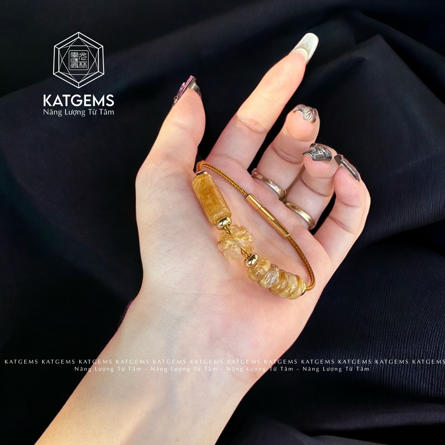 Vòng Dây Cáp Thạch Anh Tóc Vàng Mix Cỏ Bốn Lá, Ngũ Điếu Và Lu Thống (Kim, Thổ)