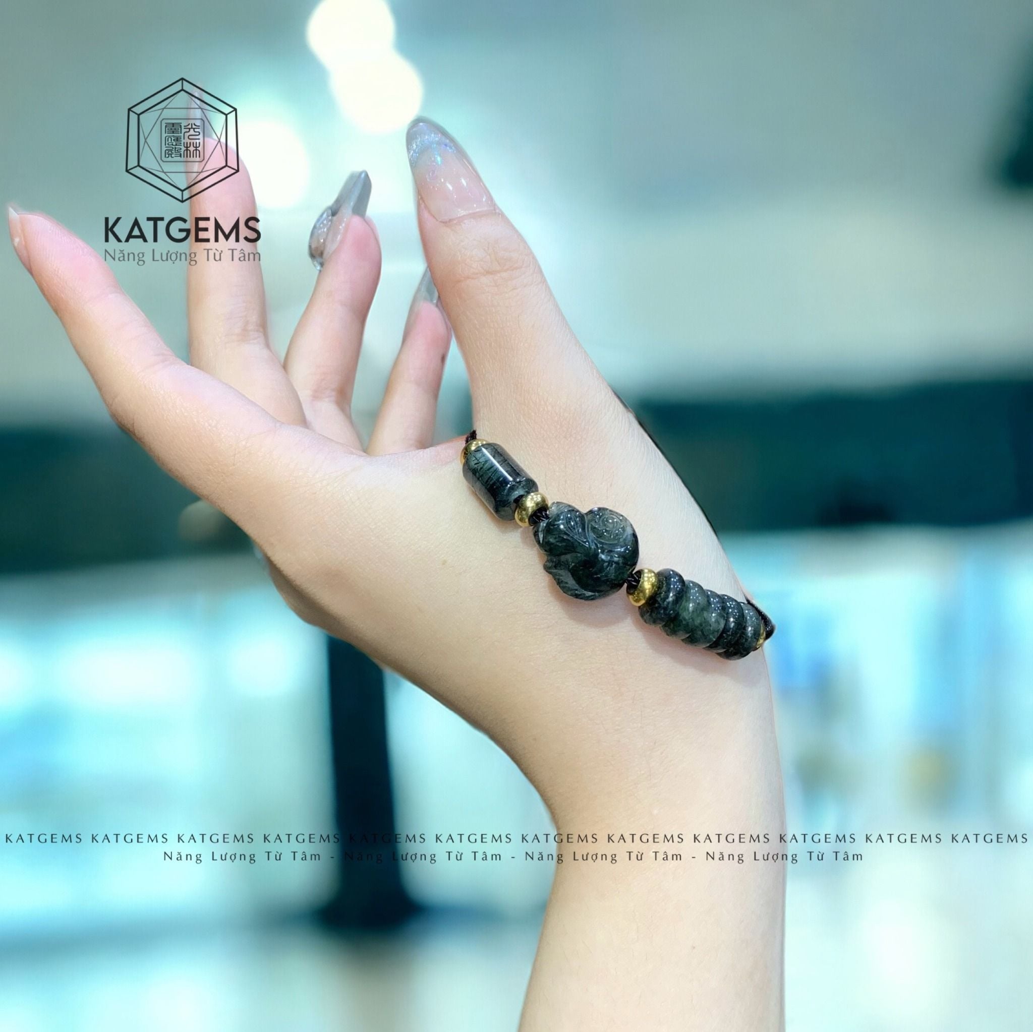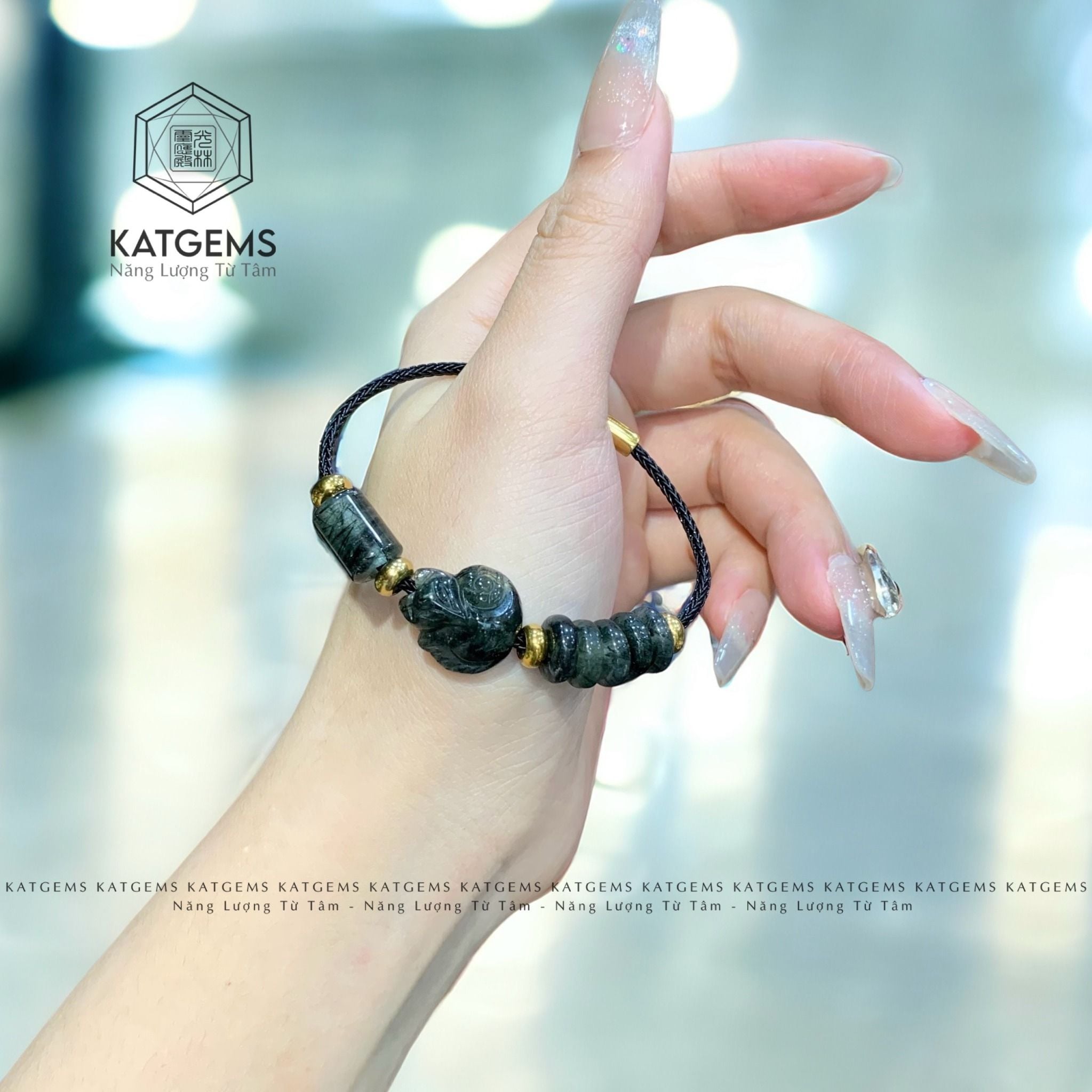 Vòng Dây Cáp Thạch Anh Tóc Xanh Mix Ngũ Điếu, Lu Thống Và Bà Hồ Ly (Mộc, Hỏa)