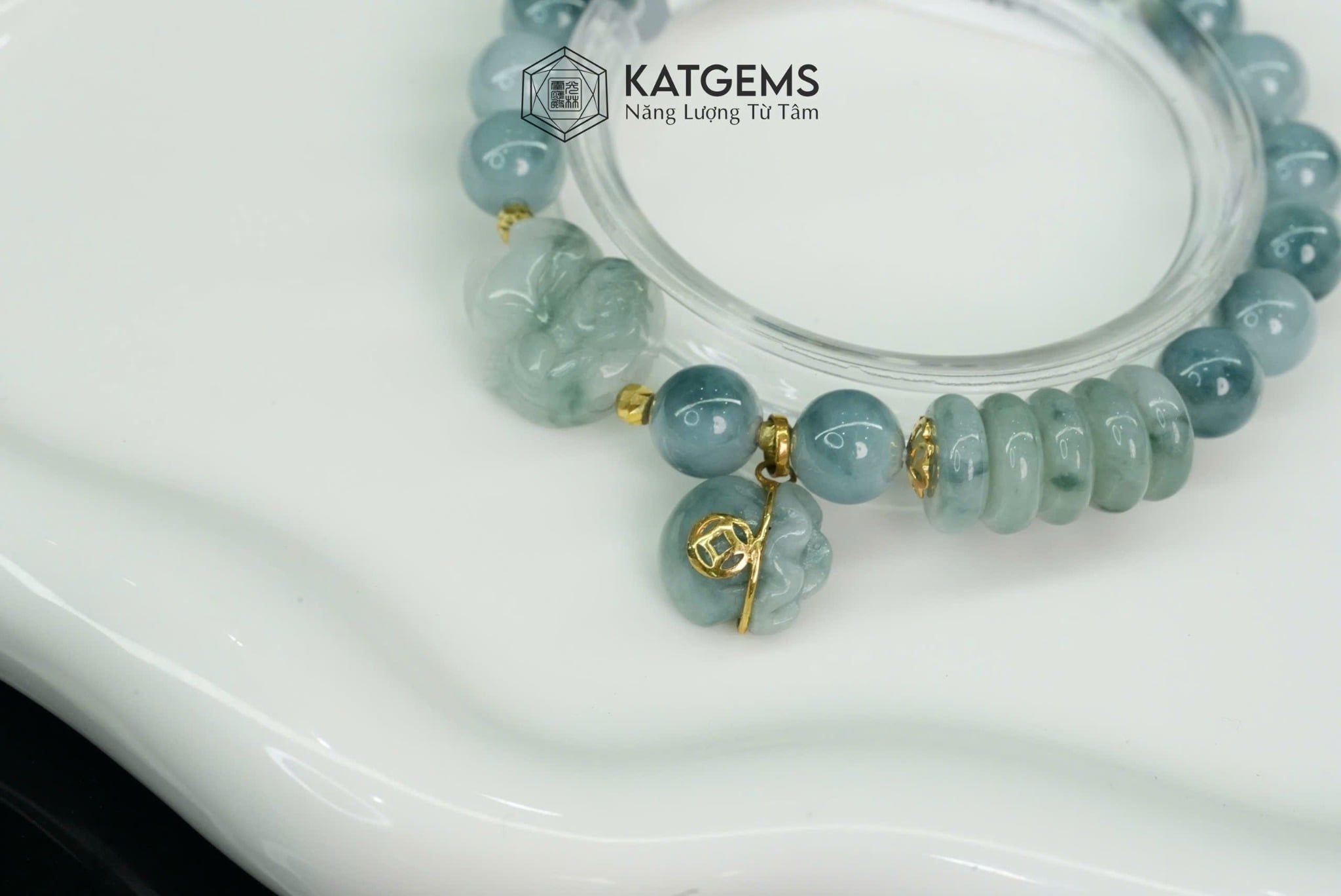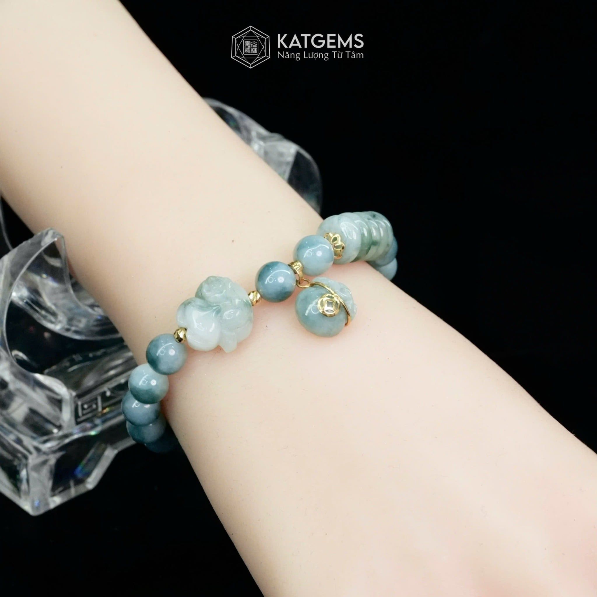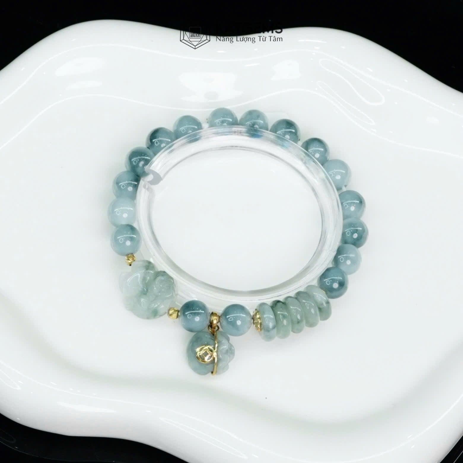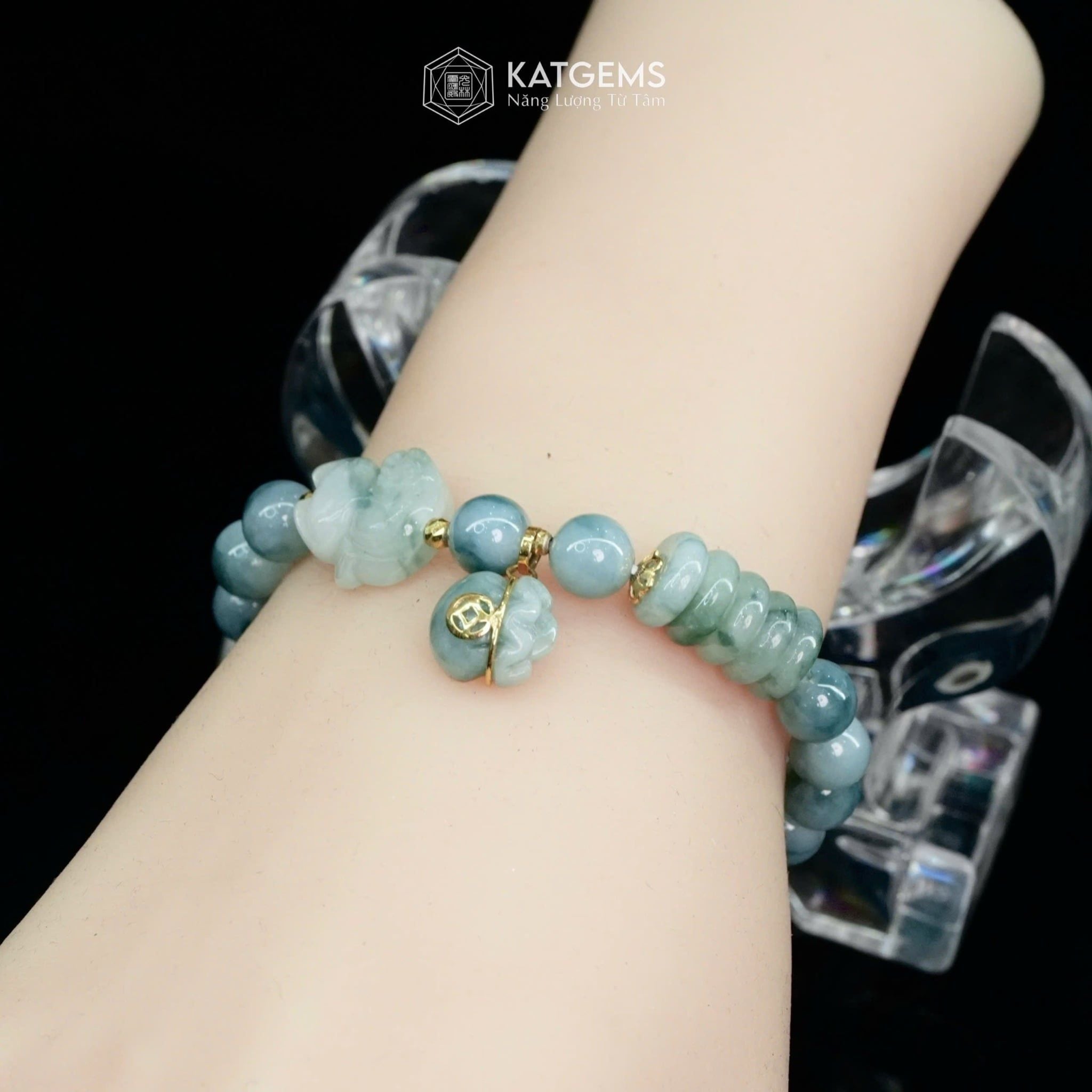 Vòng Đơn Ngọc Phỉ Thúy Hoa Bay 7.8ly Mix Hồ Ly, Ngũ Điếu Và Túi Tiền Kim Bảo Vàng Trang Sức (Không Kén Mệnh) 1-200006/3