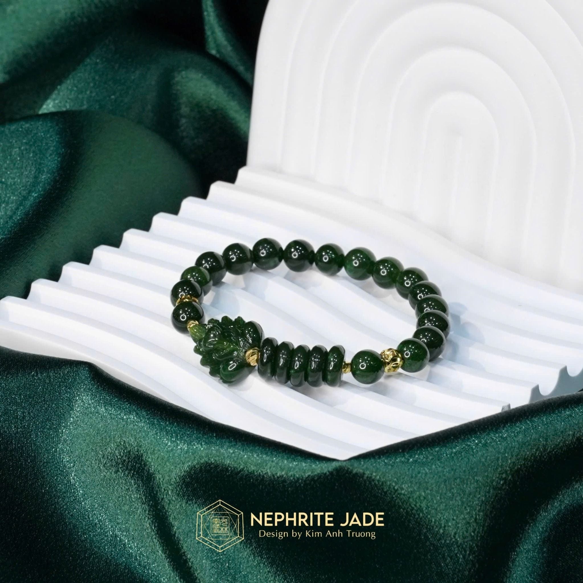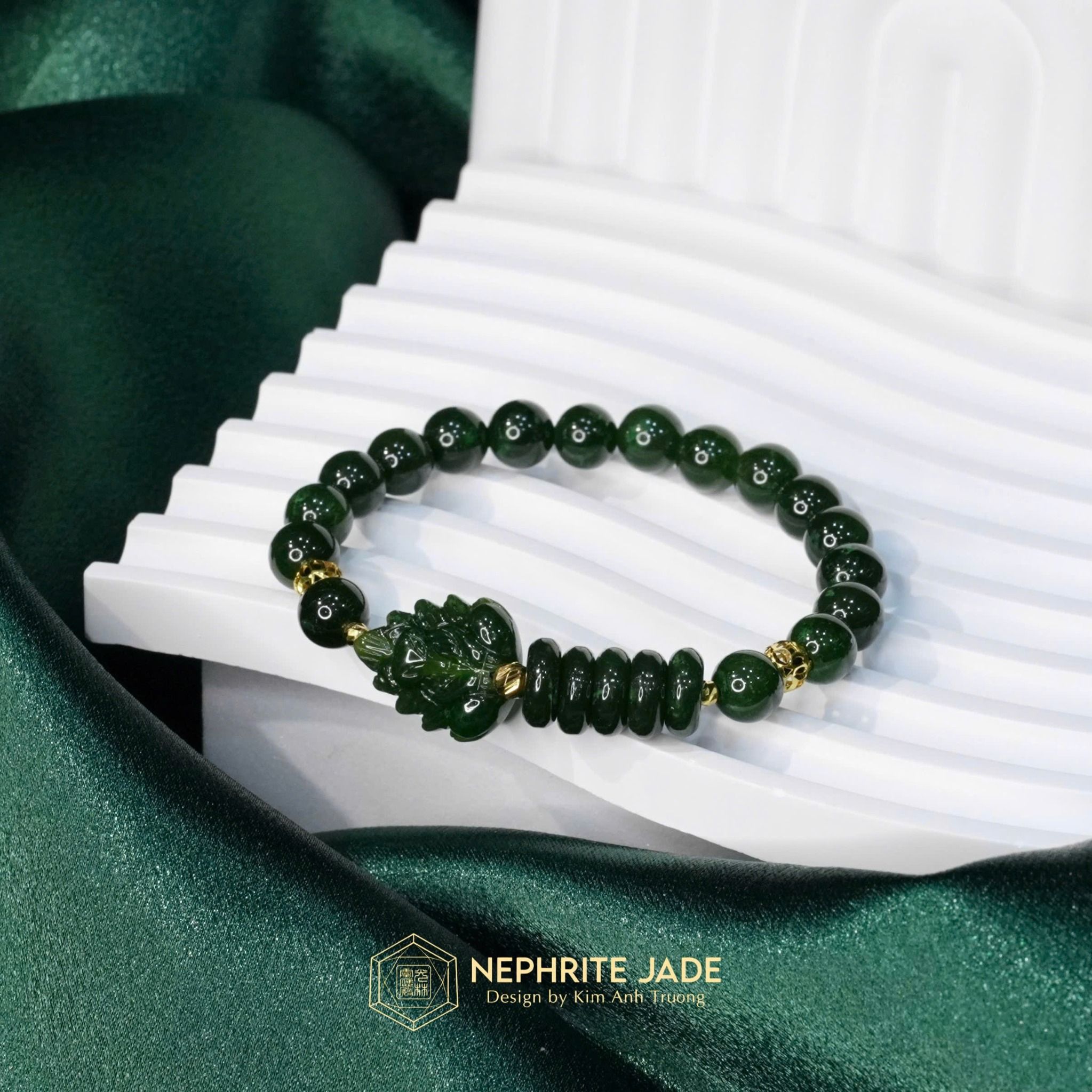 Vòng Đơn Ngọc Bích Canada Cao Cấp Vip 8Ly Mix Ngũ Điếu, Bà Hồ Ly Chúa Và Bi Kim Tiền Vàng Trang Sức (Không Kén Mệnh)