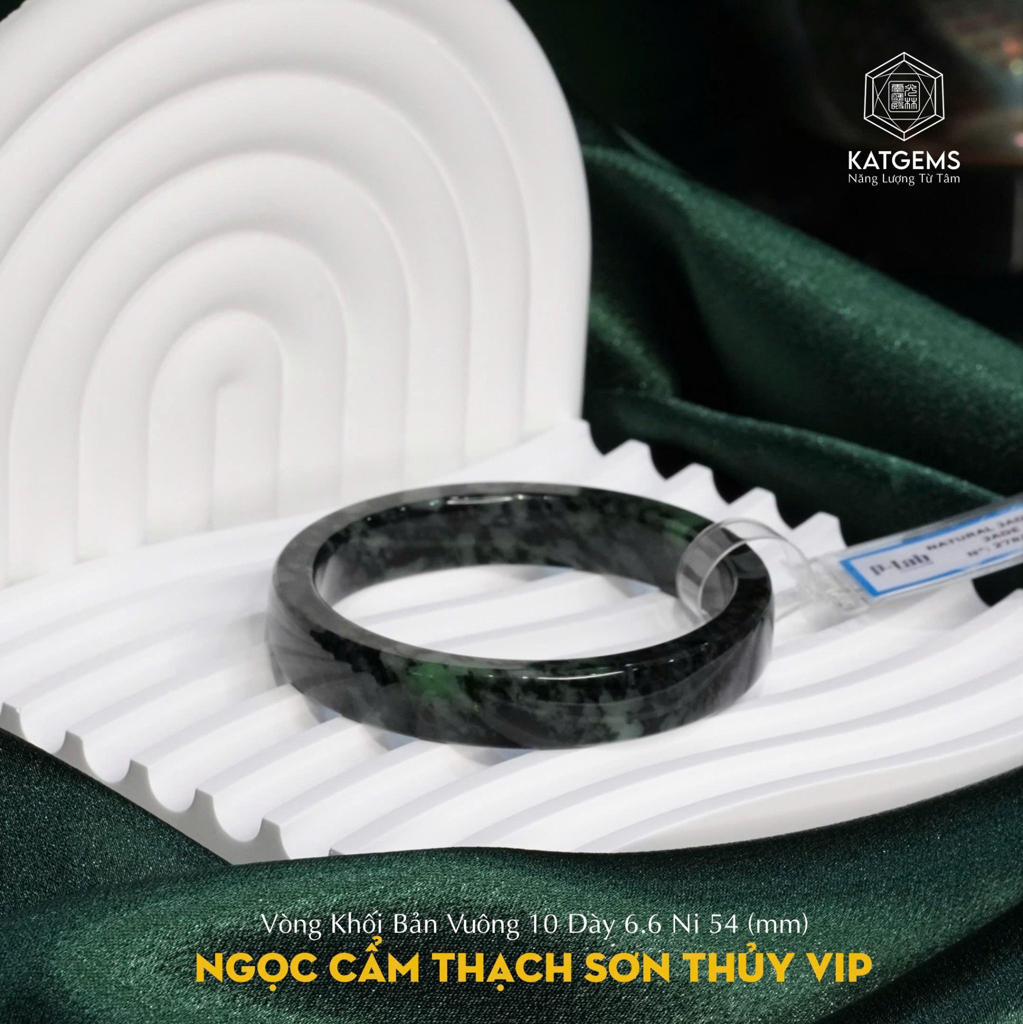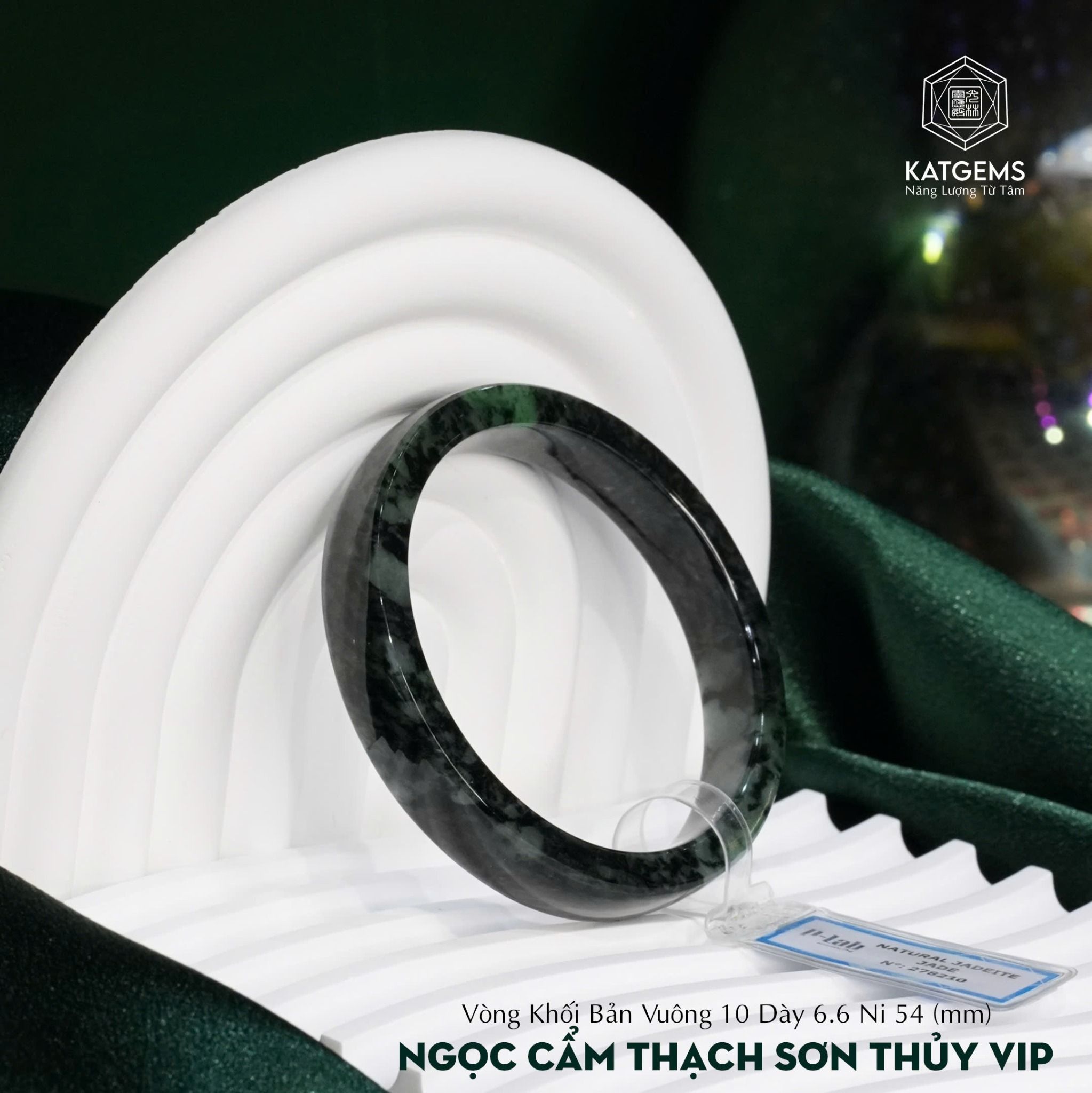 Vòng Khối Ngọc Cẩm Thạch Sơn Thủy (Type B) VIP Bản Vuông 10 Dày 6.5 Ni 54mm (Không Kén Mệnh)