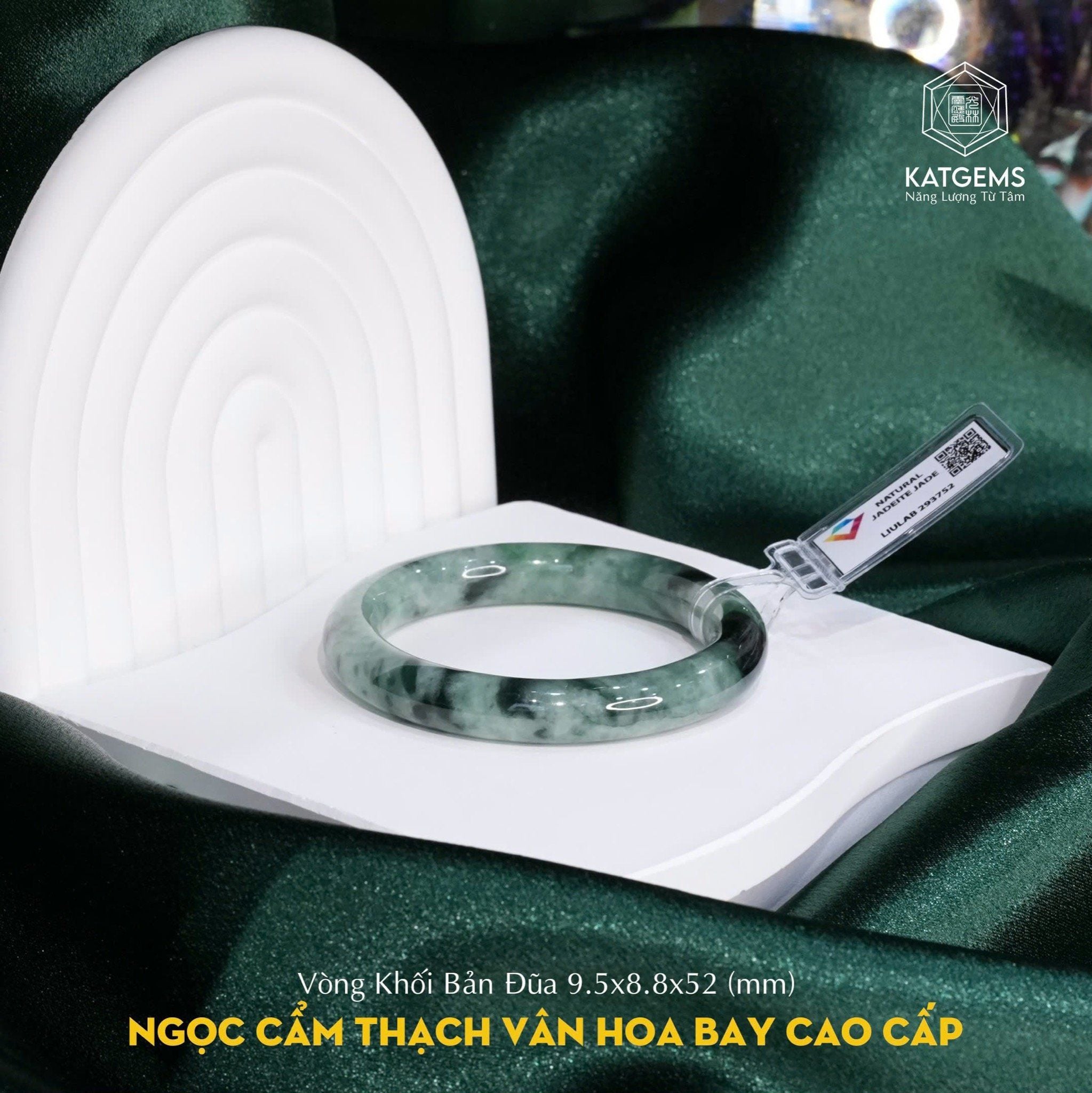 Vòng Khối Ngọc Cẩm Thạch Vân Hoa Bay Cao Cấp Bản Đũa 9.5x8.8 Ni 52mm 293752 (Không Kén Mệnh)