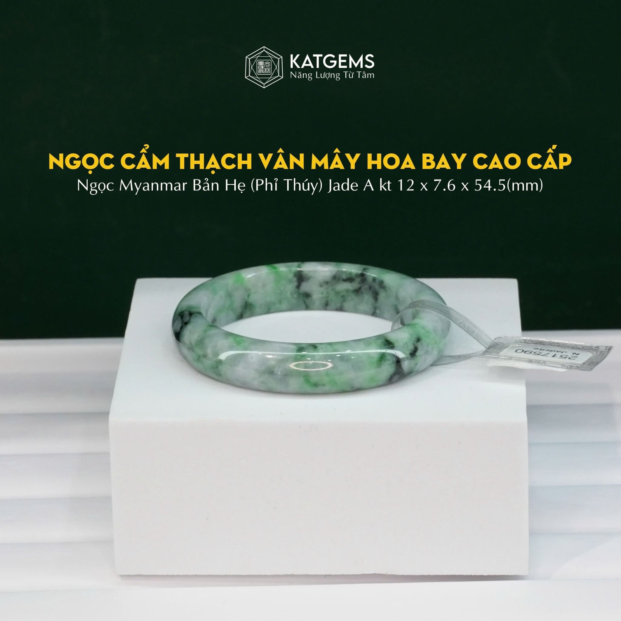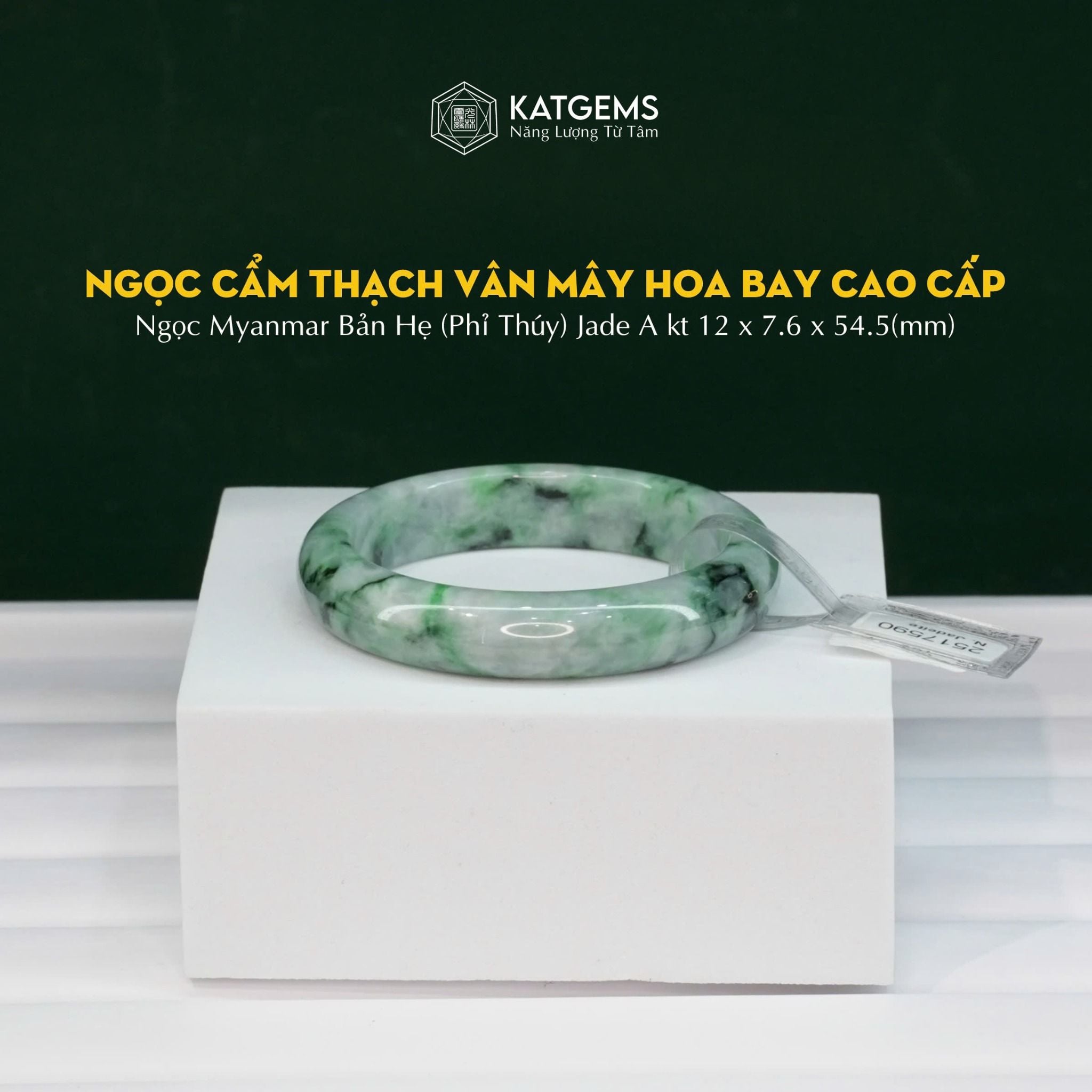 Vòng Khối Ngọc Cẩm Thạch Vân Hoa Bay Cao Cấp Bản Hẹ 12x7.6 Ni 54.5mm (Không Kén Mệnh)