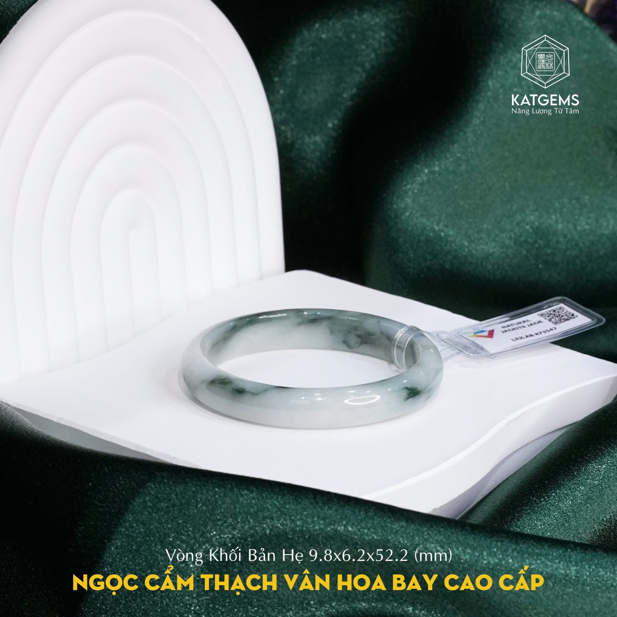 Vòng Khối Ngọc Cẩm Thạch Vân Hoa Bay Cao Cấp Bản Hẹ 9.8x6.2 Ni 52.2mm (Không Kén Mệnh)