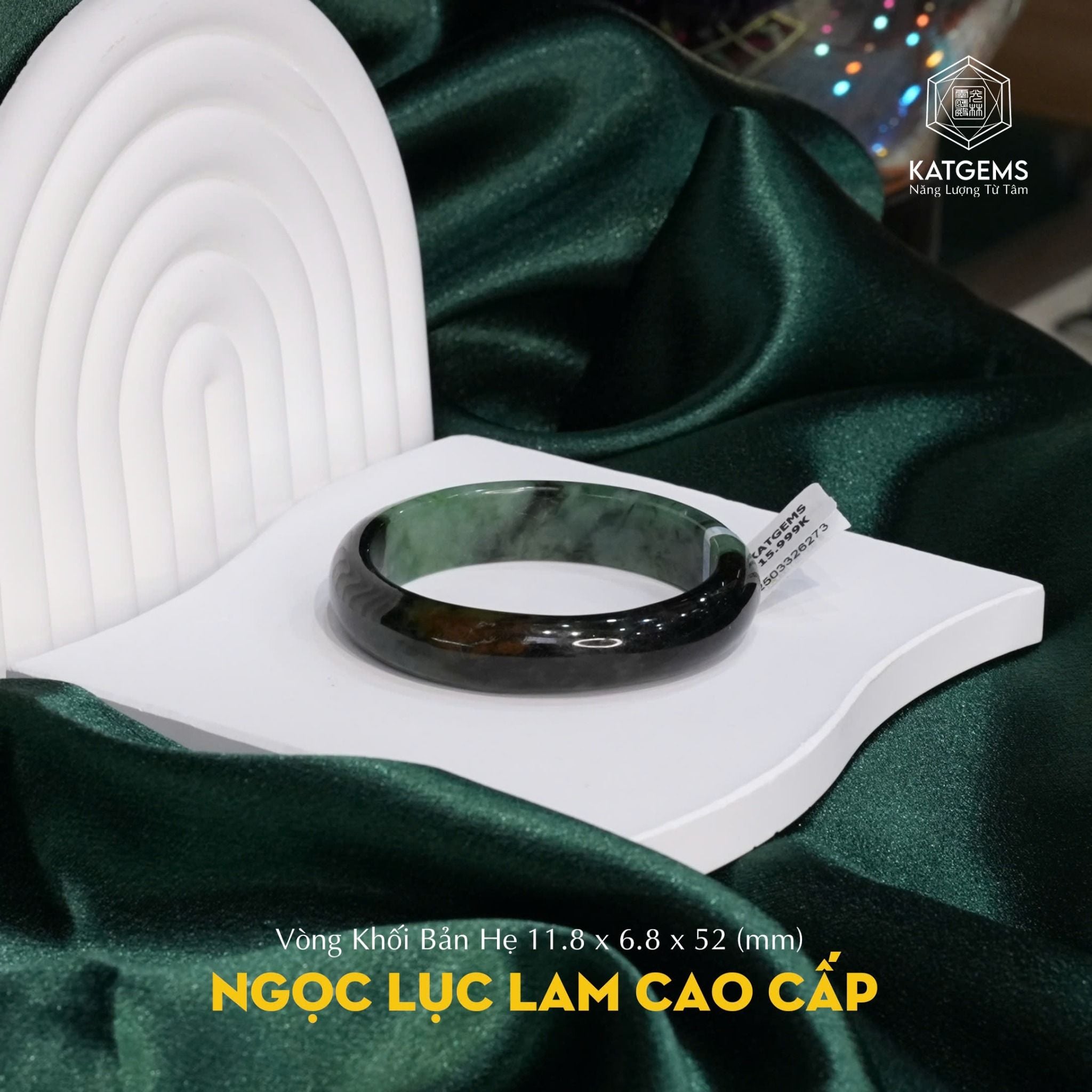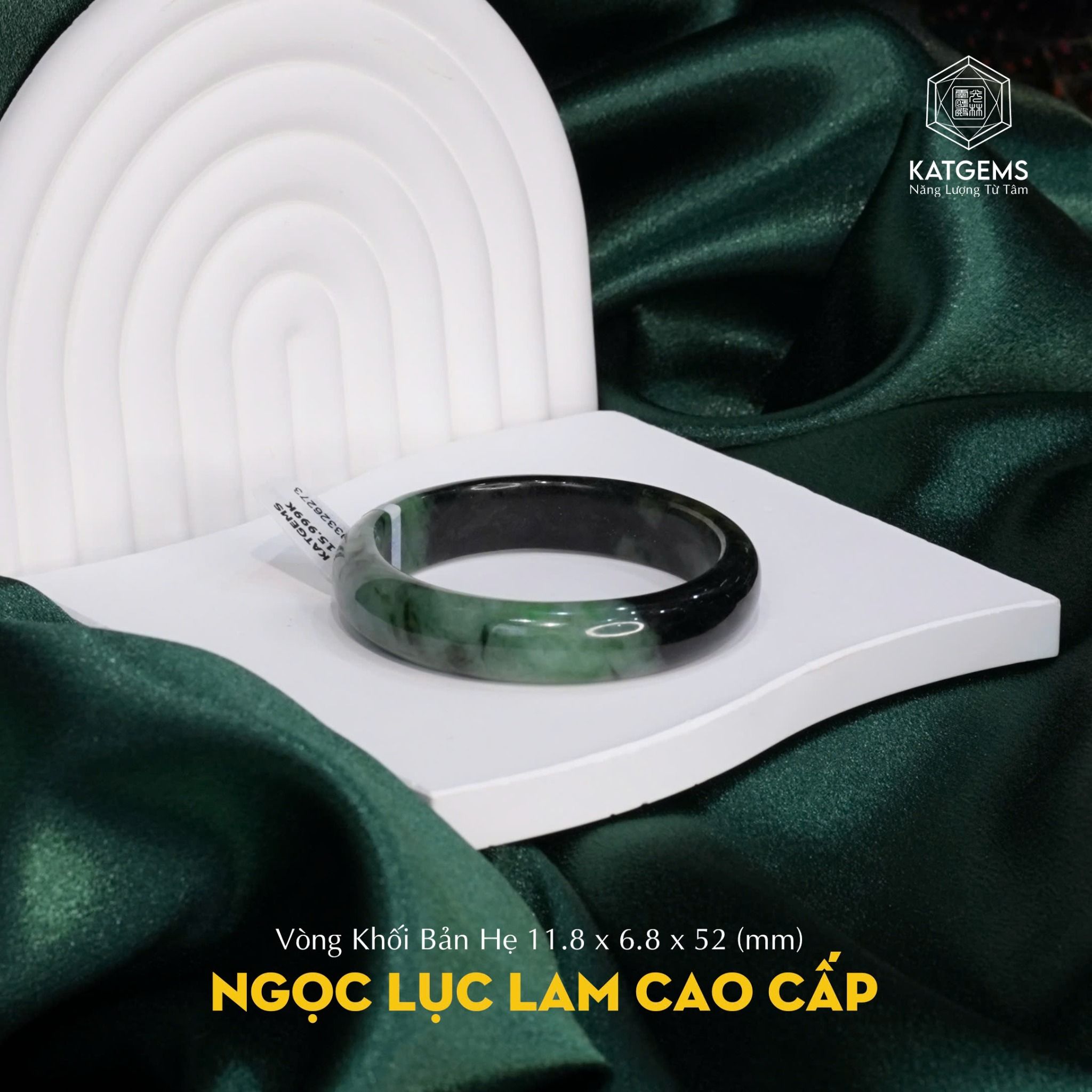 Vòng Khối Ngọc Lục Lam Cao Cấp Bản Hẹ 11.8 Dày 6.8 Ni 52mm - Không Kén Mệnh