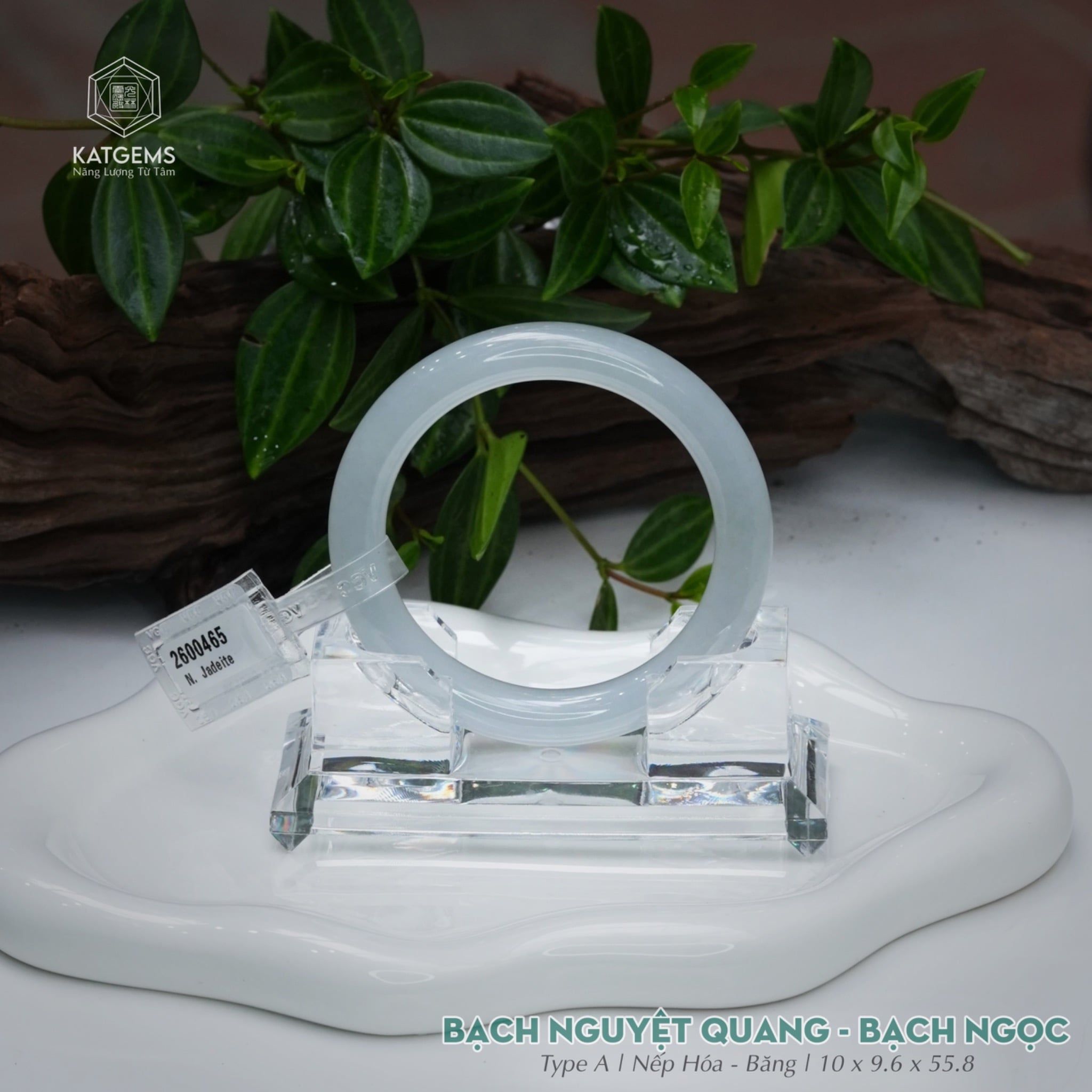 Vòng Khối Ngọc Phỉ Bạch Nguyệt Quang (Bạch Ngọc) Cao Cấp Bản Đũa 10 x 9.6x 55.8 (Không Kén Mệnh) 2600465