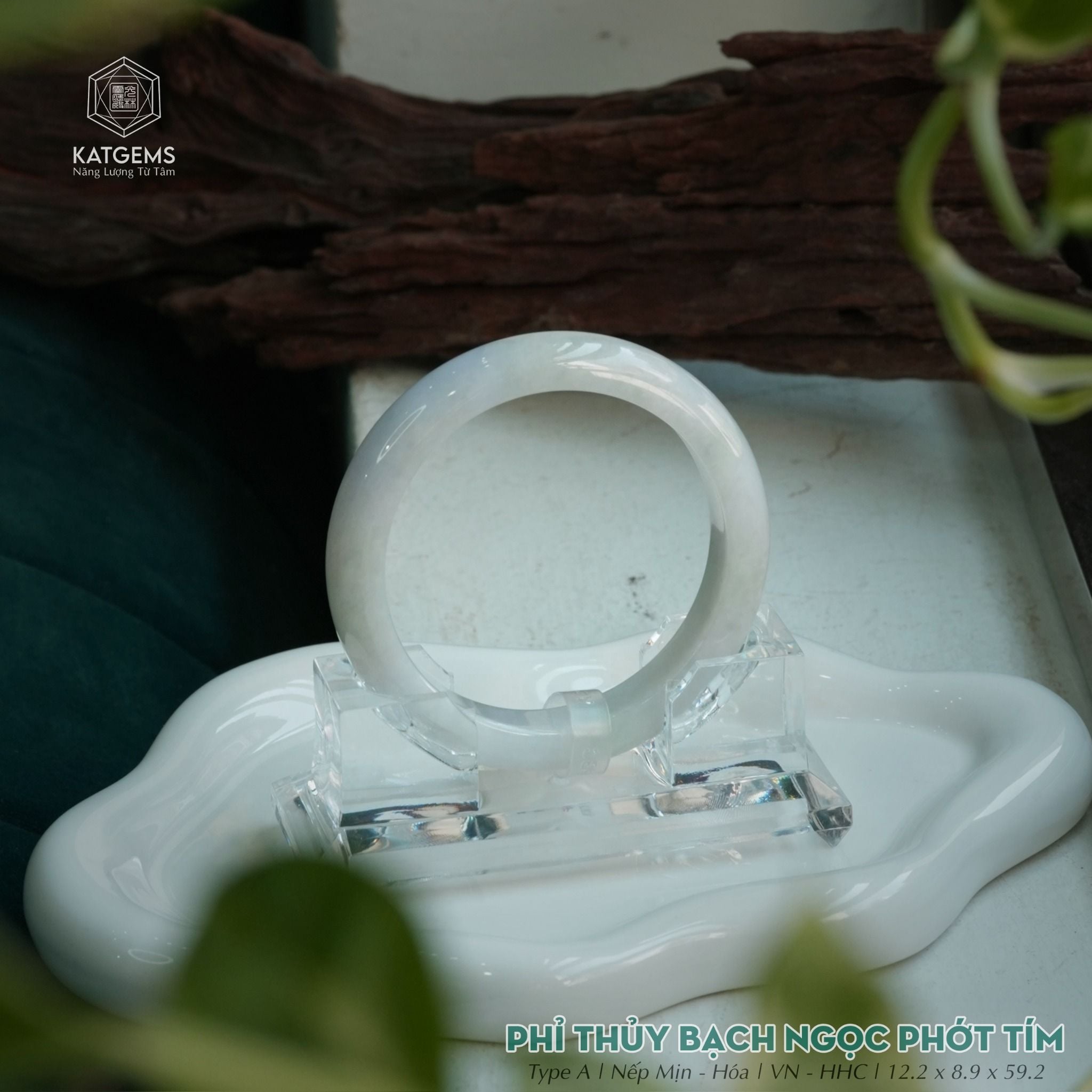 Vòng Khối Ngọc Phỉ Bạch Ngọc Phớt Tím Cao Cấp Bản Hẹ 12.2 x 8.9 x 59.2 (Không Kén Mệnh) 2541071