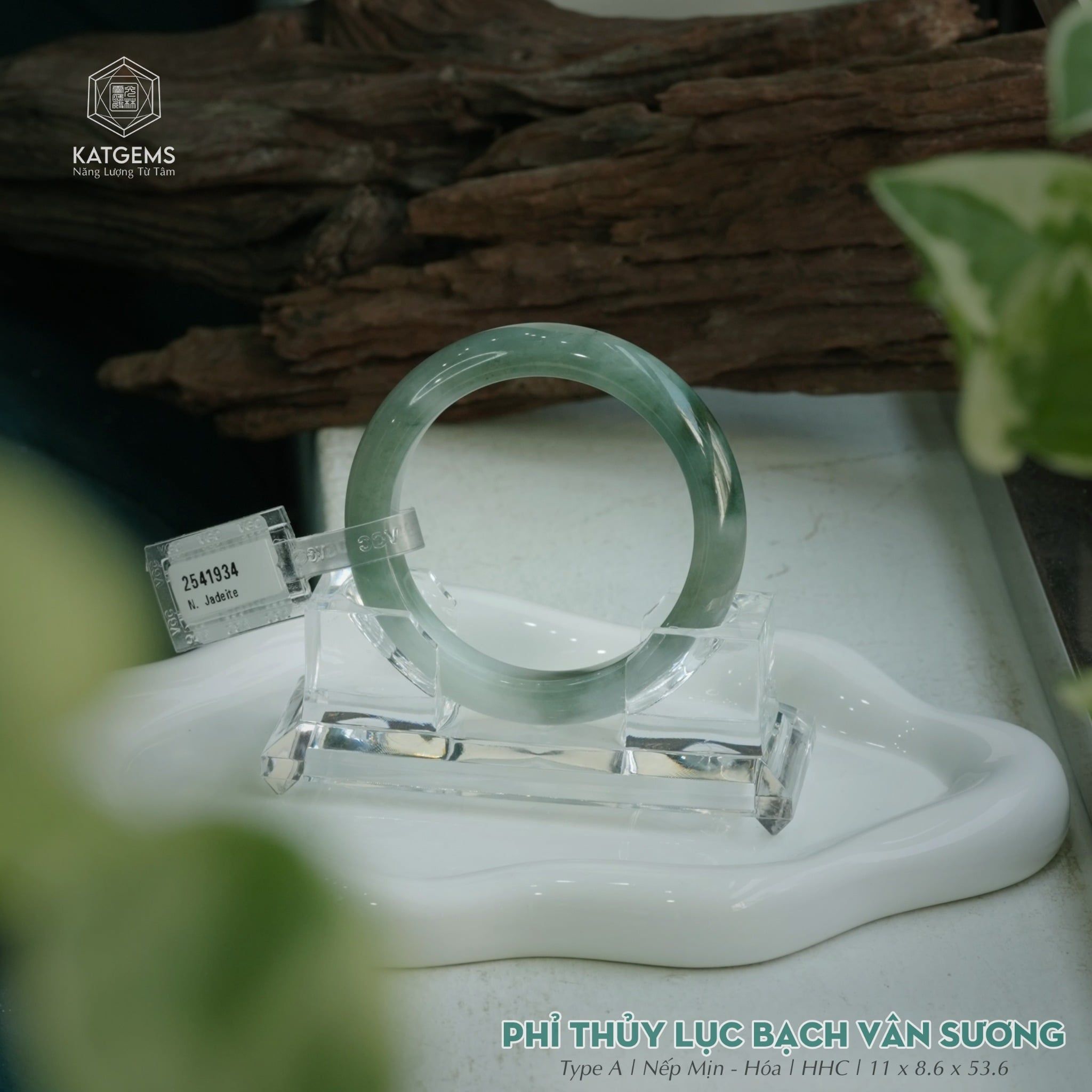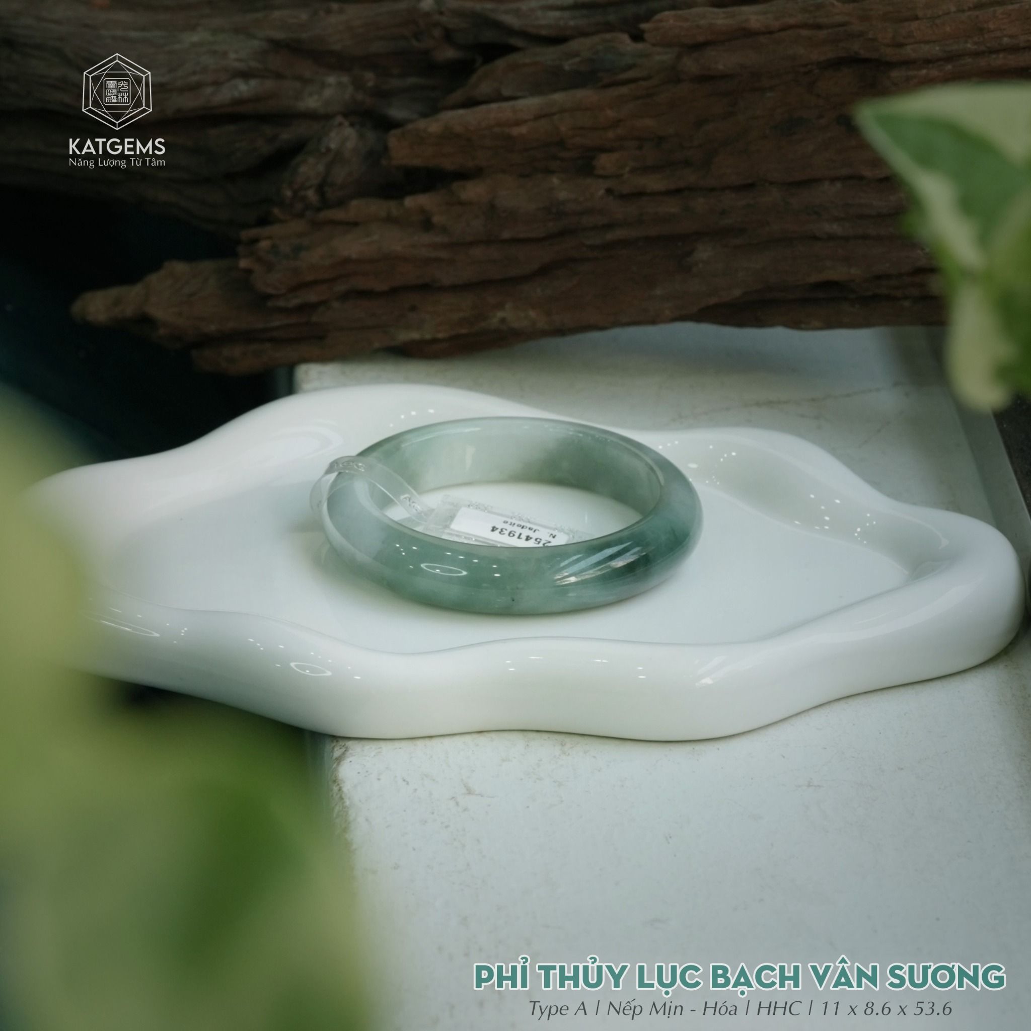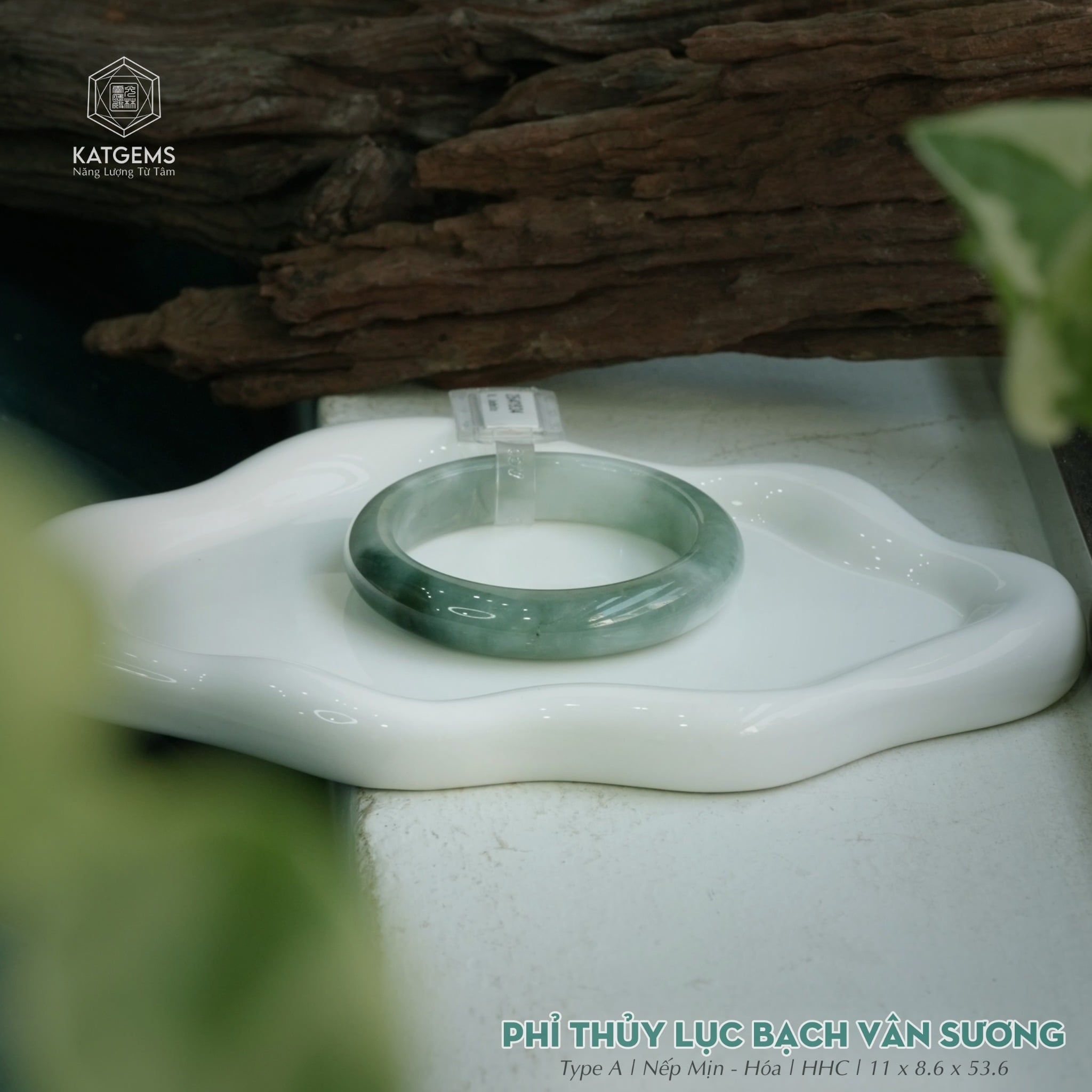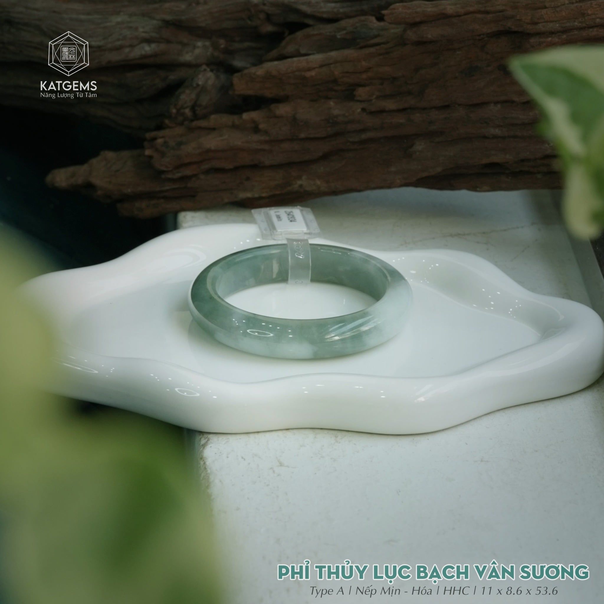 Vòng Khối Ngọc Phỉ Thúy Bạch Lục Vân Sương Cao Cấp Bản Hẹ 11 x 8.6 x 53.6 (Không Kén Mệnh) 2541934