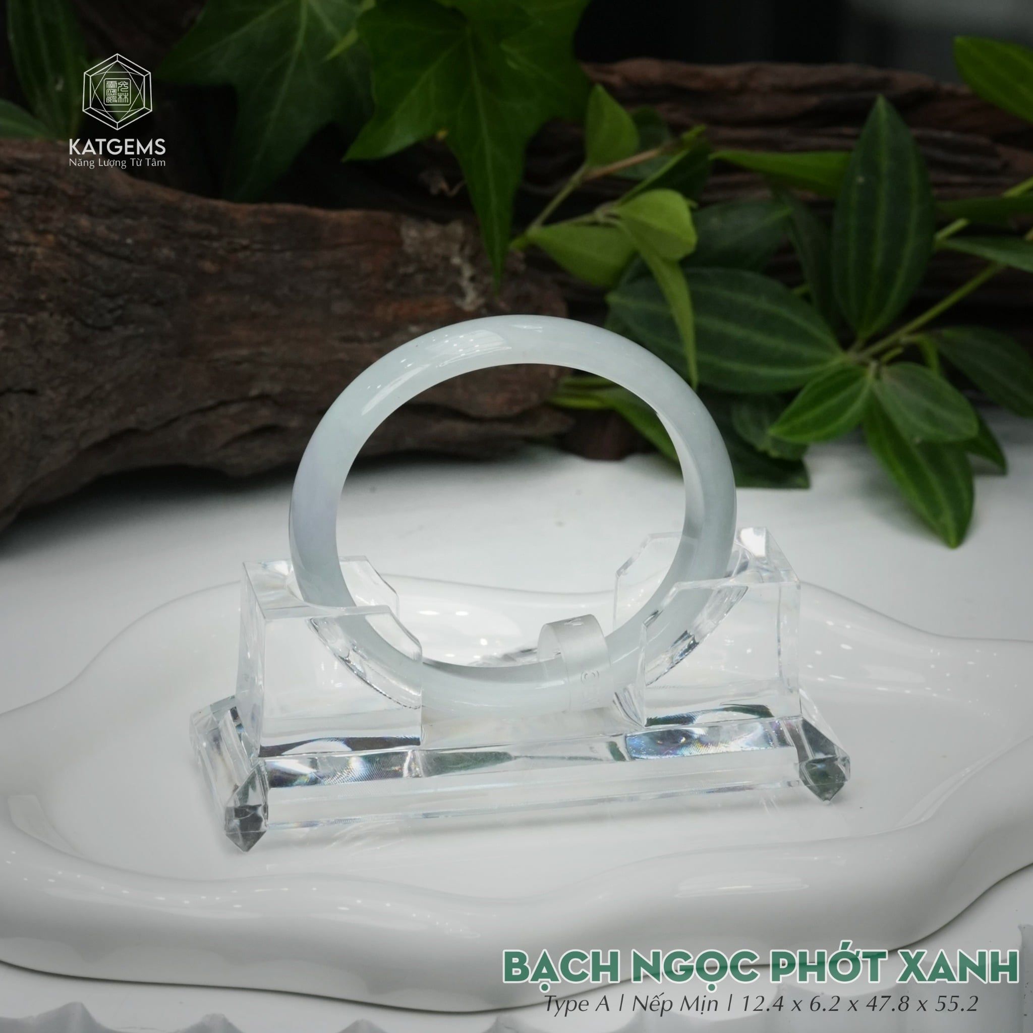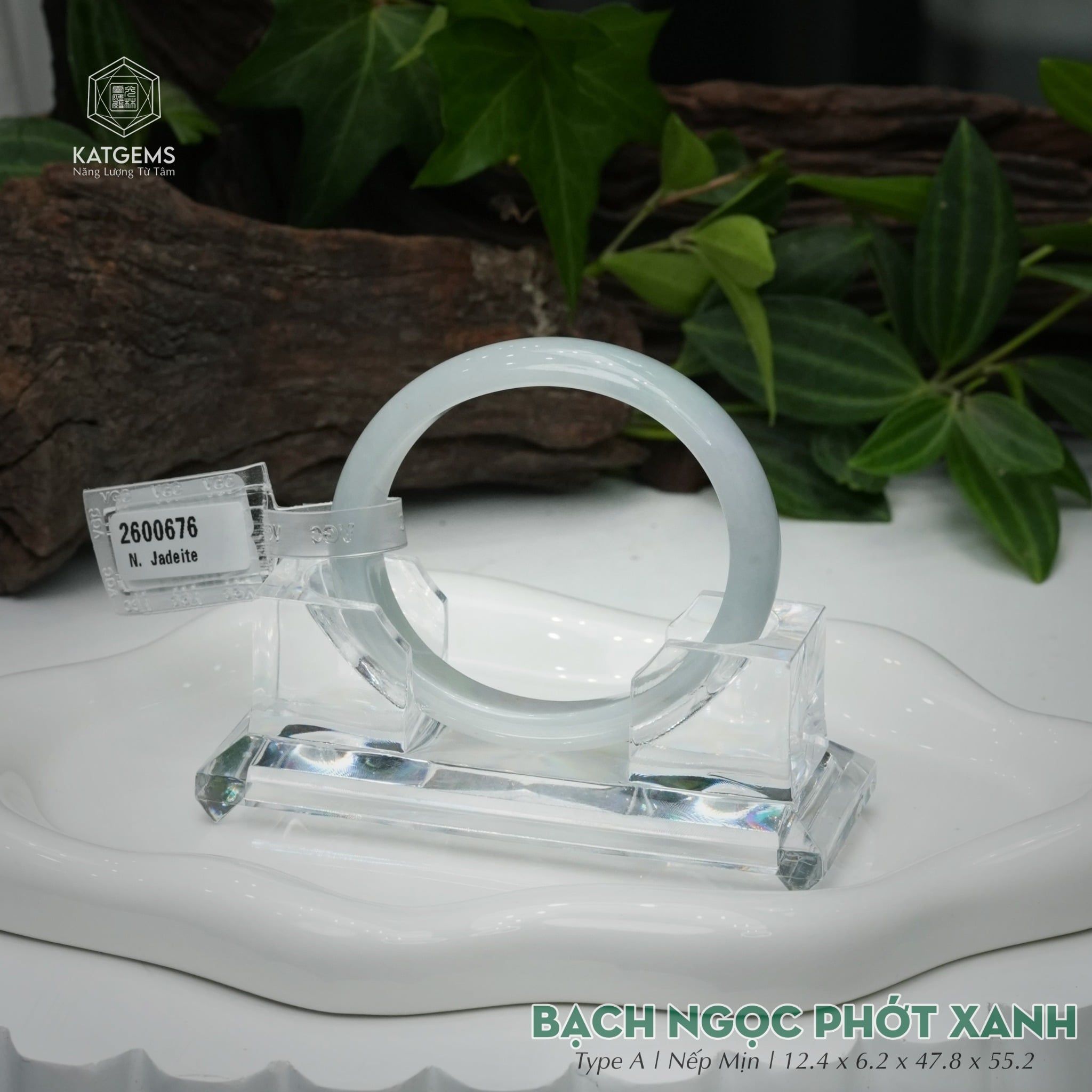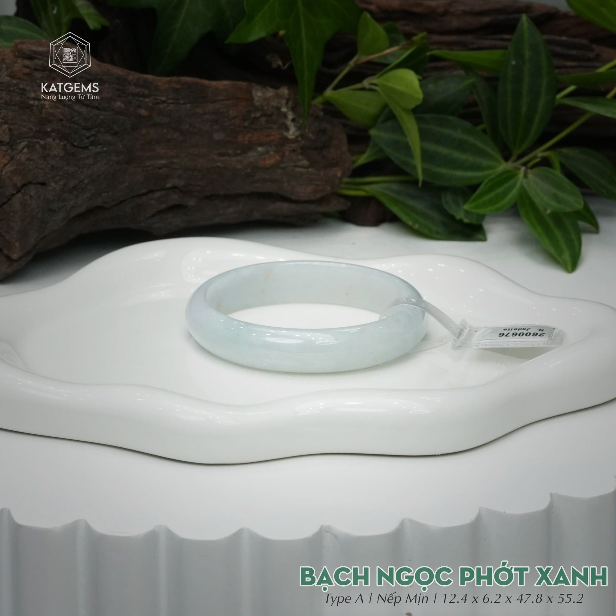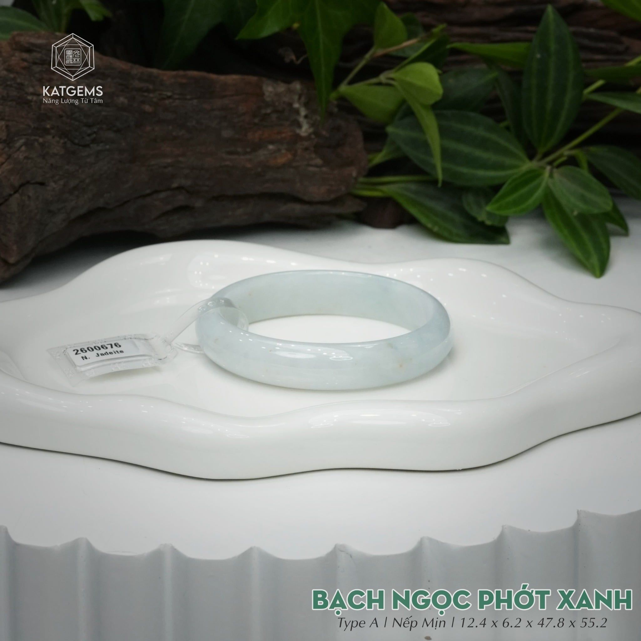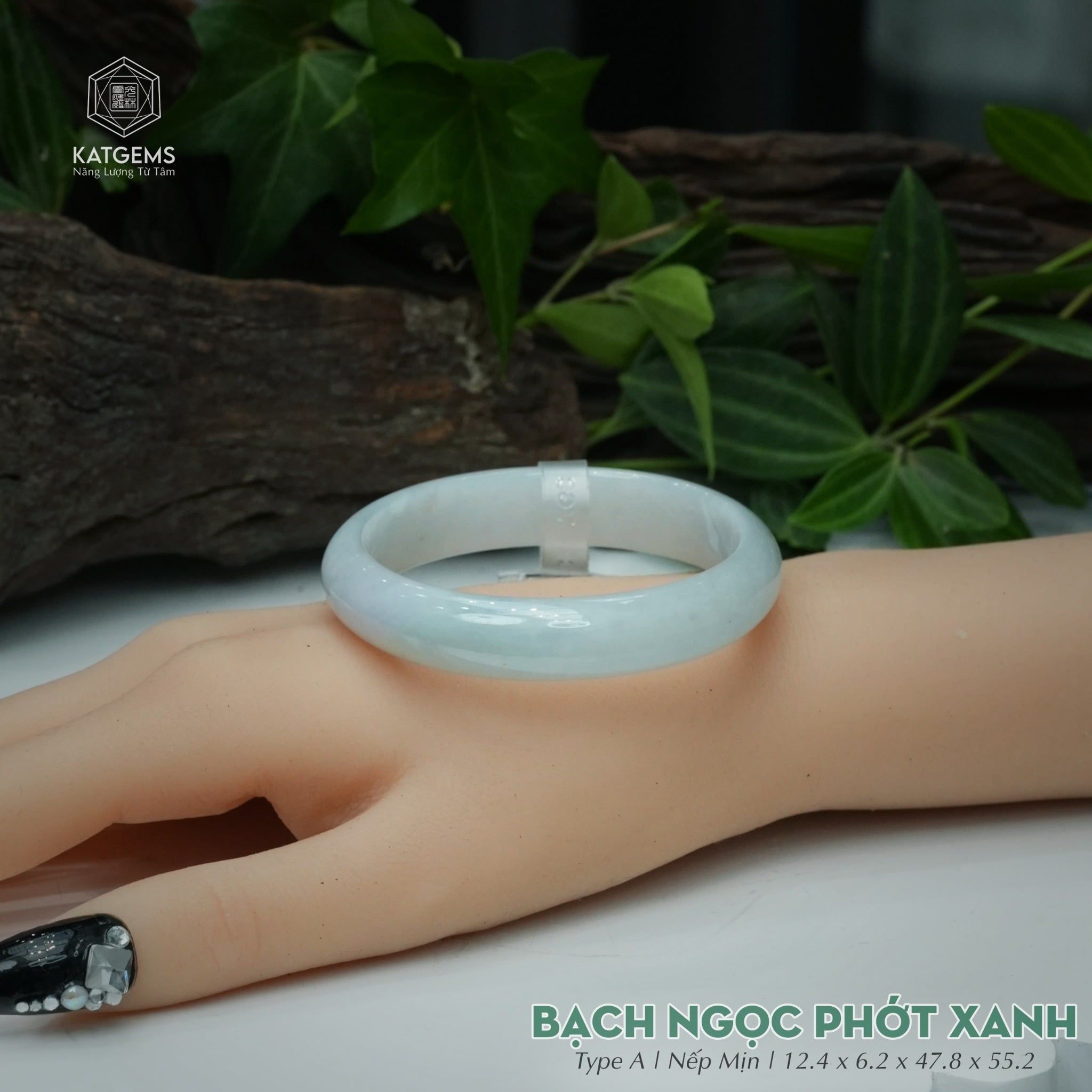 Vòng Khối Ngọc Phỉ Thúy Bạch Ngọc Phớt Xanh Cao Cấp Bản Oval 12.4 x 6.2 x 47.8 x 55.2 (Không Kén Mệnh) 2600676