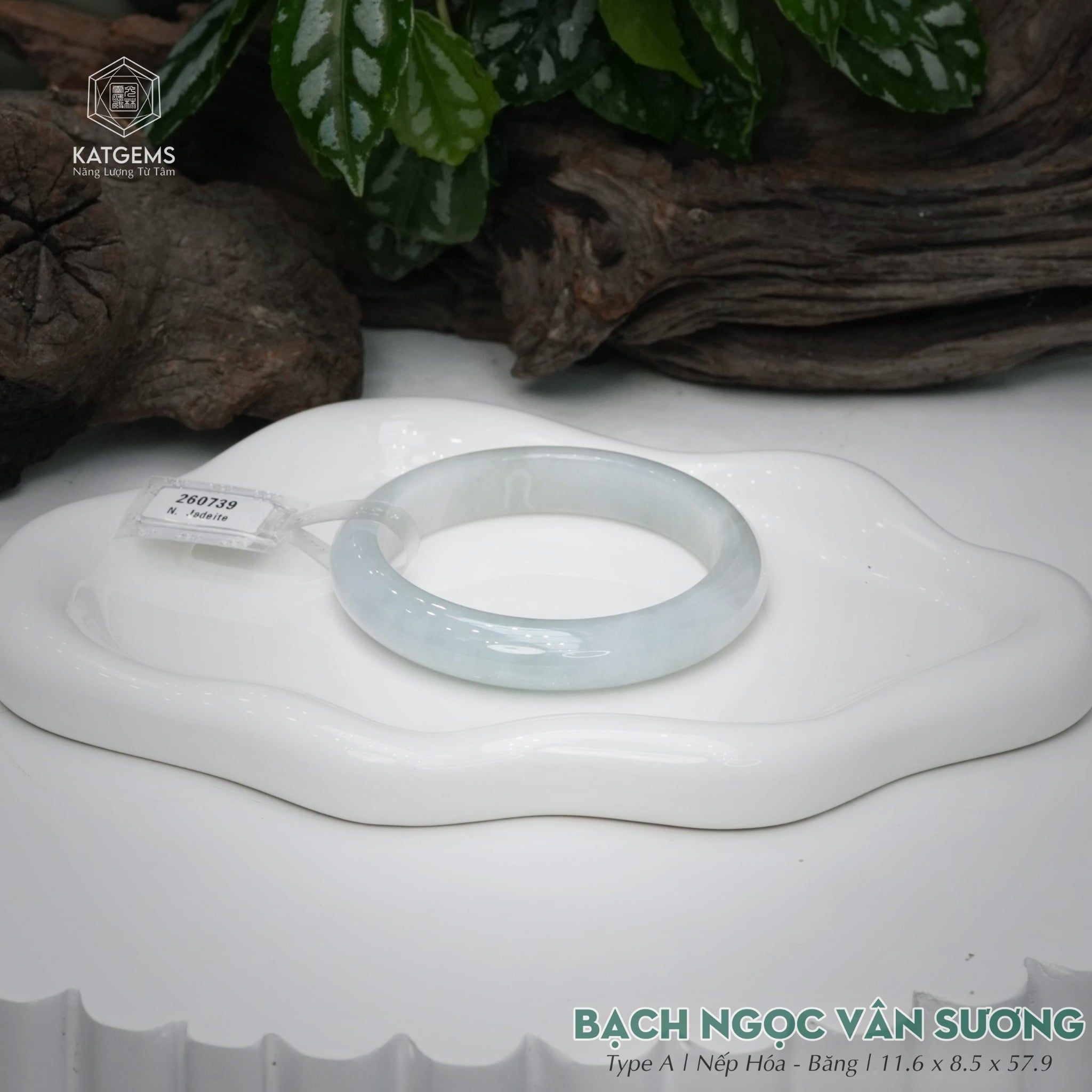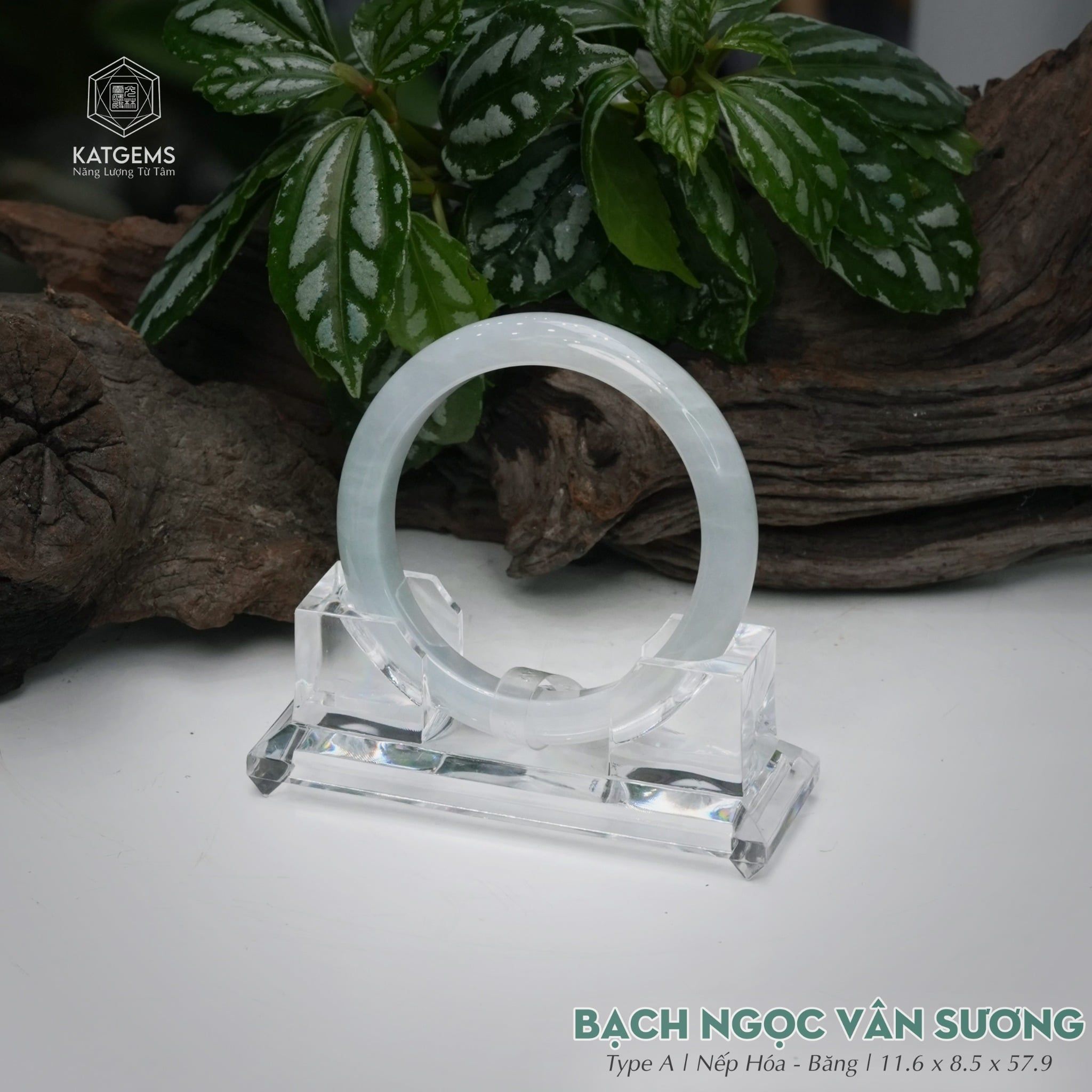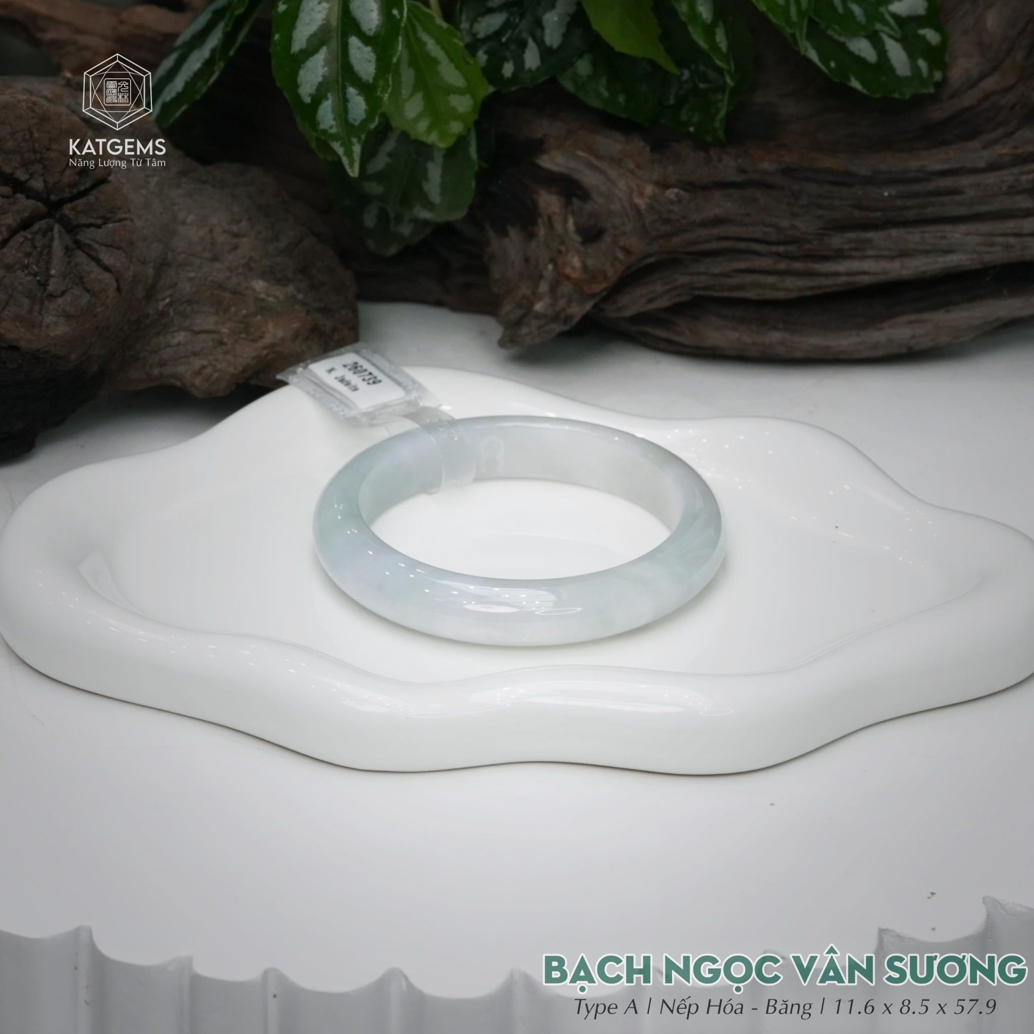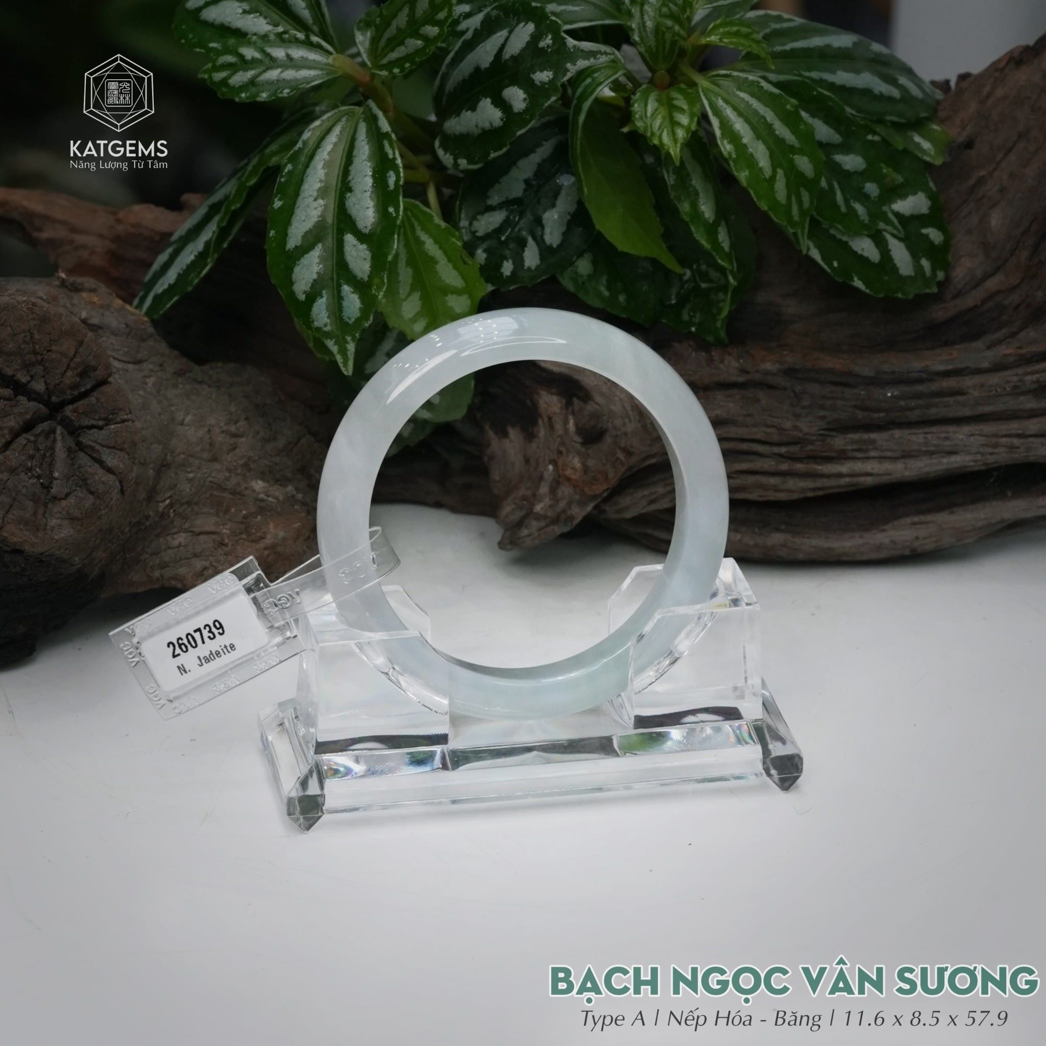 Vòng Khối Ngọc Phỉ Thúy Bạch Ngọc Vân Sương Cao Cấp Bản Hẹ 11.6 x 8.5 x 57.9 (Không Kén Mệnh) 260739