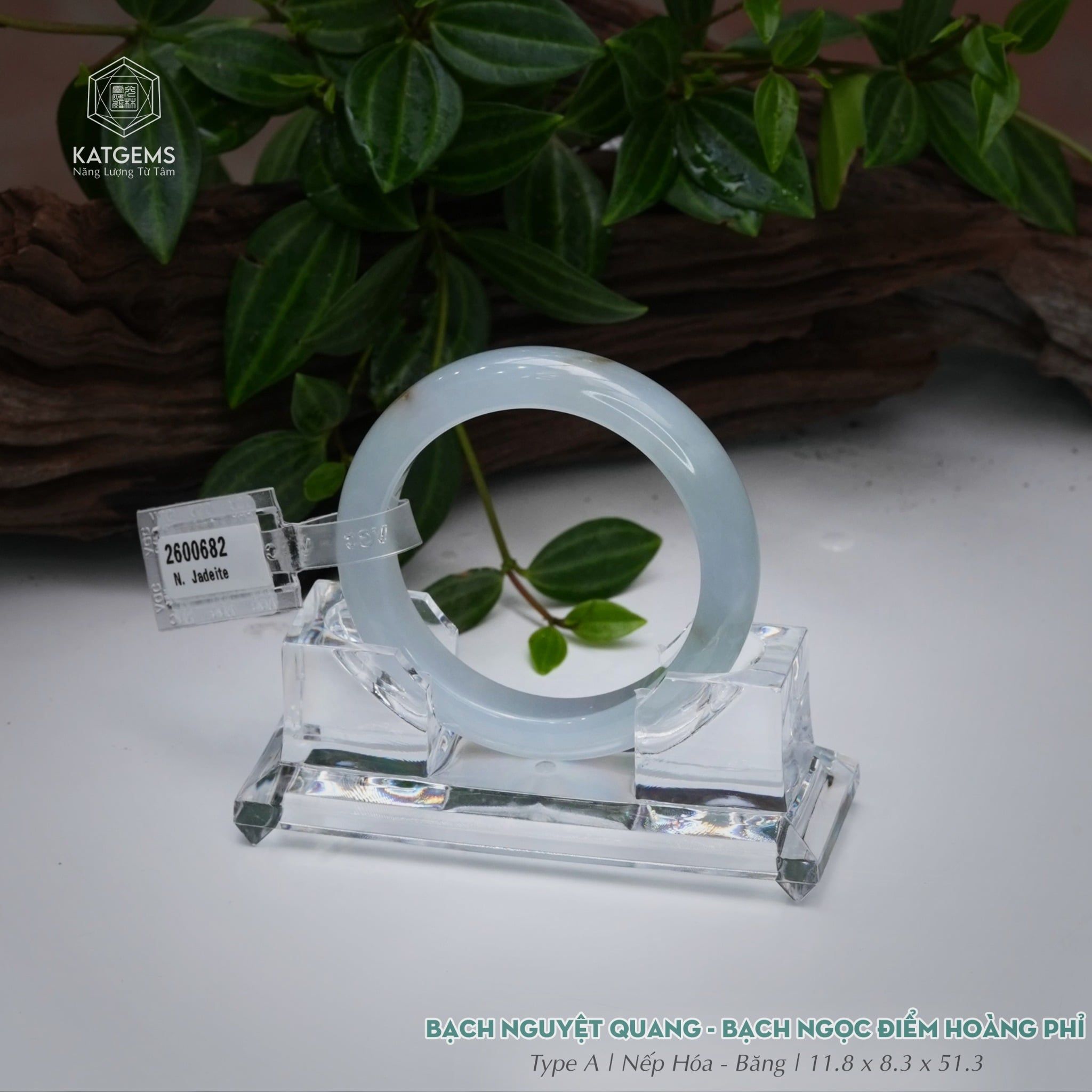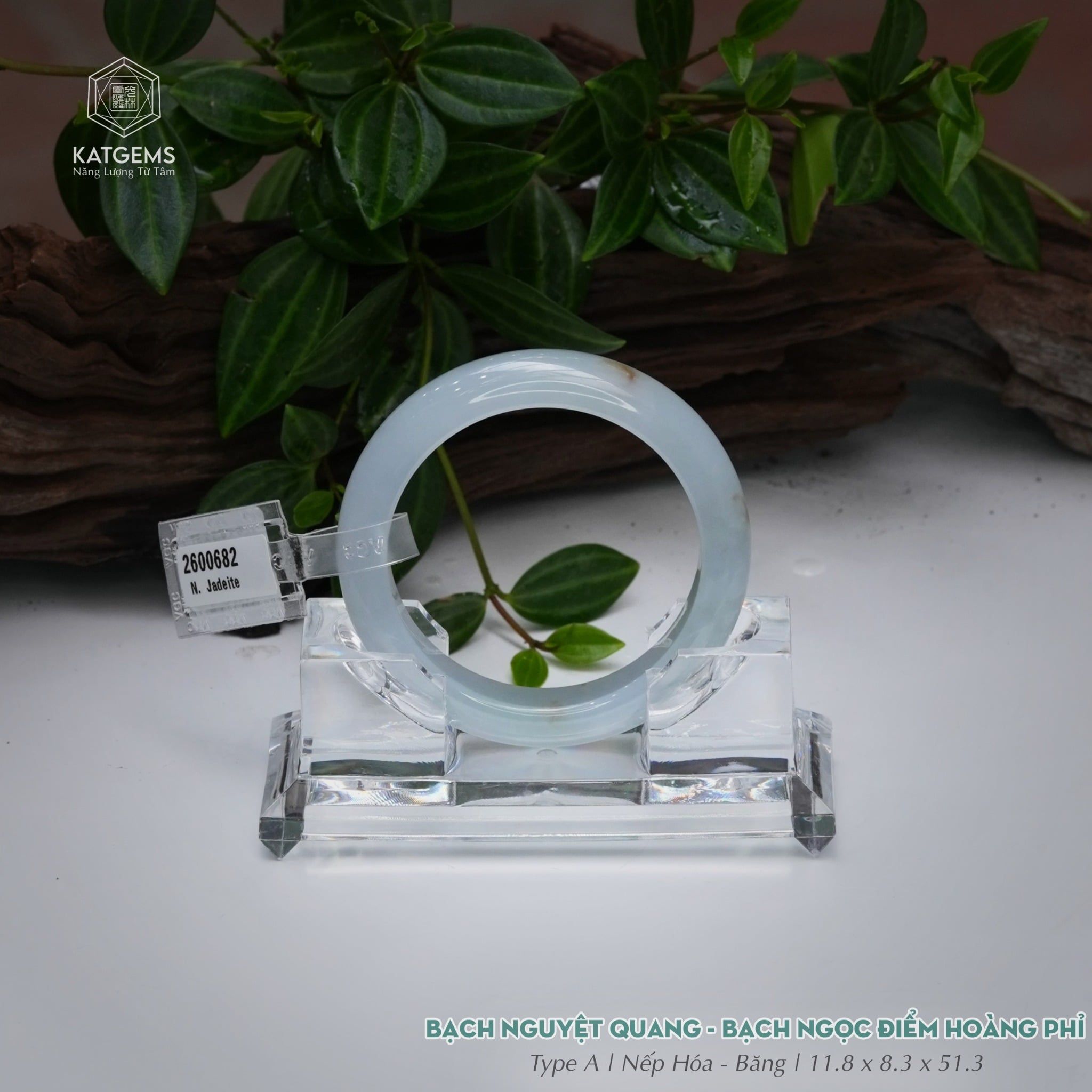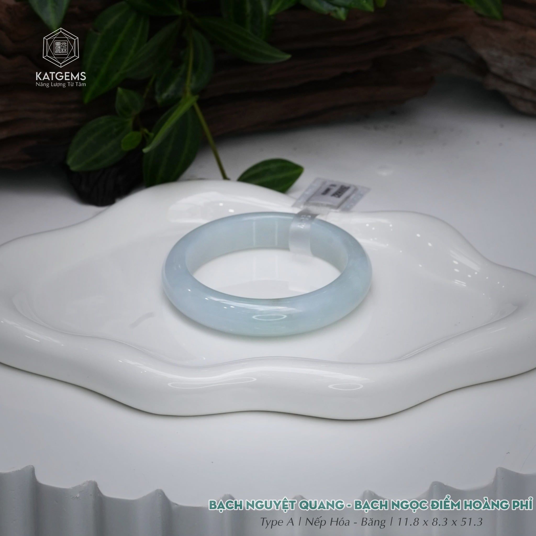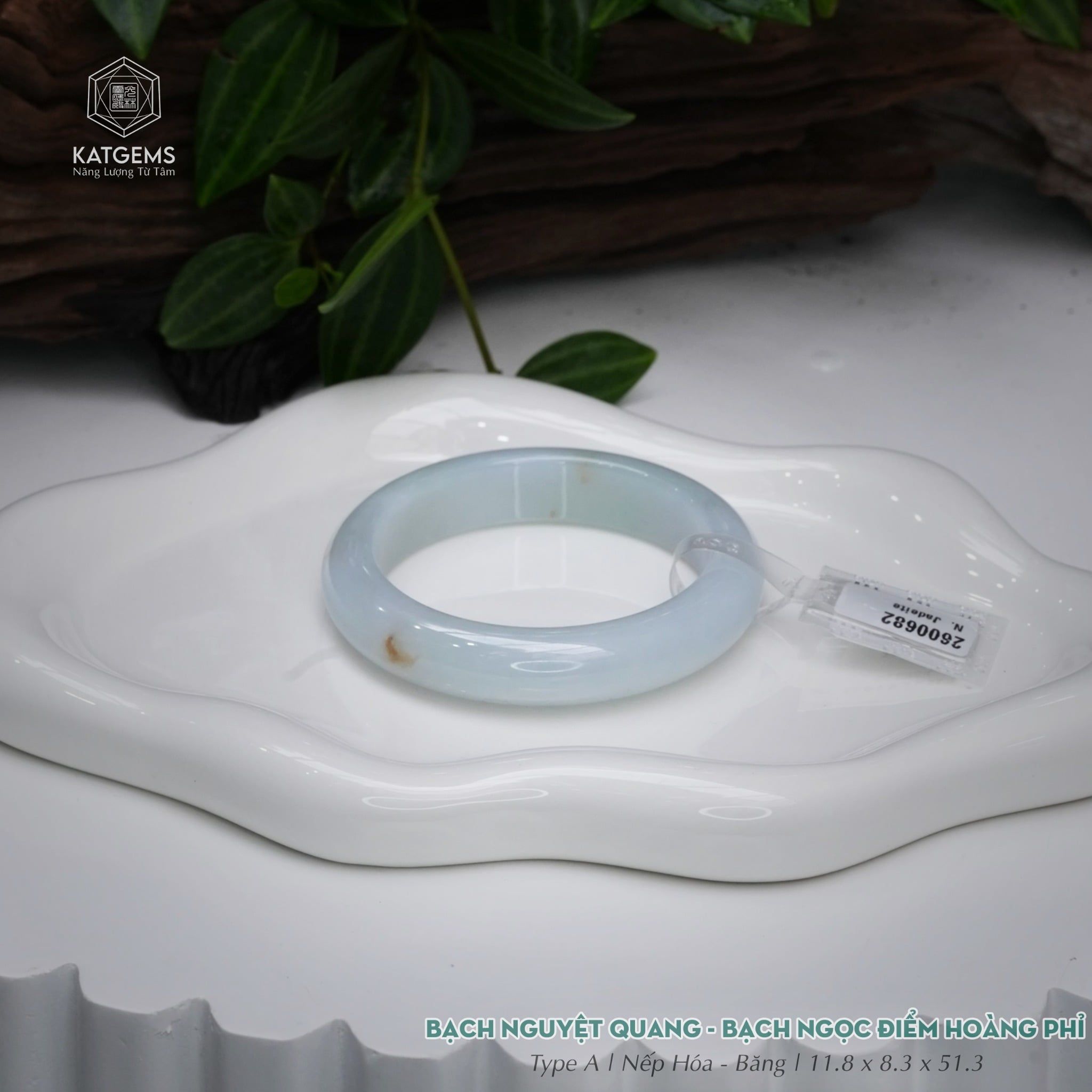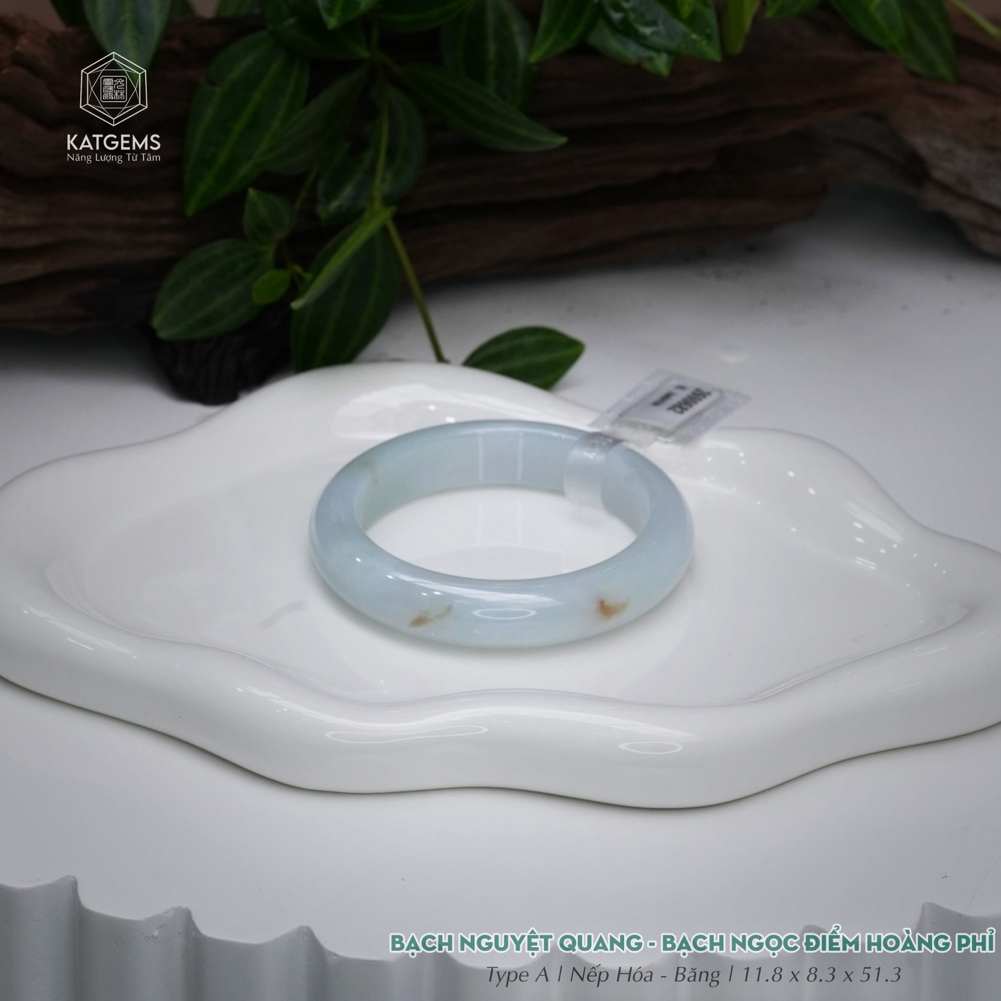 Vòng Khối Ngọc Phỉ Thúy Bạch Nguyệt Quang - Bạch Ngọc Điểm Hoàng Phỉ Cao Cấp Bản Hẹ 11.8 x 8.3 x 51.3 (Không Kén Mệnh) 2600682