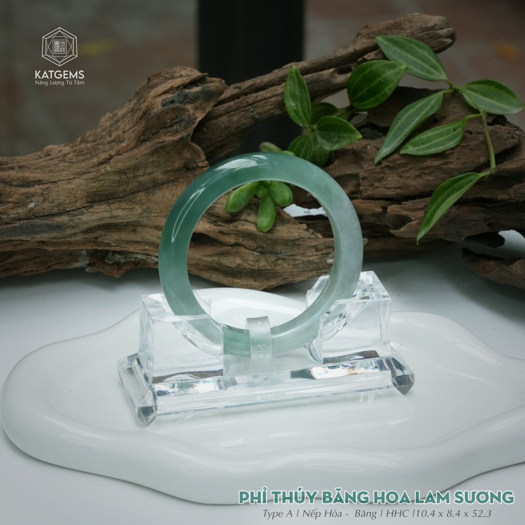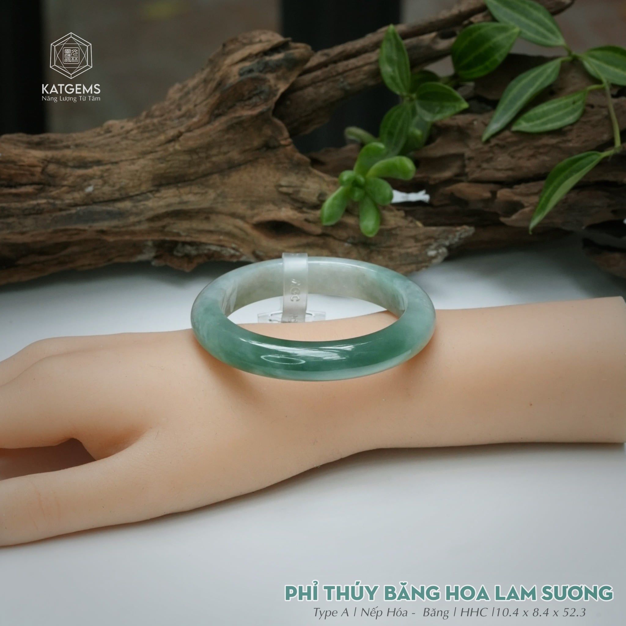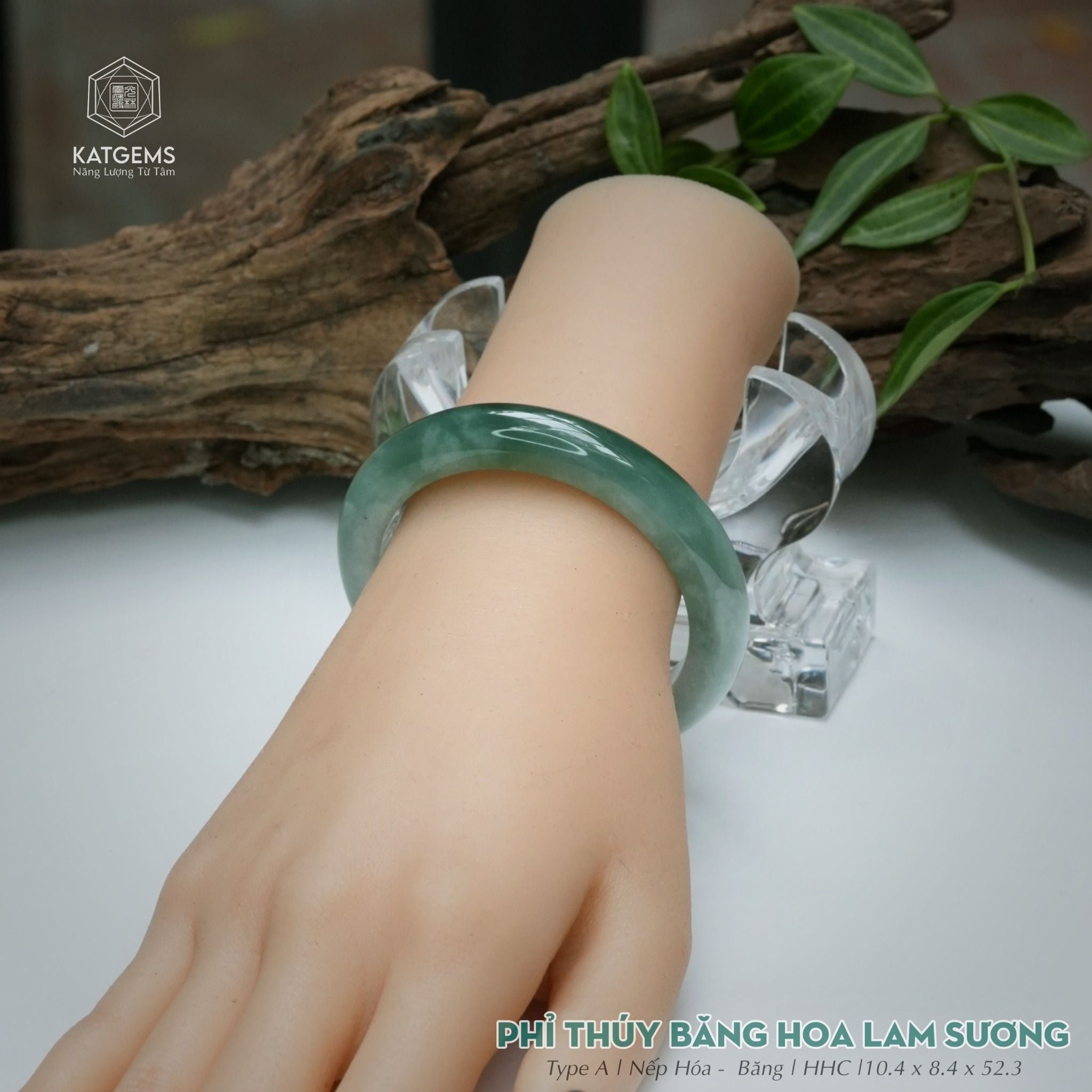 Vòng Khối Ngọc Phỉ Thúy Băng Hoa Lam Sương Cao Cấp Bản Hẹ 10.4 x 8.4 x 52.3 (Không Kén Mệnh) 2544335