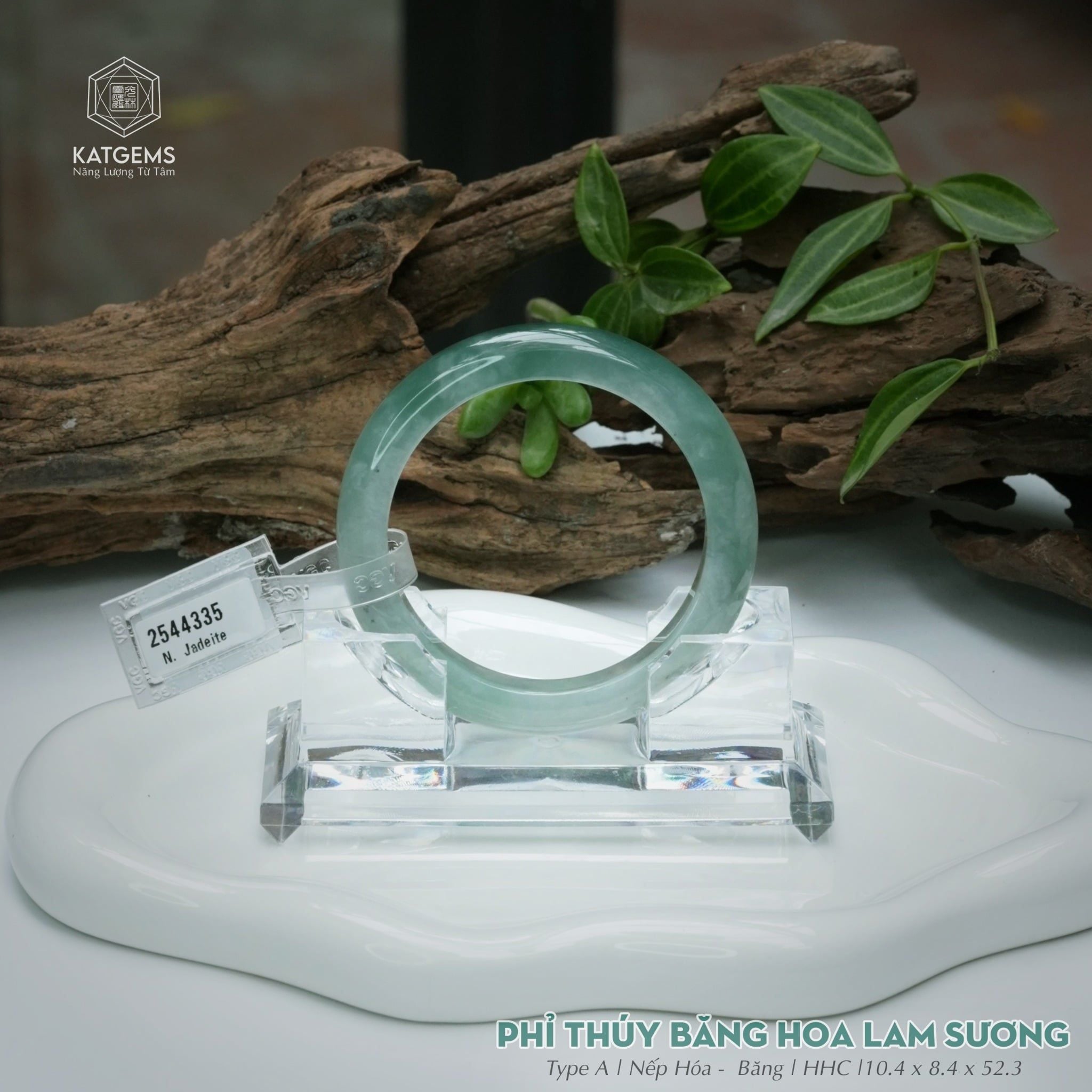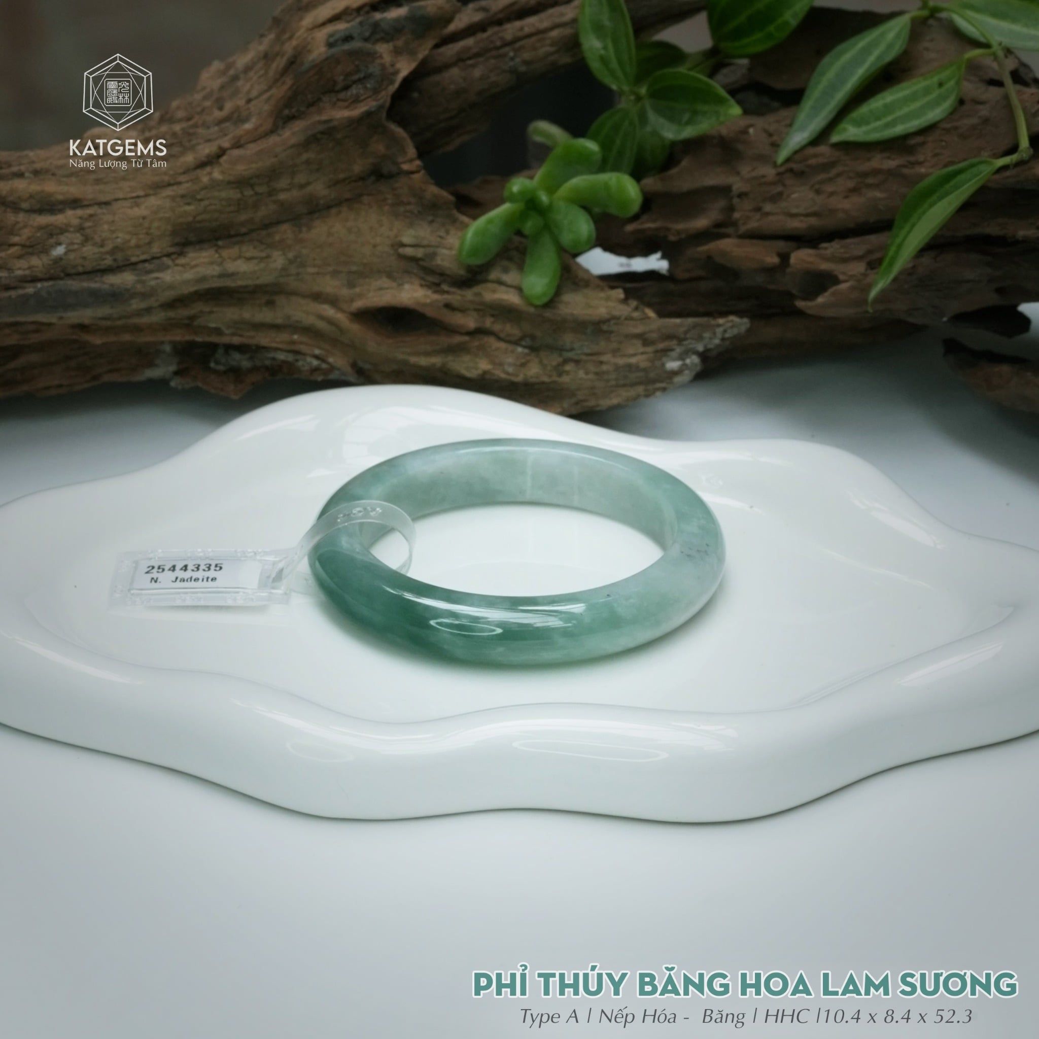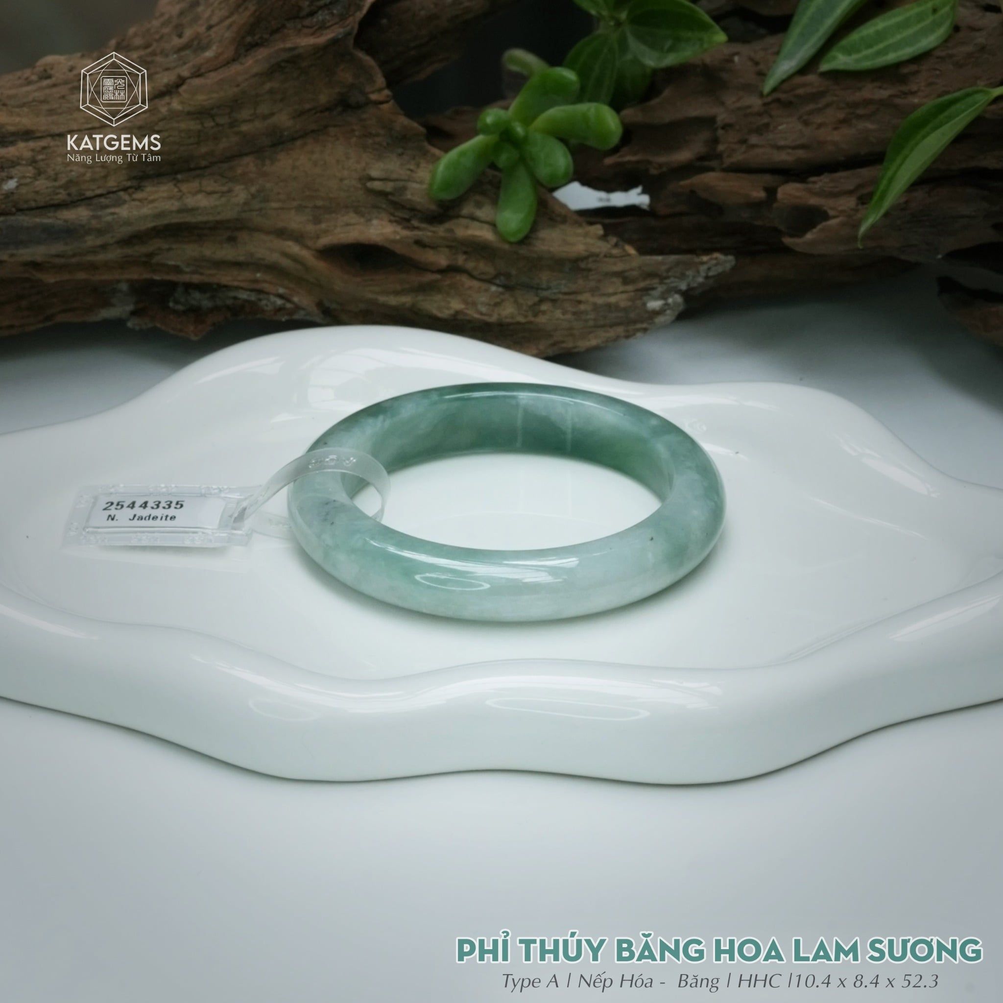 Vòng Khối Ngọc Phỉ Thúy Băng Hoa Lam Sương Cao Cấp Bản Hẹ 10.4 x 8.4 x 52.3 (Không Kén Mệnh) 2544335