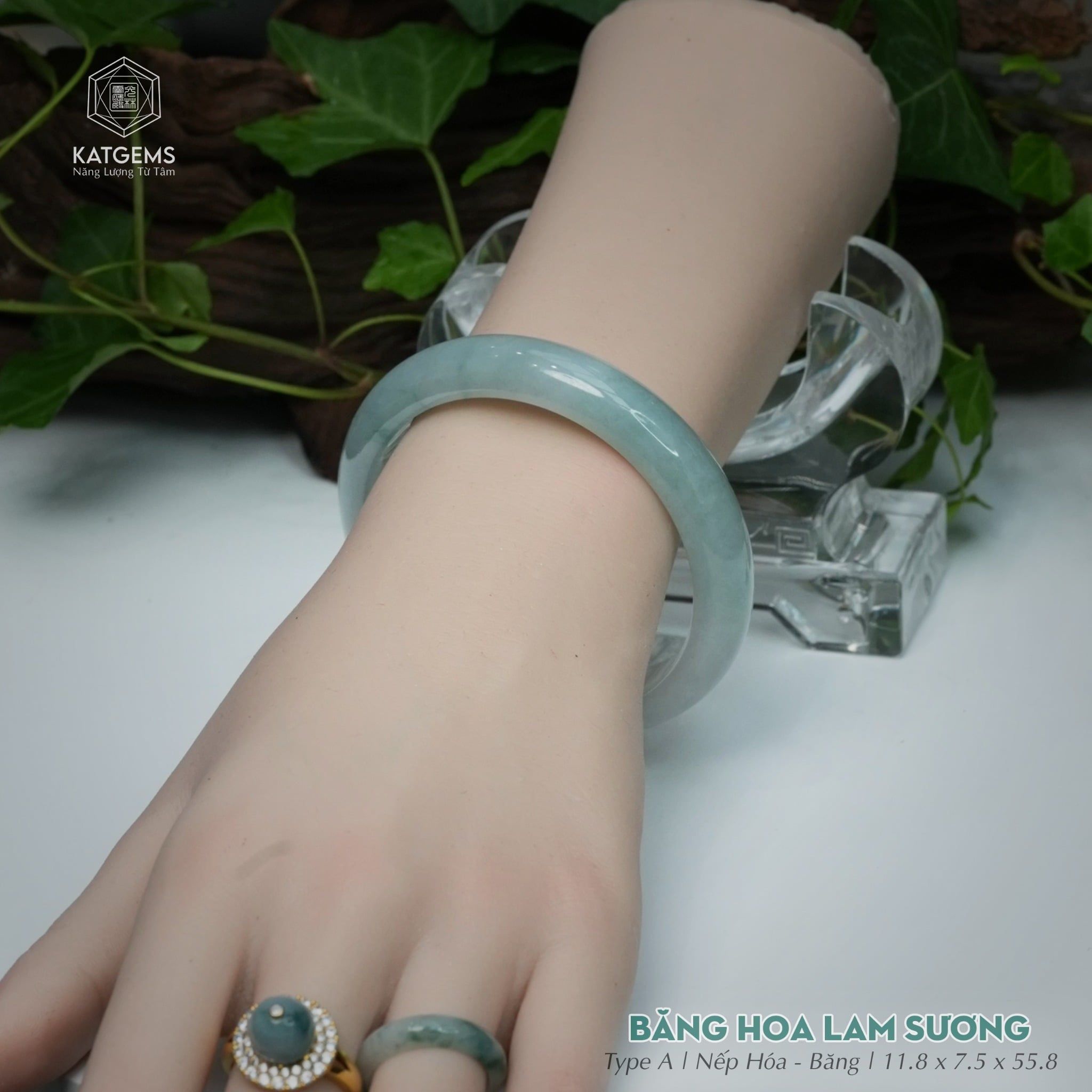Vòng Khối Ngọc Phỉ Thúy Băng Hoa Lam Sương Cao Cấp Bản Hẹ 11.8 x 7.5 x 55.8 (Không Kén Mệnh) 2545852