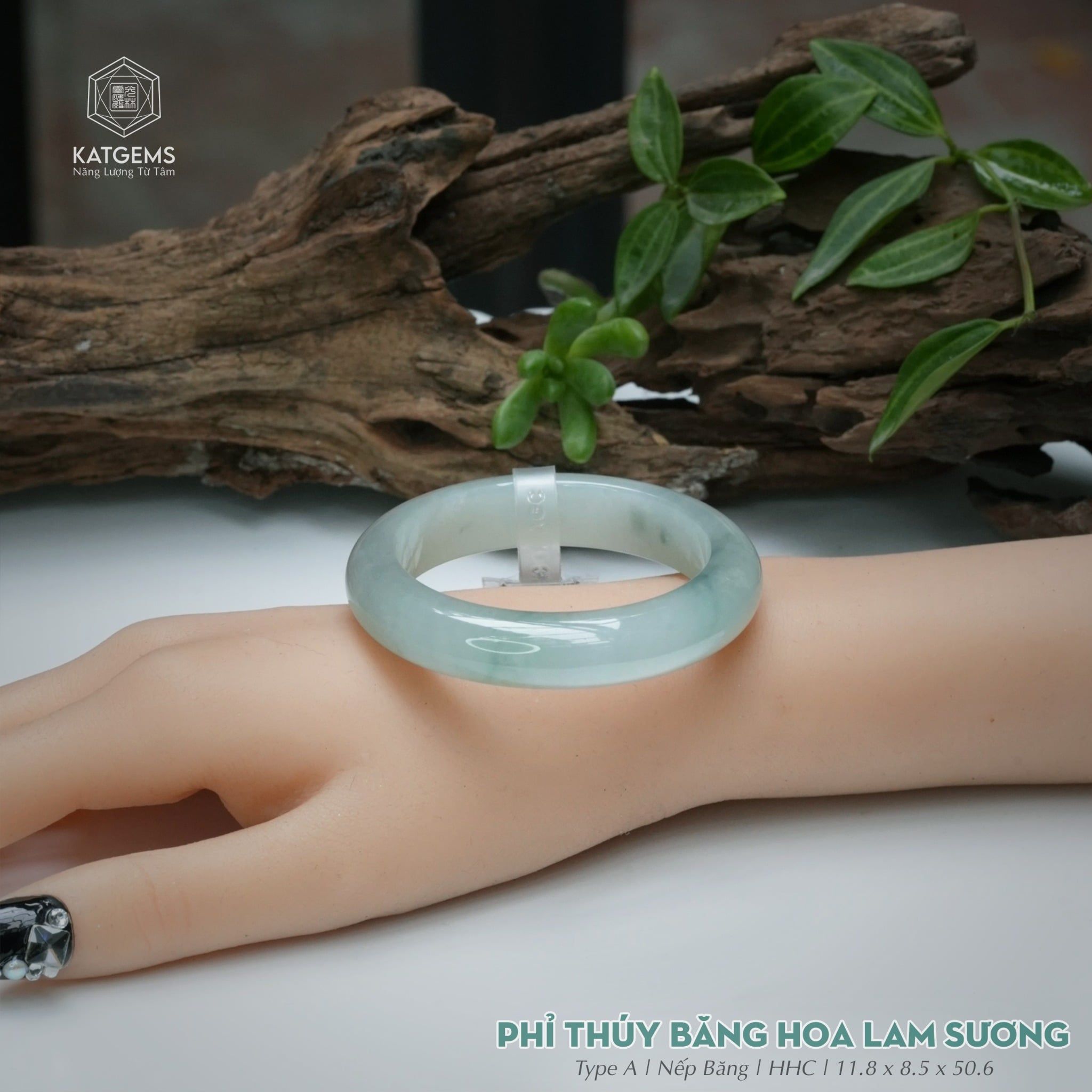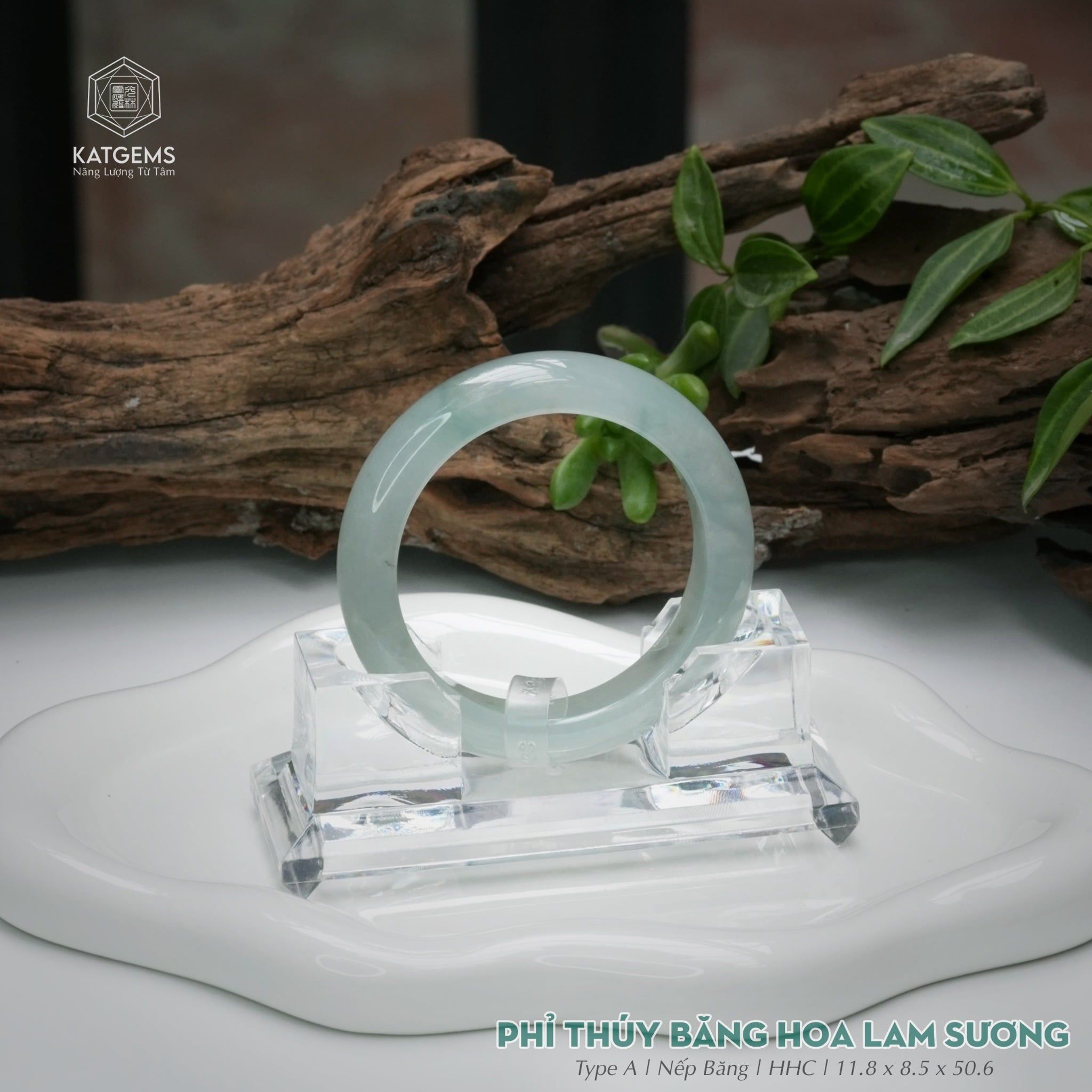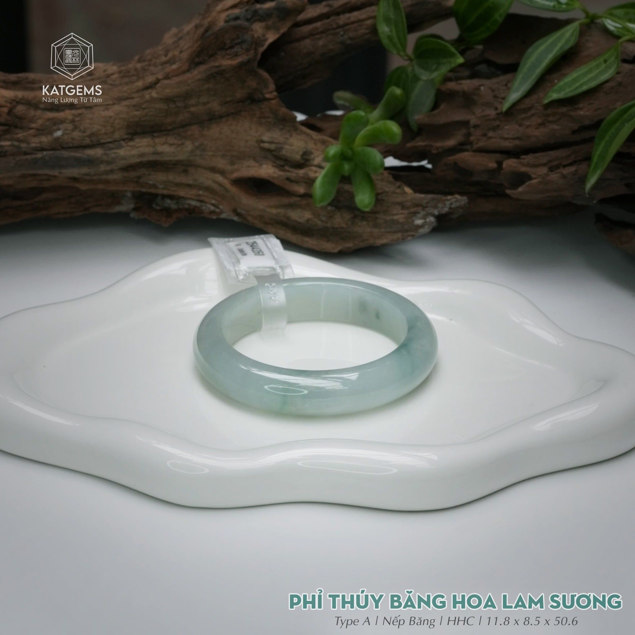 Vòng Khối Ngọc Phỉ Thúy Băng Hoa Lam Sương Cao Cấp Bản Hẹ 11.8 x 8.5 x 50.6 (Không Kén Mệnh) 2544350