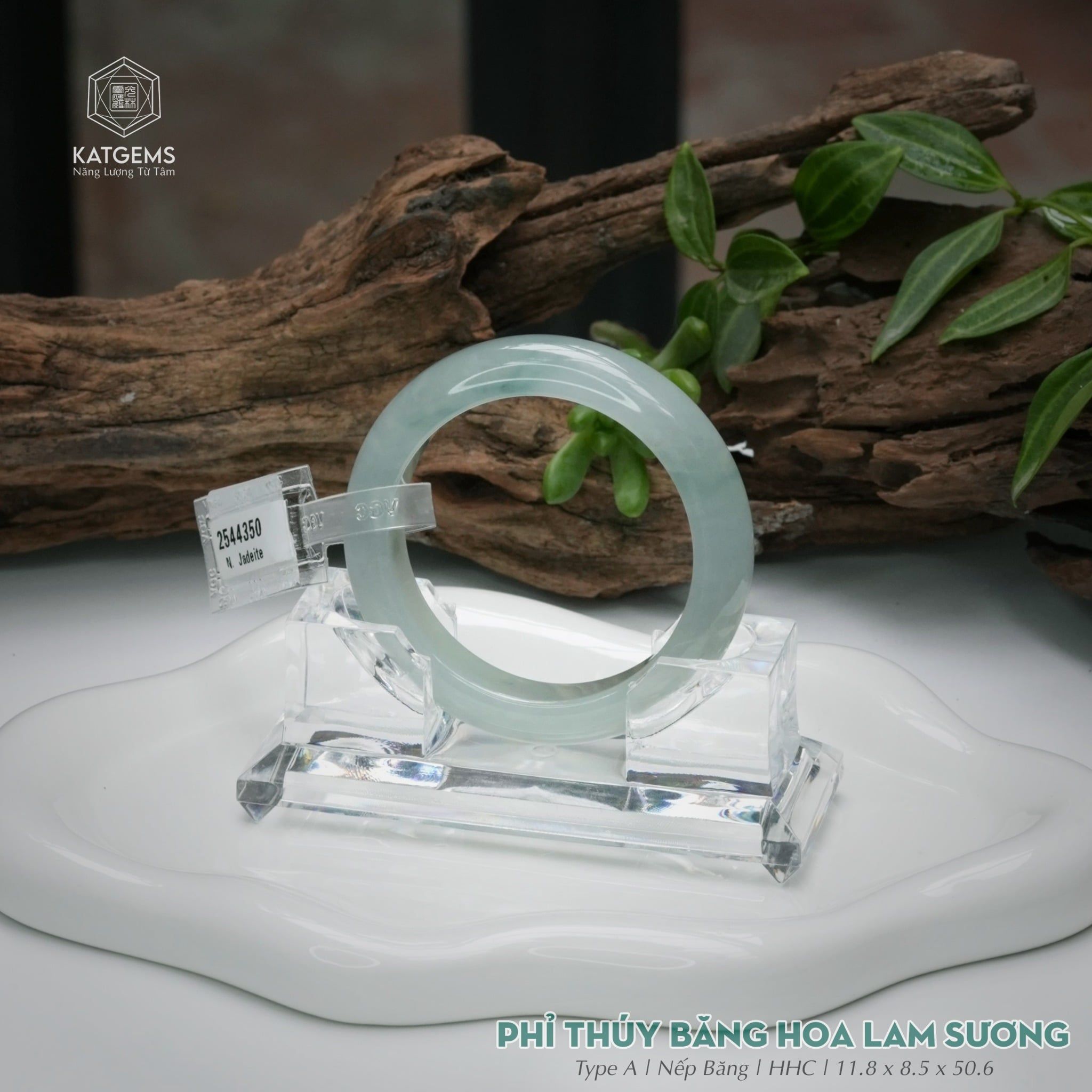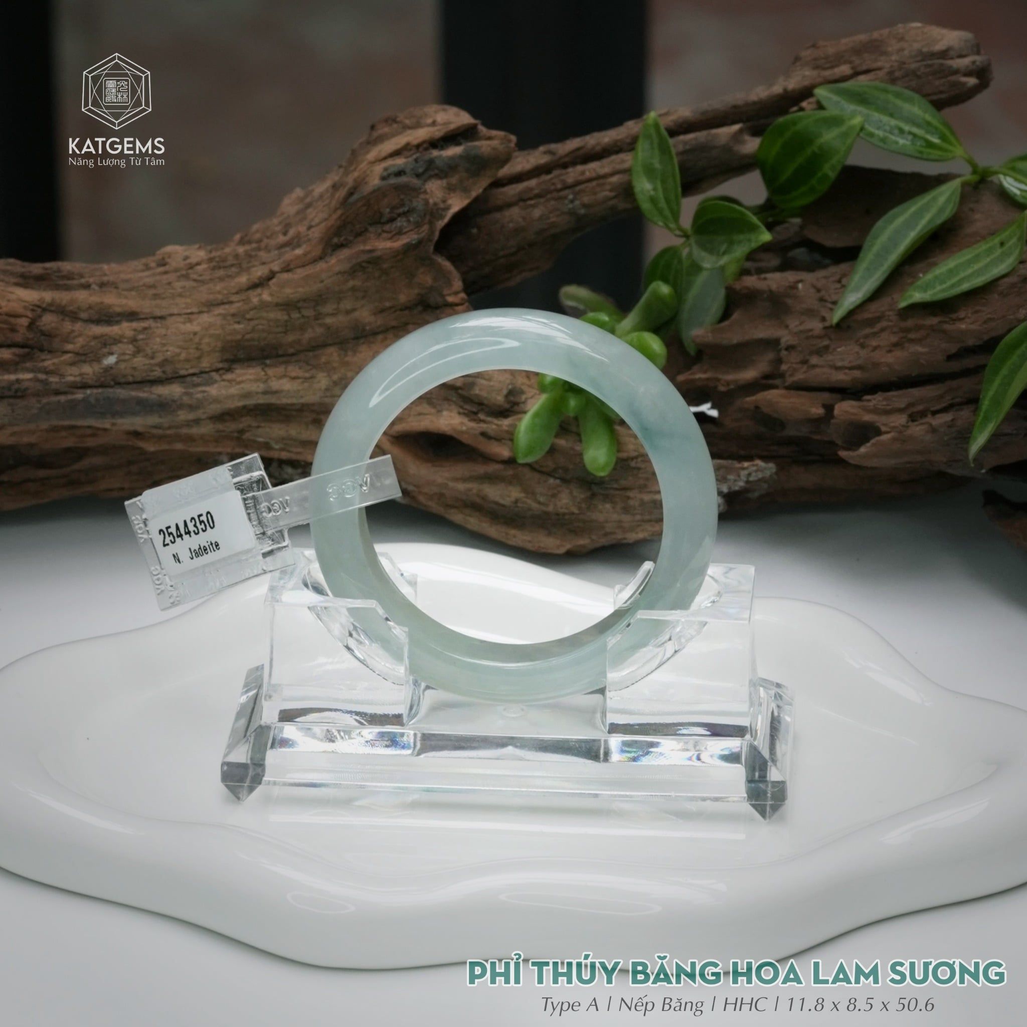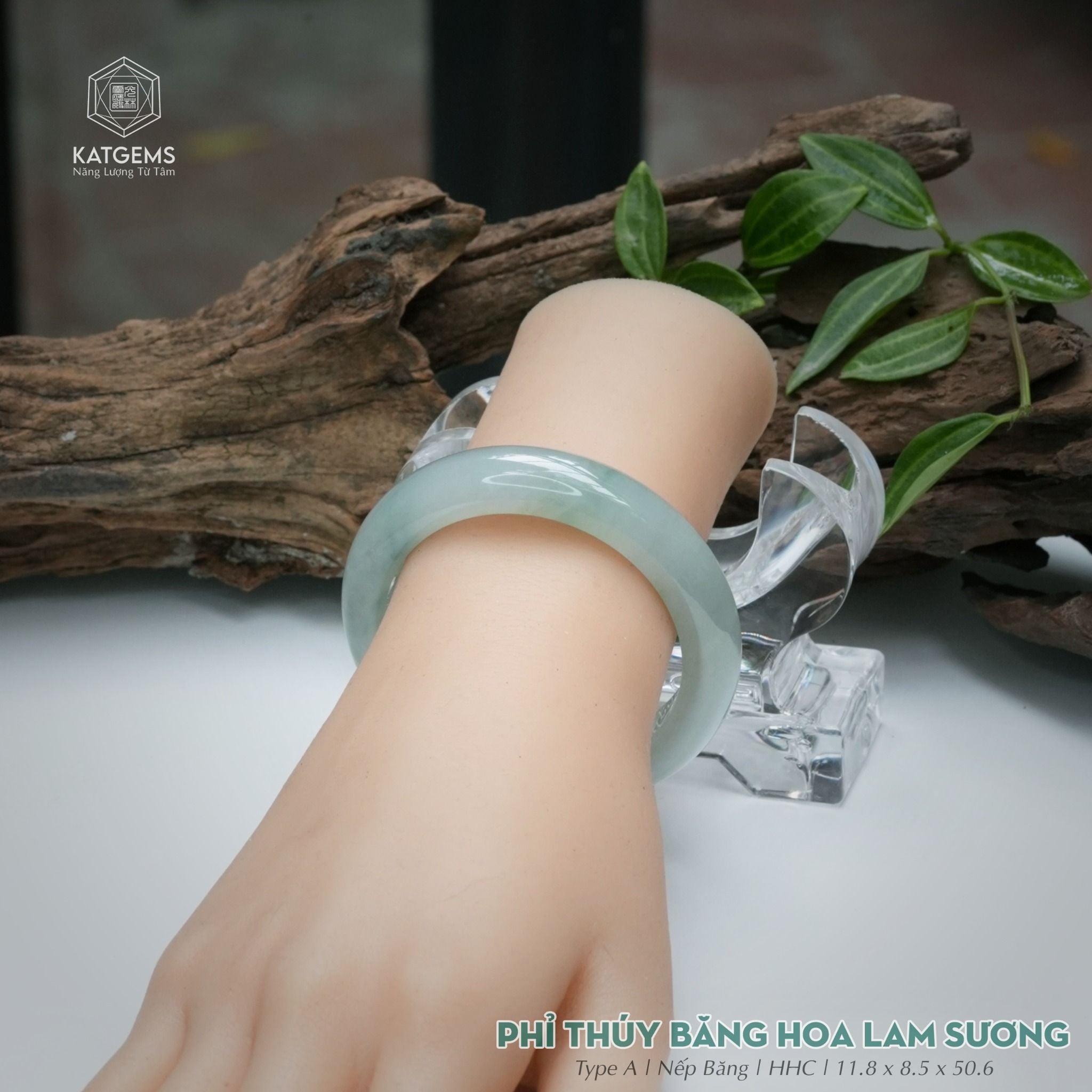Vòng Khối Ngọc Phỉ Thúy Băng Hoa Lam Sương Cao Cấp Bản Hẹ 11.8 x 8.5 x 50.6 (Không Kén Mệnh) 2544350