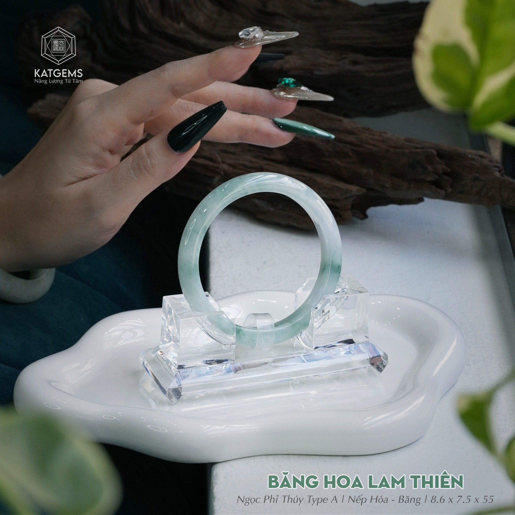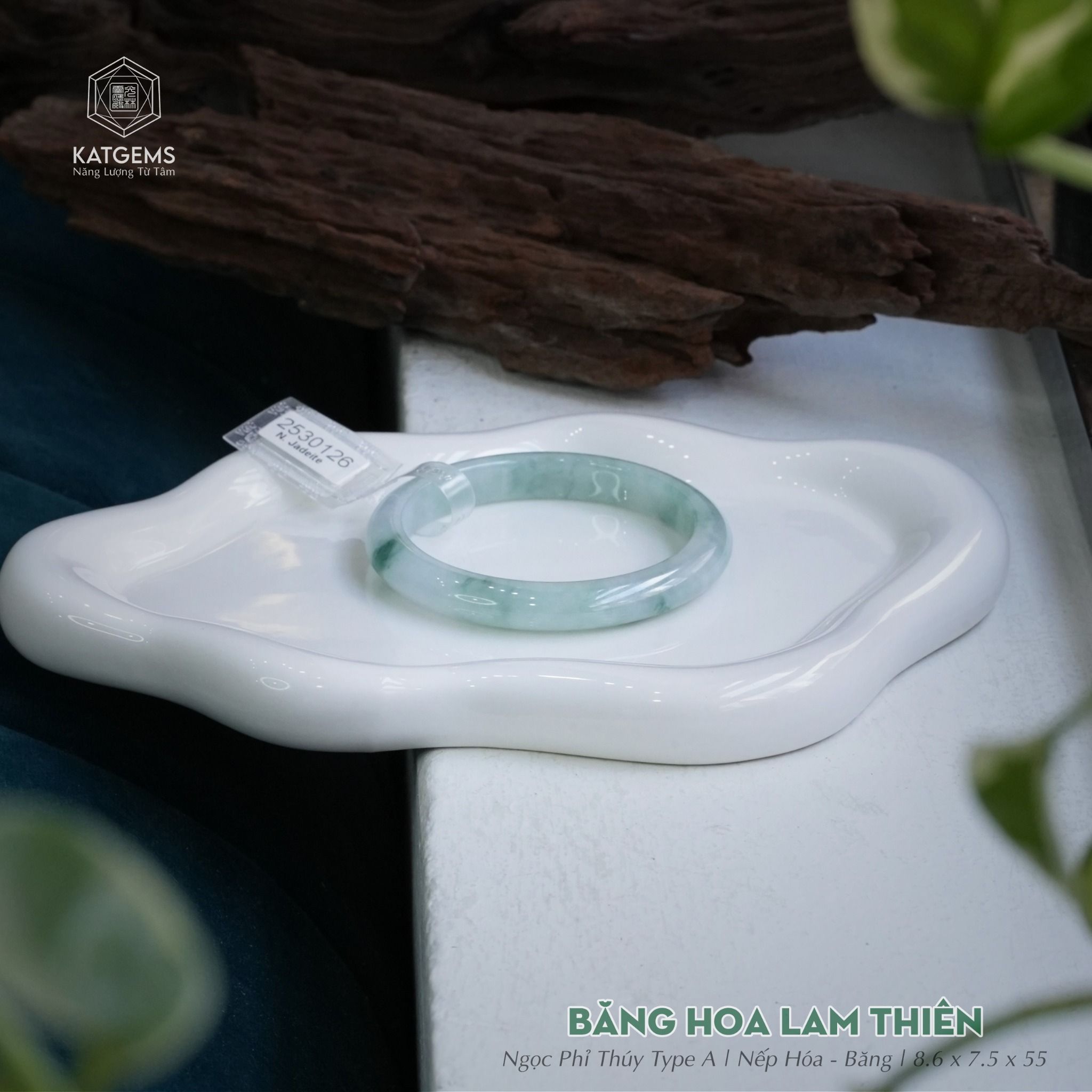 Vòng Khối Ngọc Phỉ Thúy Băng Hoa Lam Thiên Cao Cấp Bản Hẹ 8.6 x 7.5 x 55 (Không Kén Mệnh) 2530126