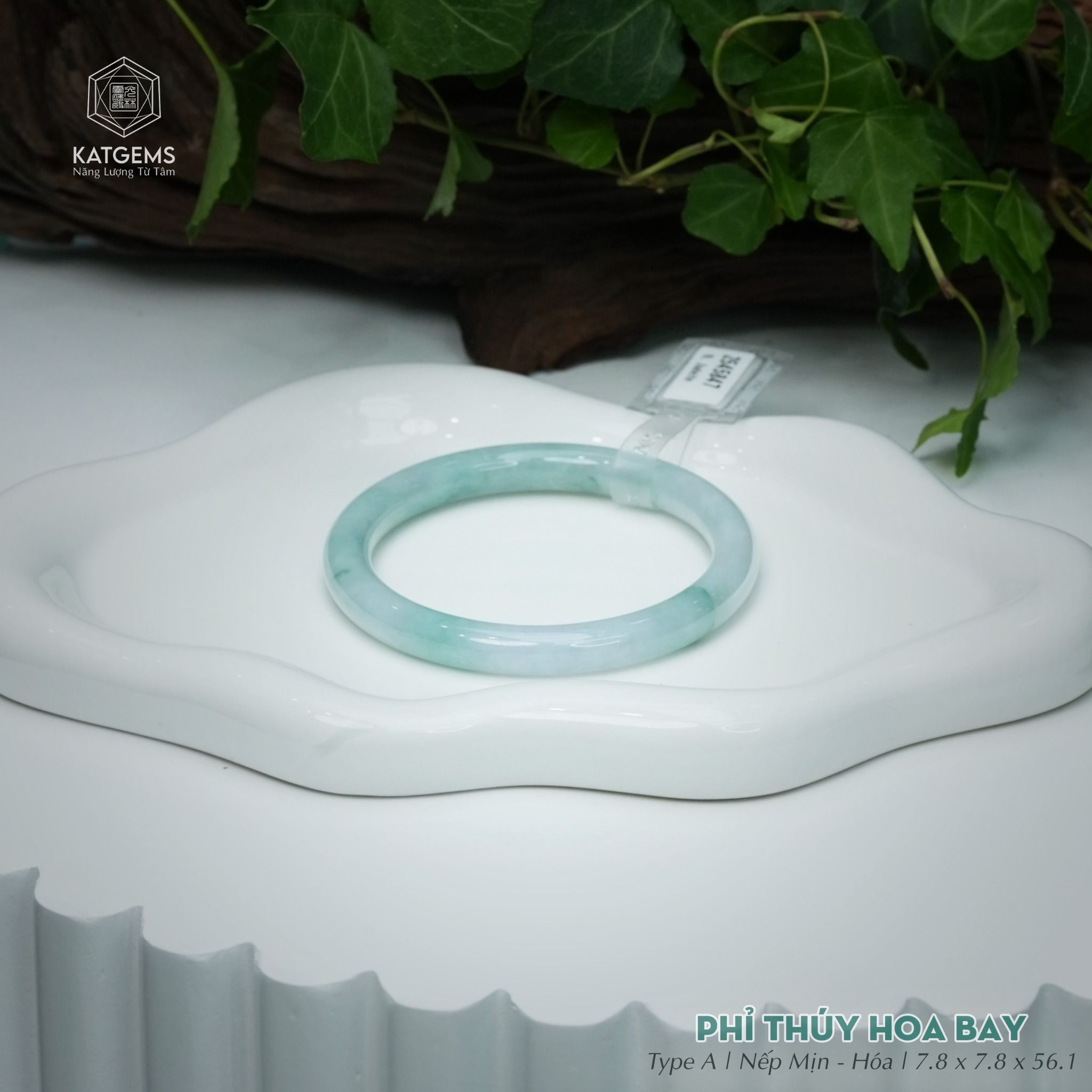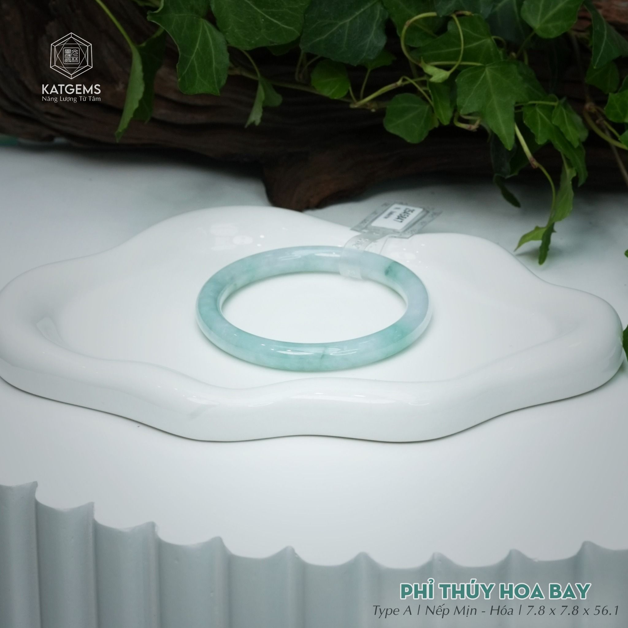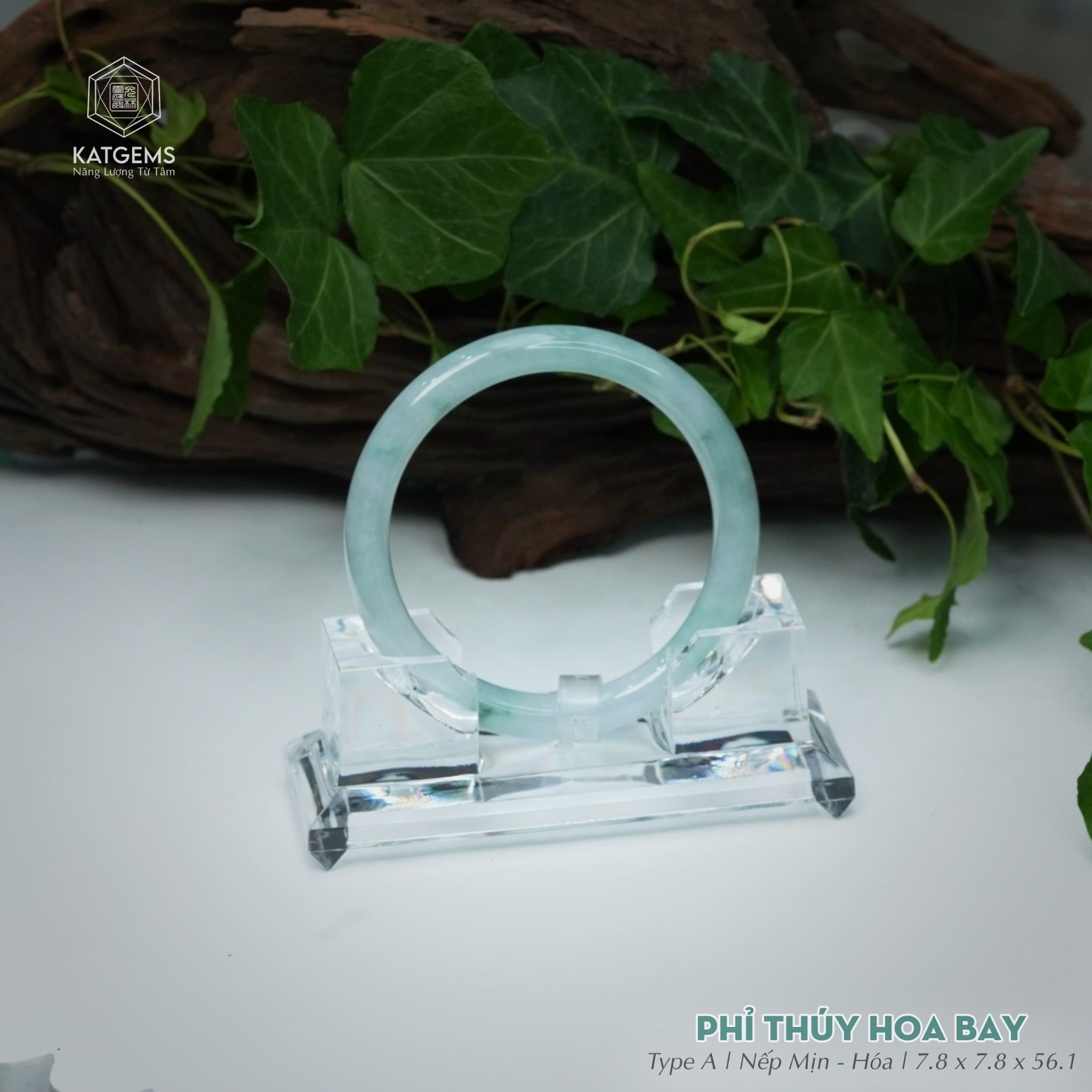 Vòng Khối Ngọc Phỉ Thúy Hoa Bay Cao Cấp Bản Đũa 7.8 x 7.8 x 56.1 (Không Kén Mệnh) 2545847