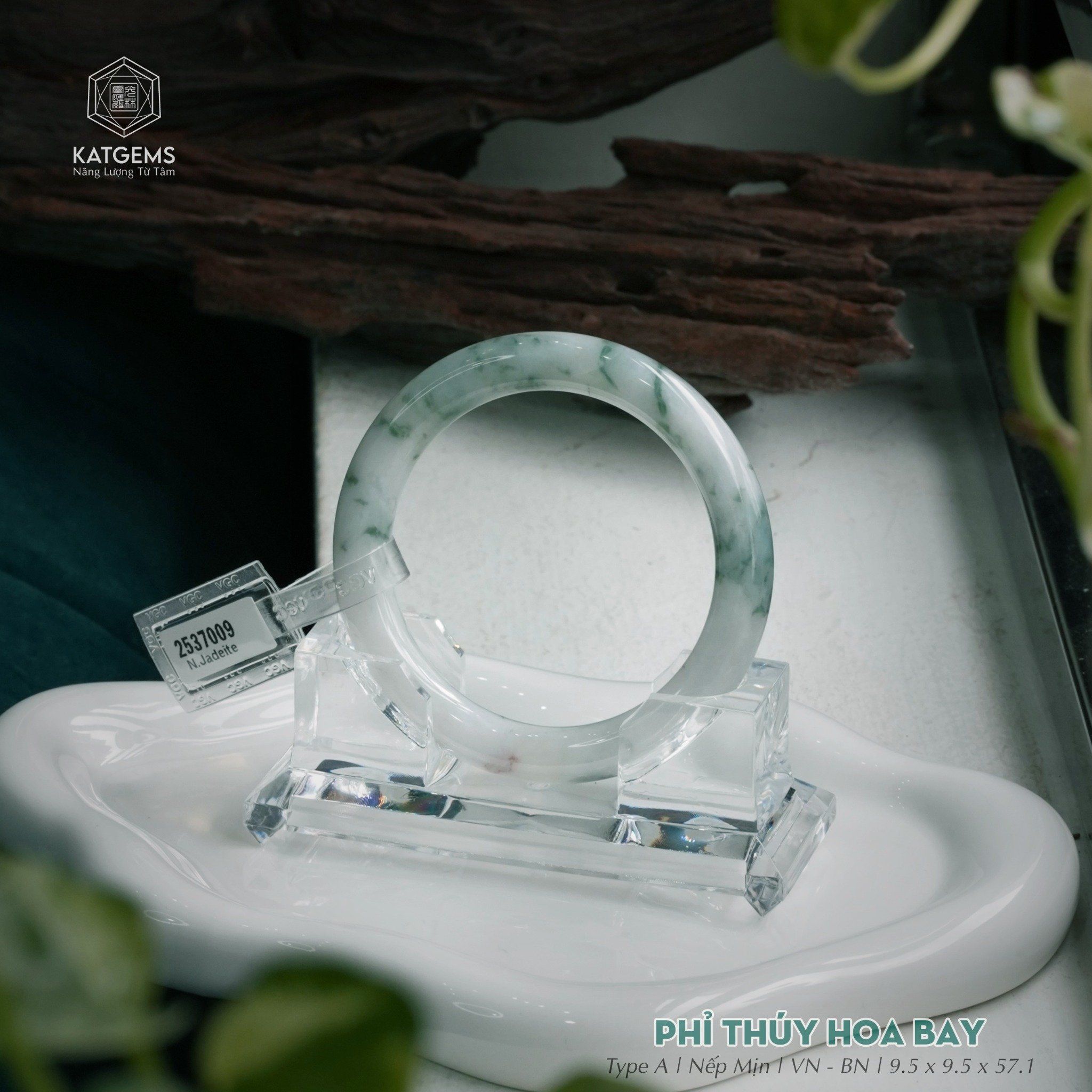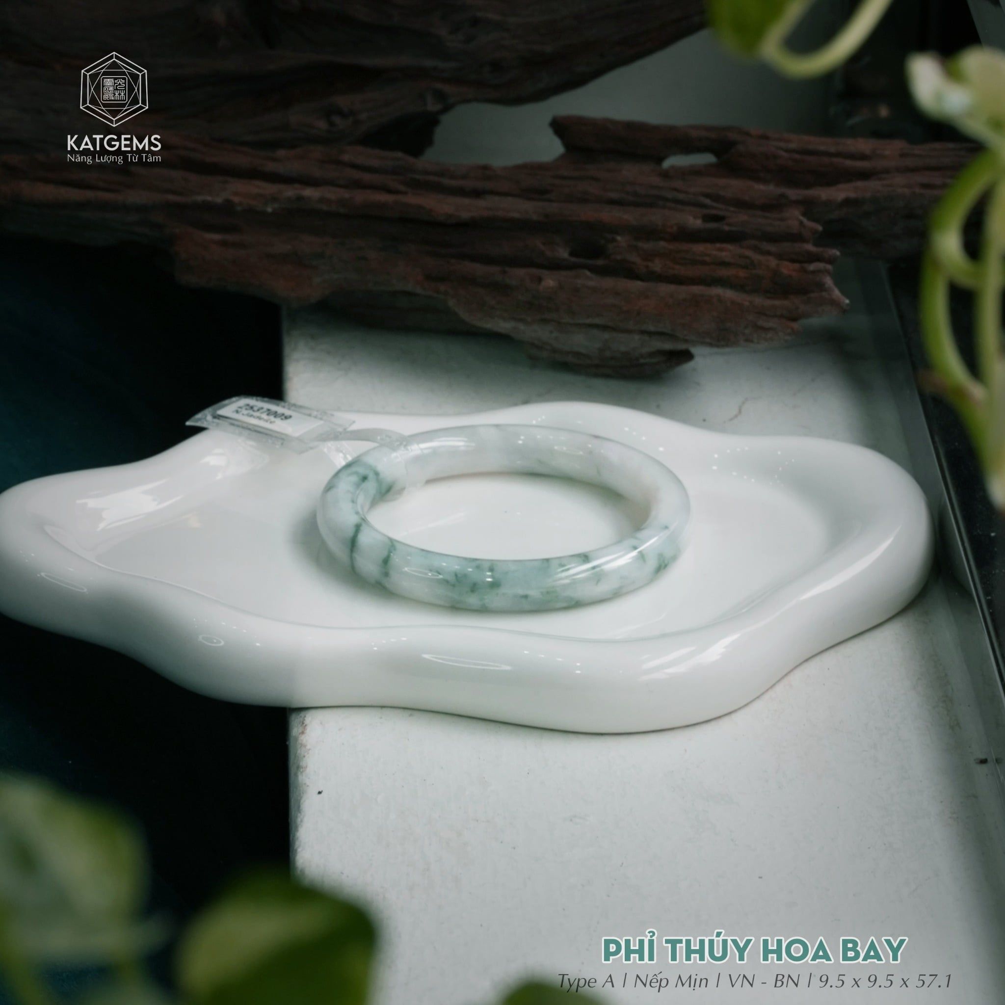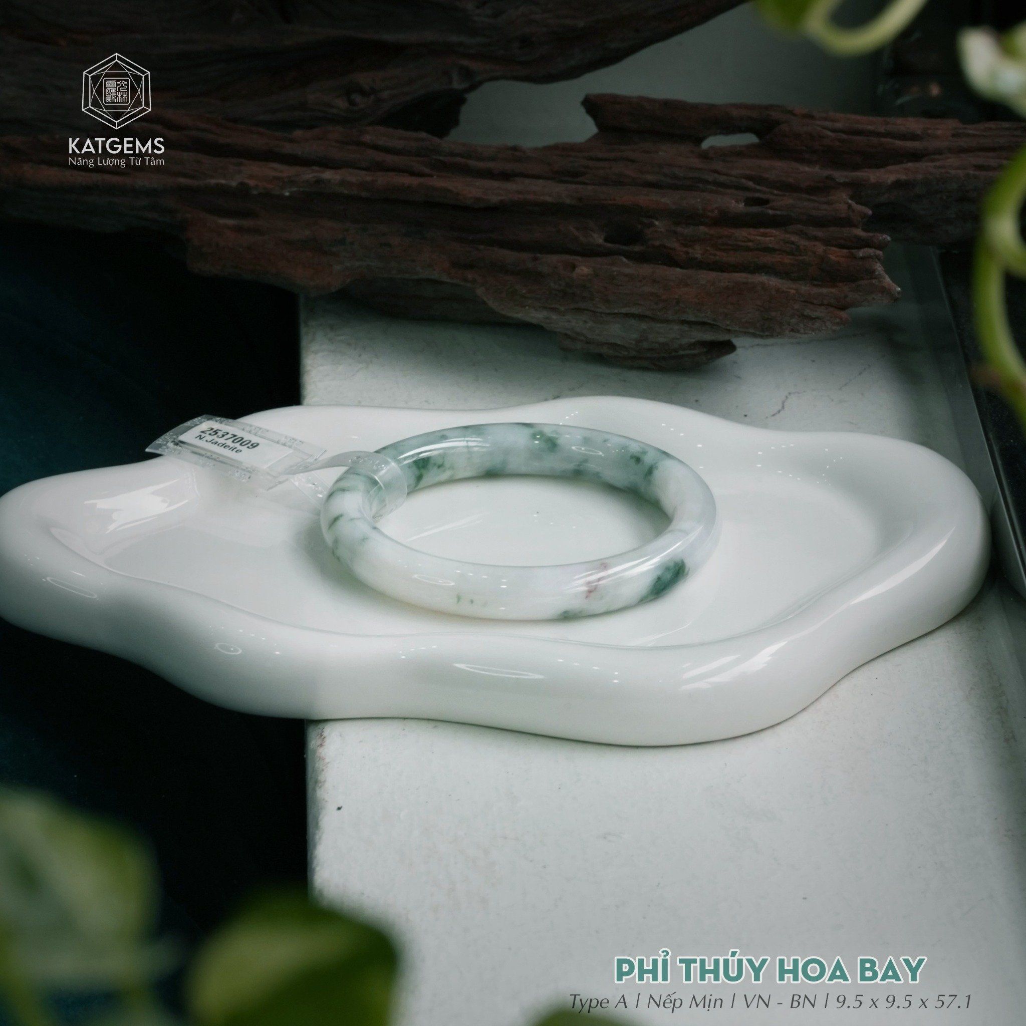 Vòng Khối Ngọc Phỉ Thúy Hoa Bay Cao Cấp Bản Đũa 9.5 x 9.5 x 57.1 (Không Kén Mệnh) 2537009