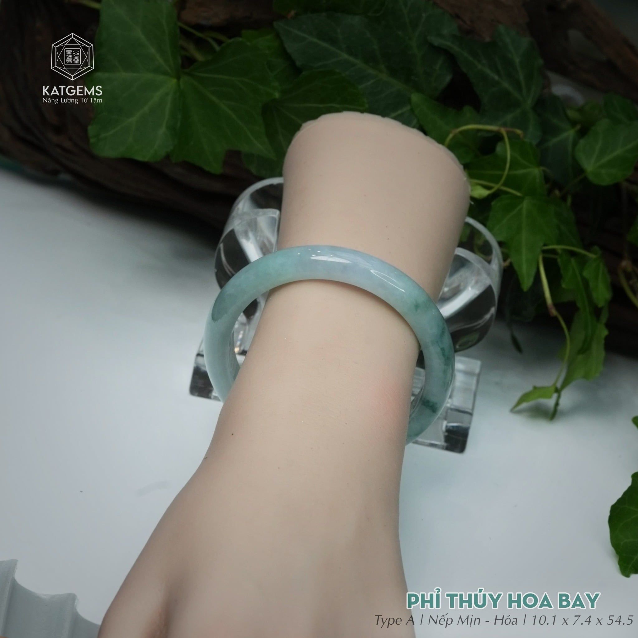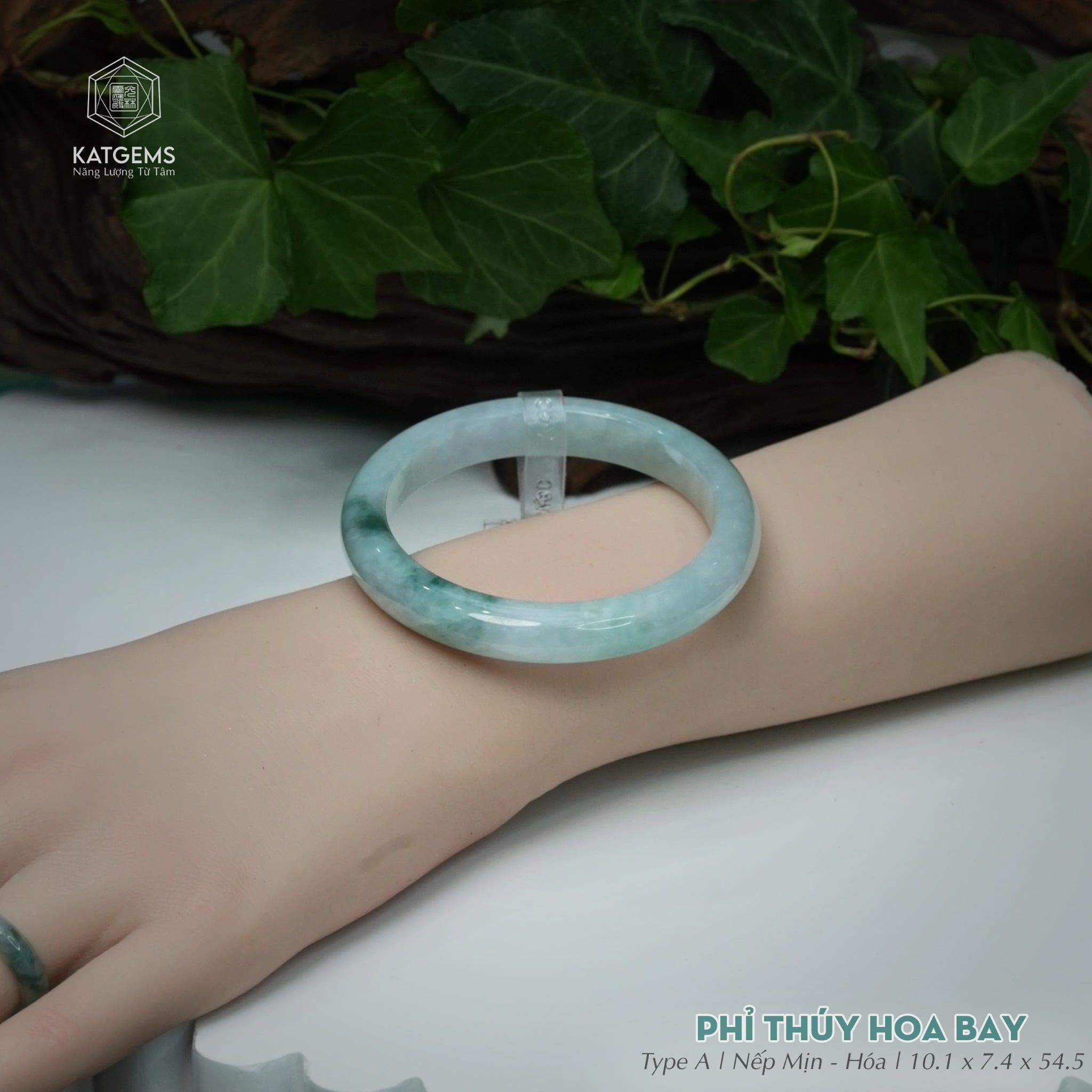 Vòng Khối Ngọc Phỉ Thúy Hoa Bay Cao Cấp Bản Hẹ 10.1 x 7.4 x 54.5 (Không Kén Mệnh) 2545859