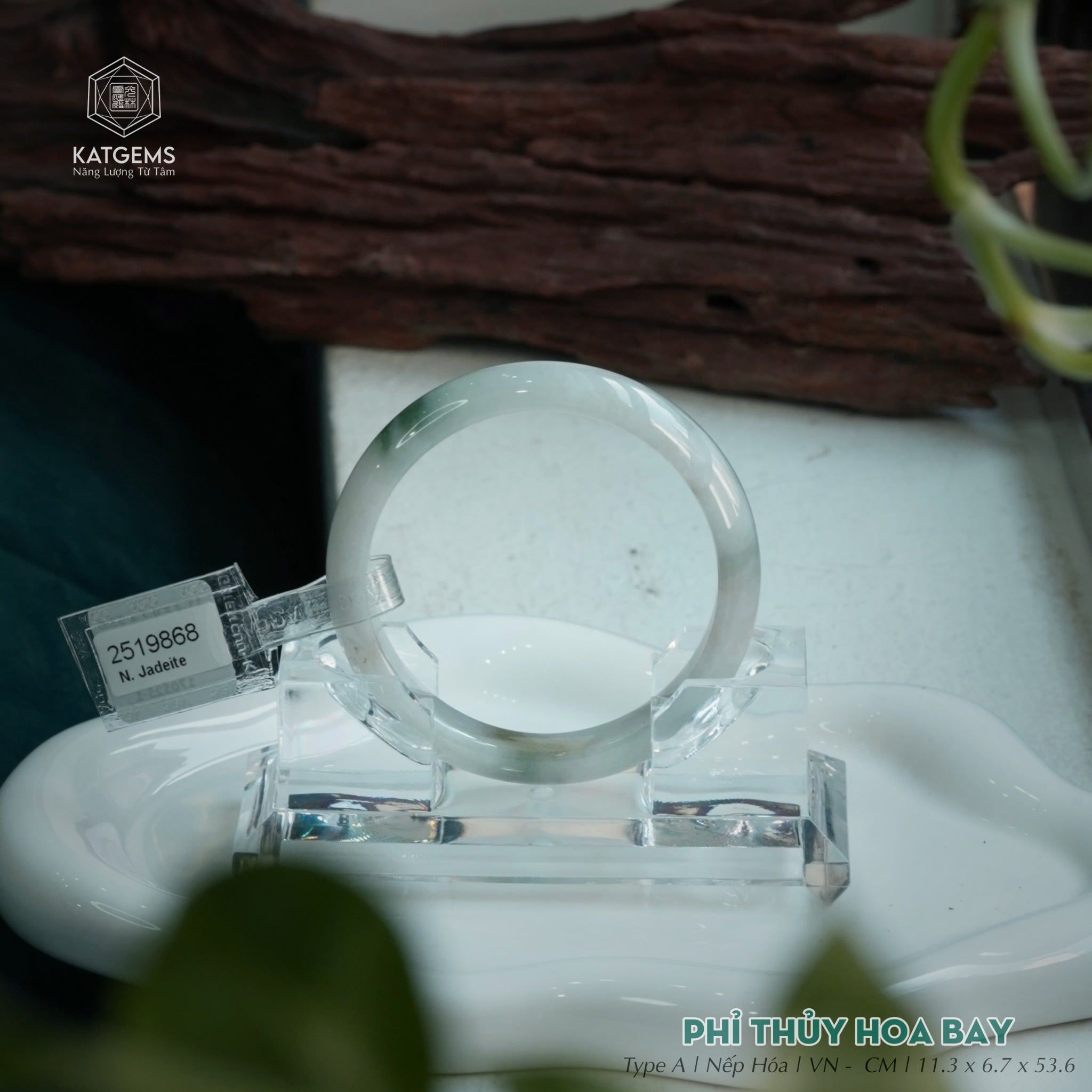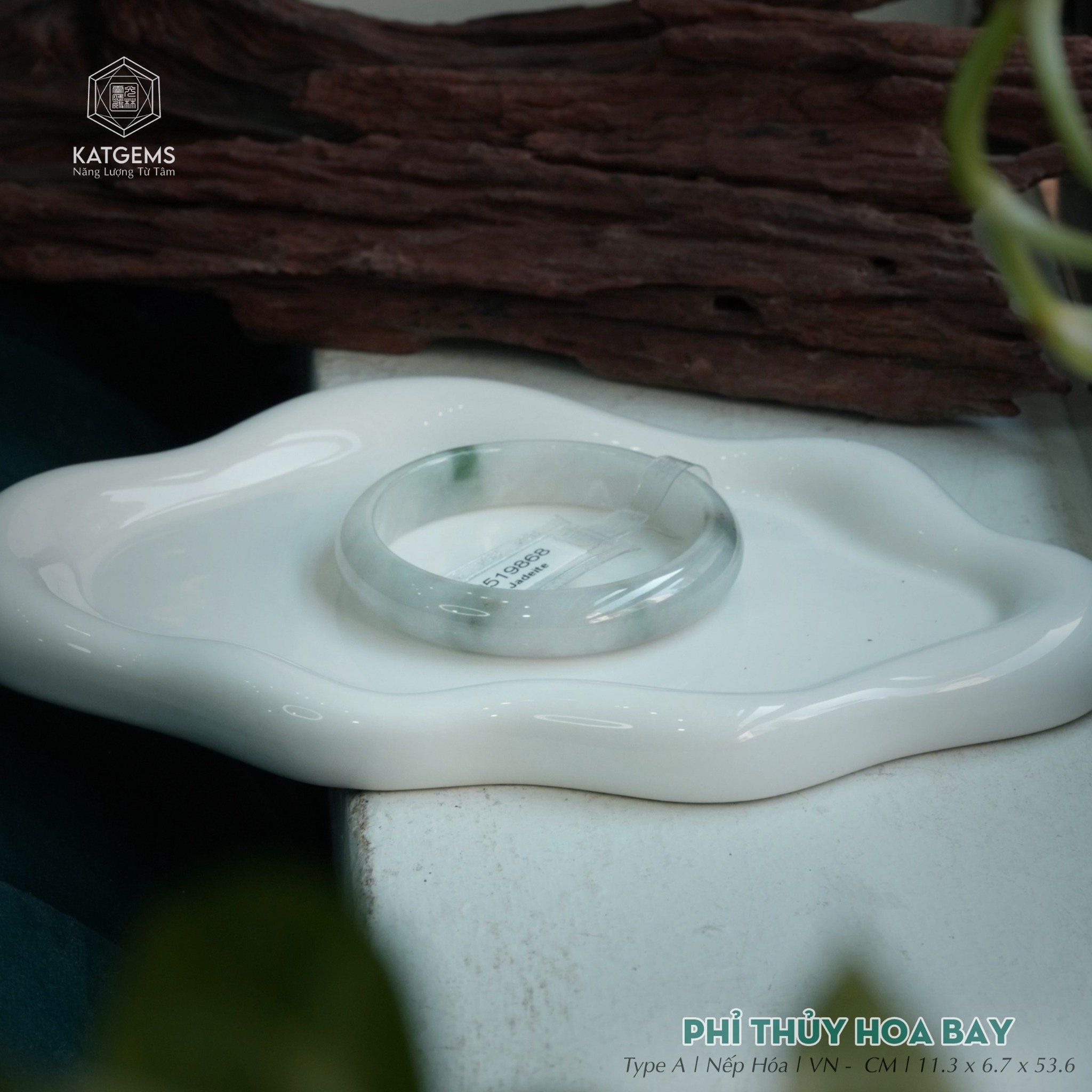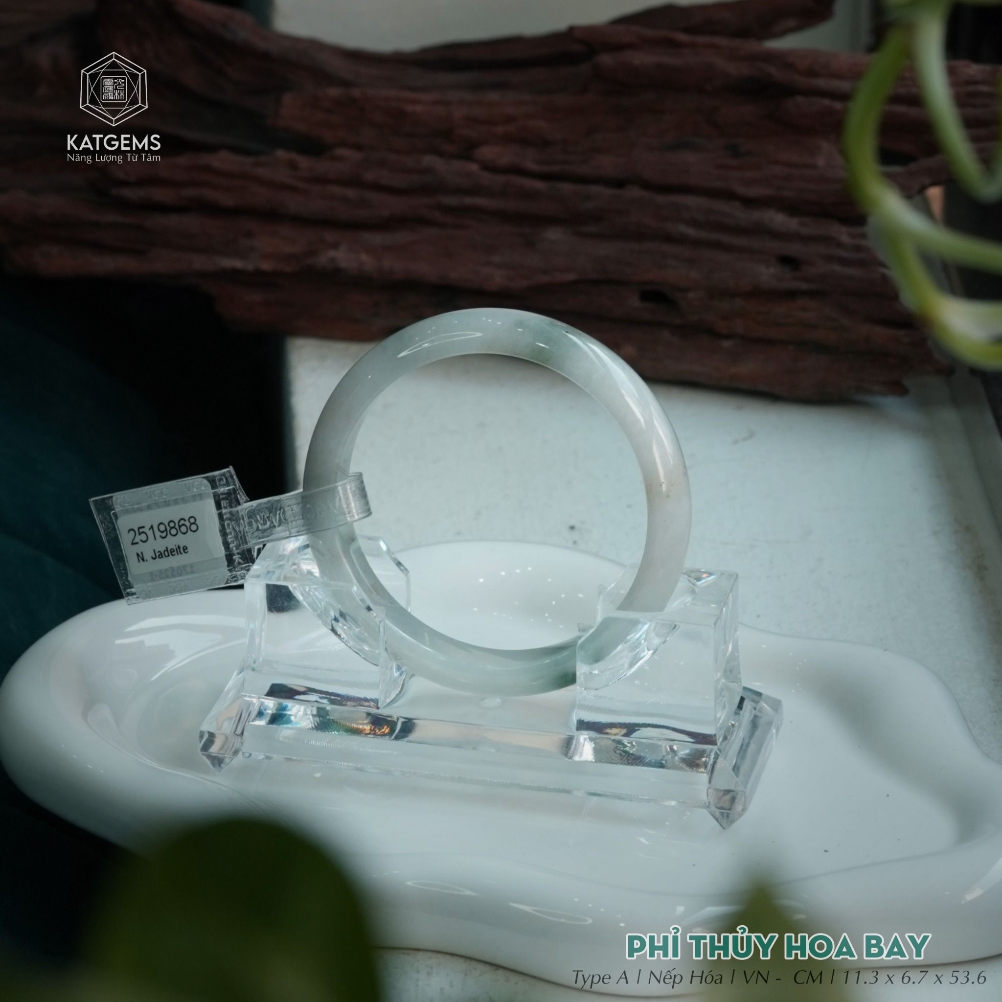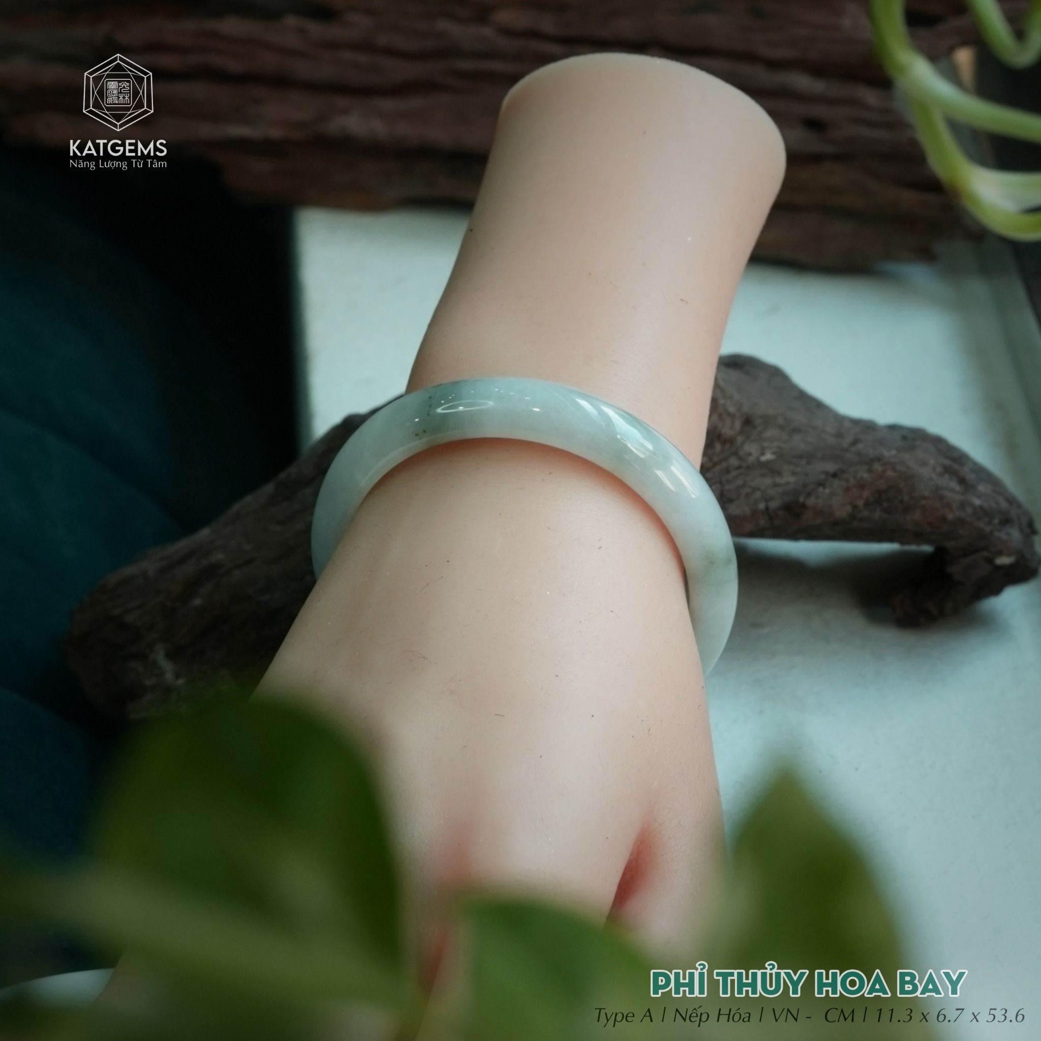 Vòng Khối Ngọc Phỉ Thúy Hoa Bay Cao Cấp Bản Hẹ 11.3 x 6.7 x 53.6 (Không Kén Mệnh) 2519868