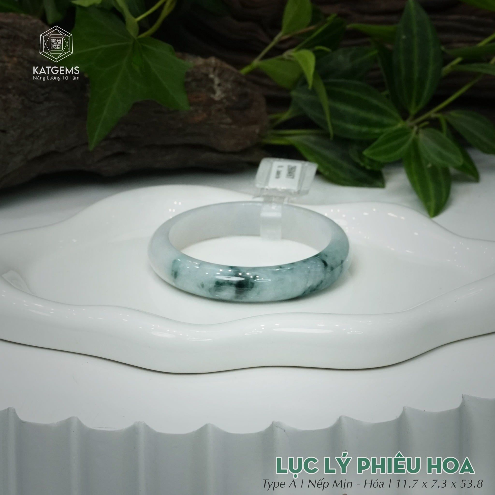 Vòng Khối Ngọc Phỉ Thúy Jade A Lục Lý Phiêu Hoa Cao Cấp Bản Hẹ 11.7 x 7.3 x 53.8 (Không Kén Mệnh) 260461