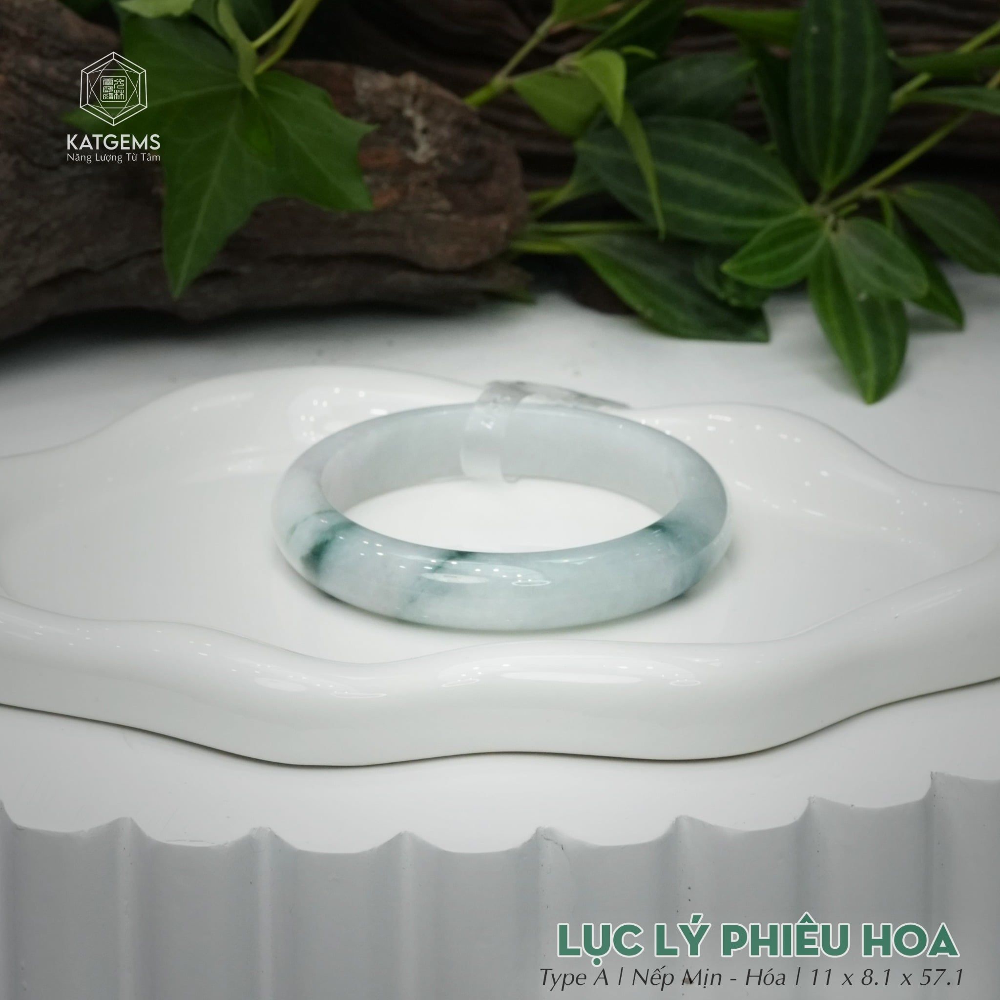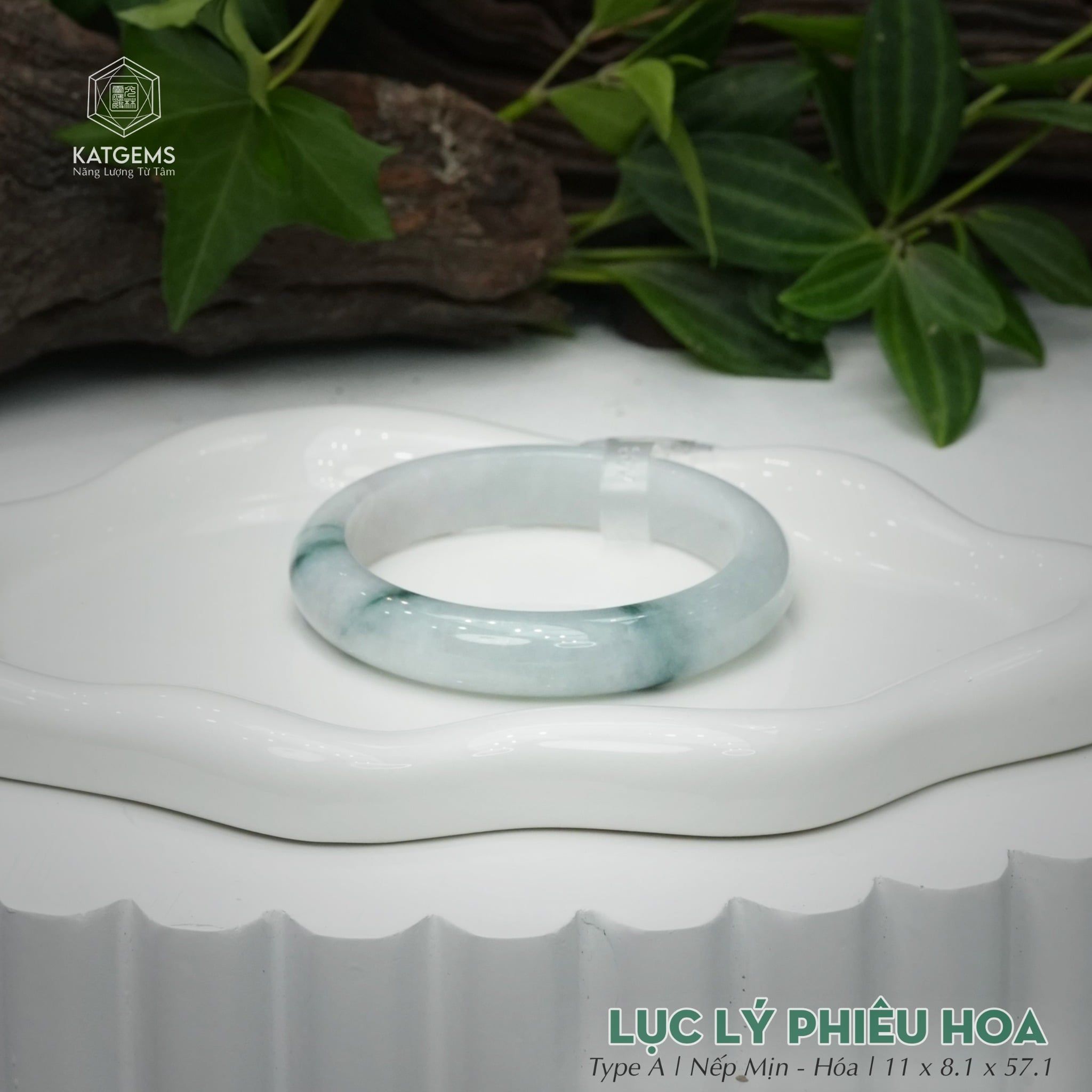 Vòng Khối Ngọc Phỉ Thúy Jade A Lục Lý Phiêu Hoa Cao Cấp Bản Hẹ 11 x 8.1 x 57.1 (Không Kén Mệnh) 260468