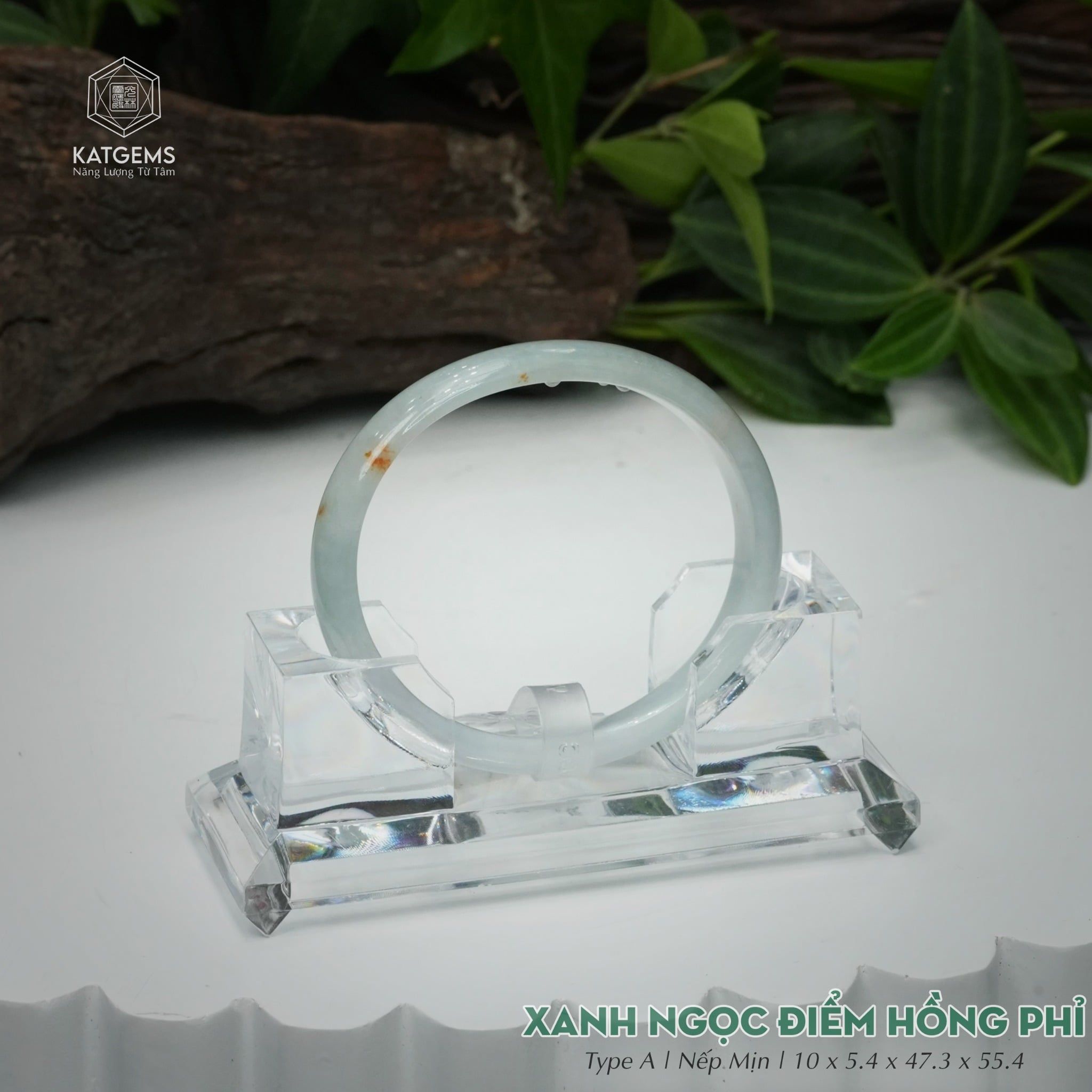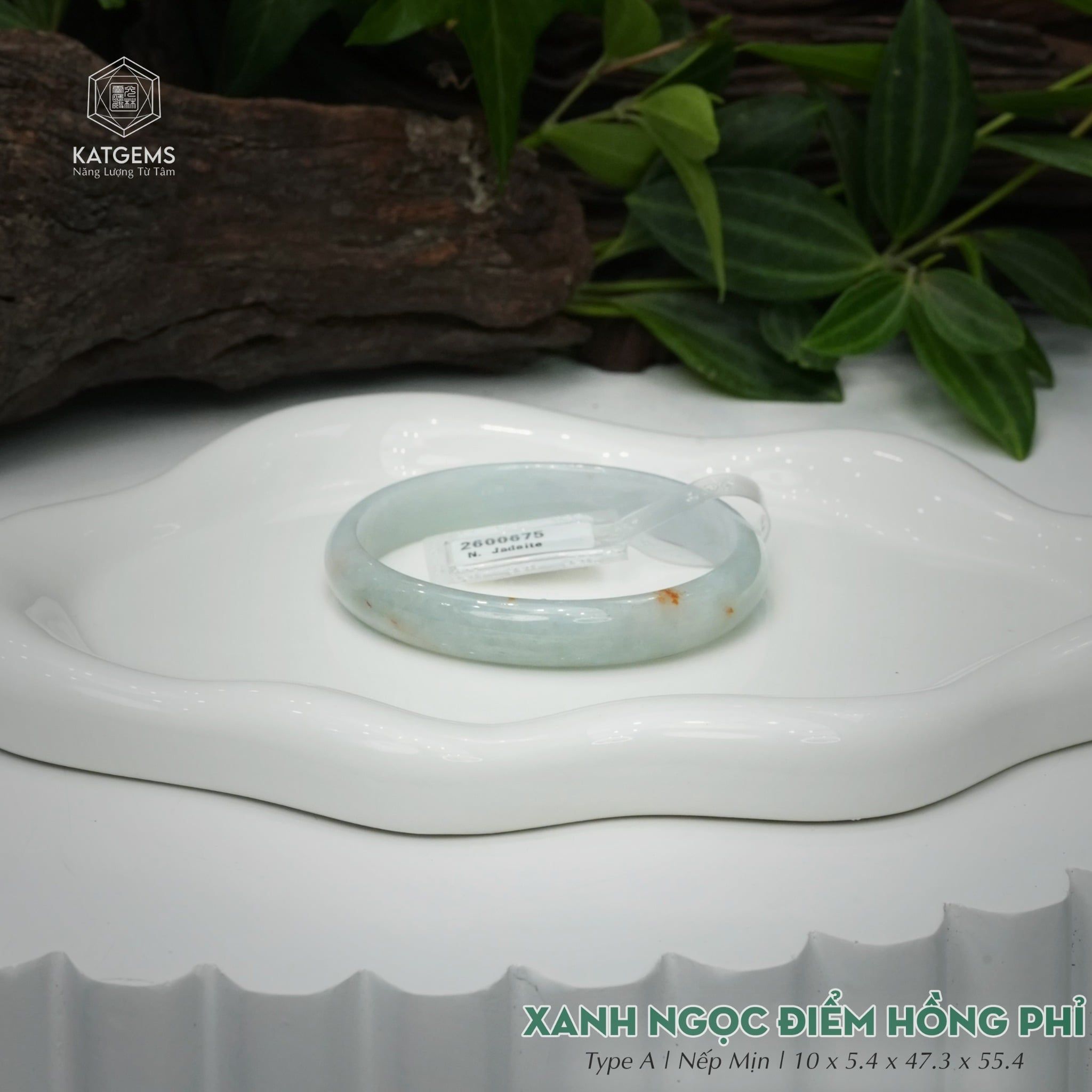 Vòng Khối Ngọc Phỉ Thúy Jade A Xanh Ngọc Điểm Hồng Phỉ Cao Cấp Bản Hẹ 10 x 5.4 x 47.3 x 55.4 (Không Kén Mệnh) 2600675