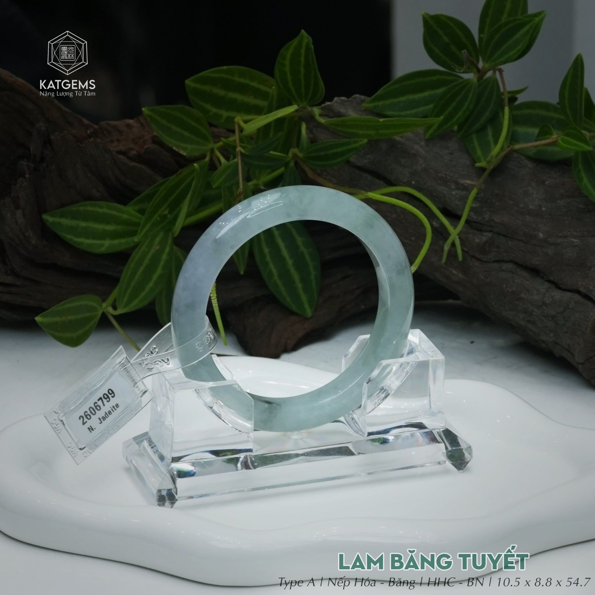 Vòng Khối Ngọc Phỉ Thúy Lam Băng Tuyết Cao Cấp Bản Hẹ 10.5 x 8.8 x 54.7 (Không Kén Mệnh) 2606799