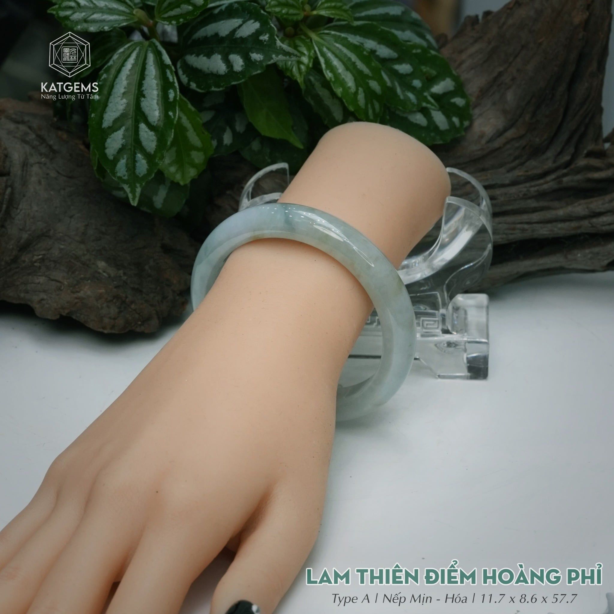 Vòng Khối Ngọc Phỉ Thúy Lam Thiên Điểm Hoàng Phỉ Cao Cấp Bản Hẹ 11.7 x 8.6 x 57.7 (Không Kén Mệnh) 260748