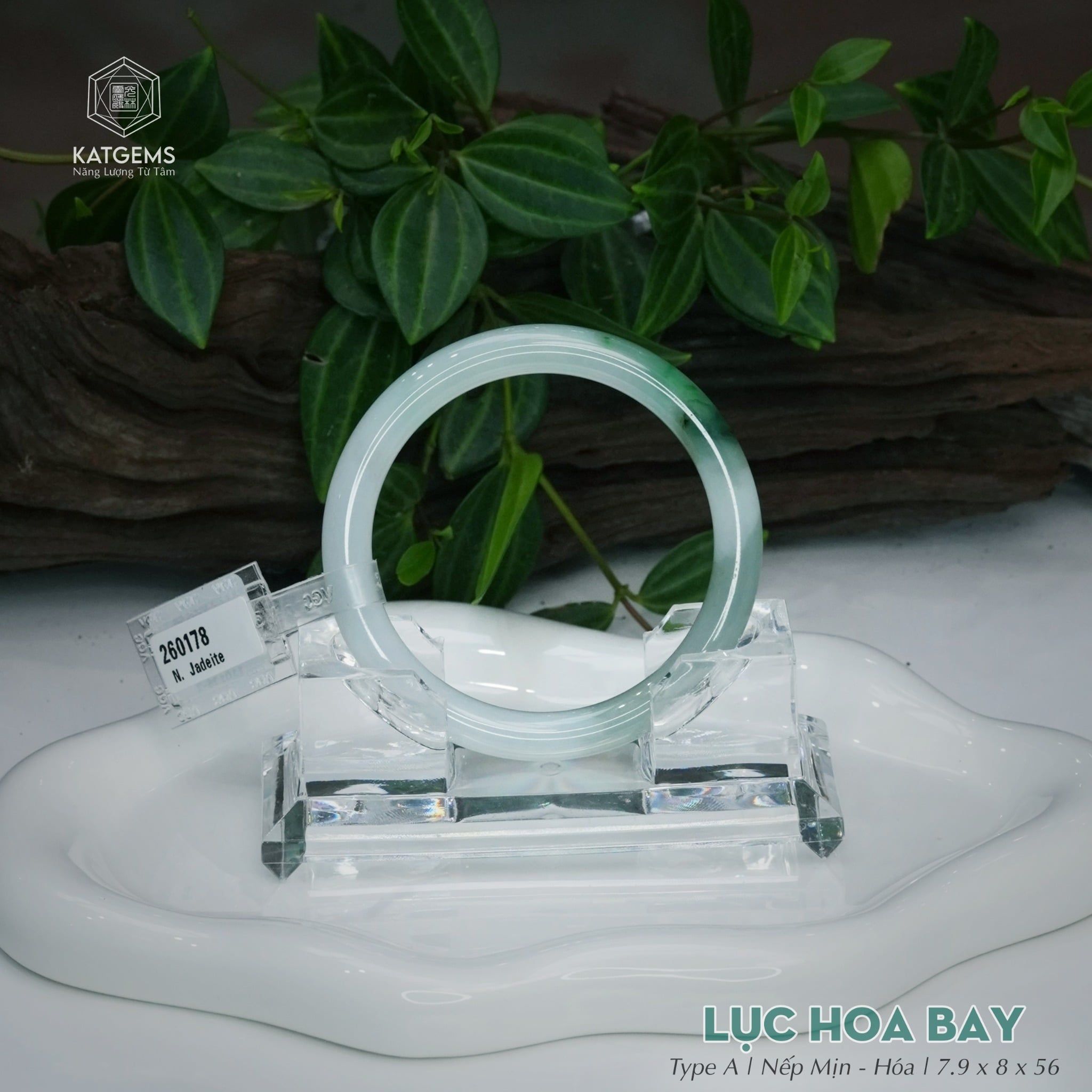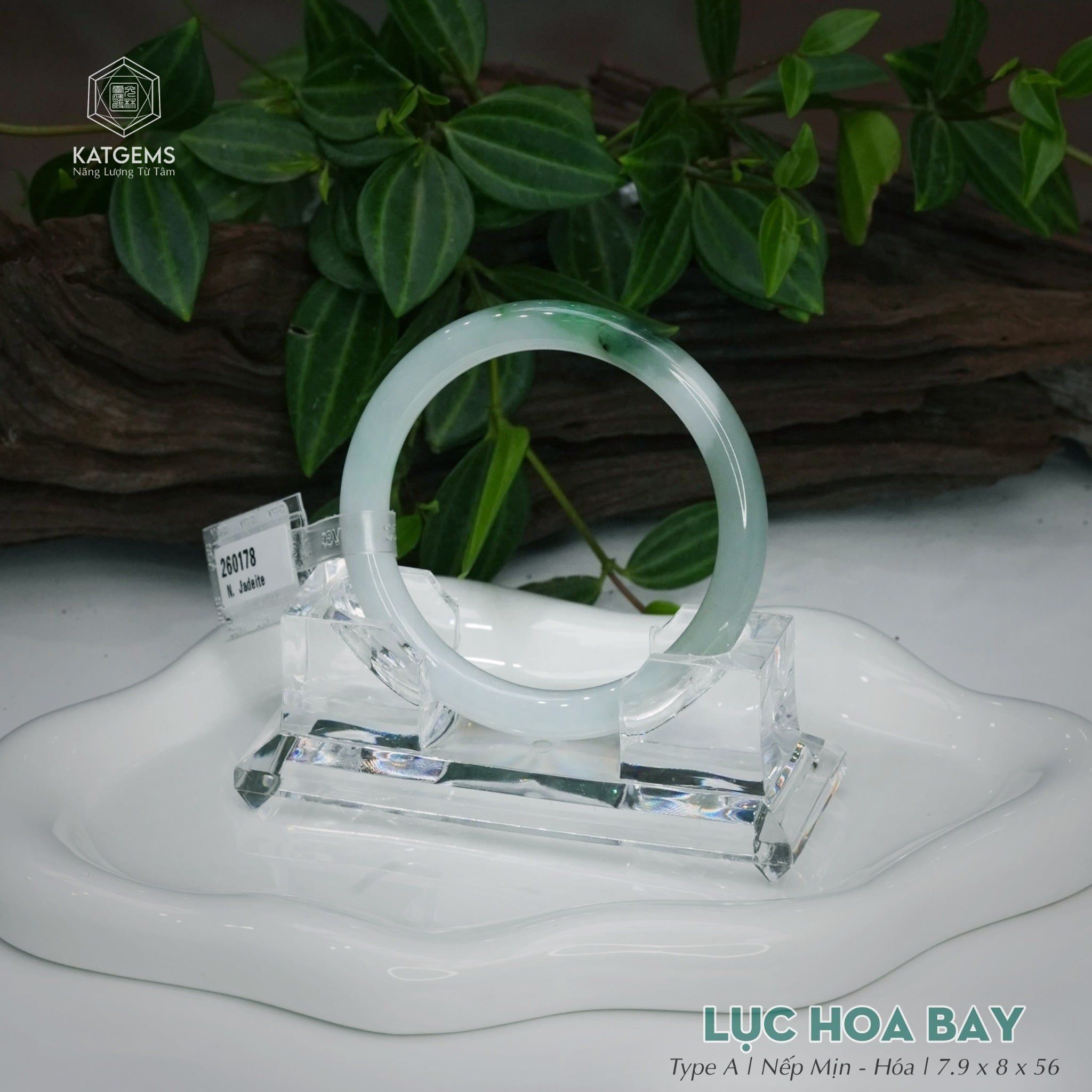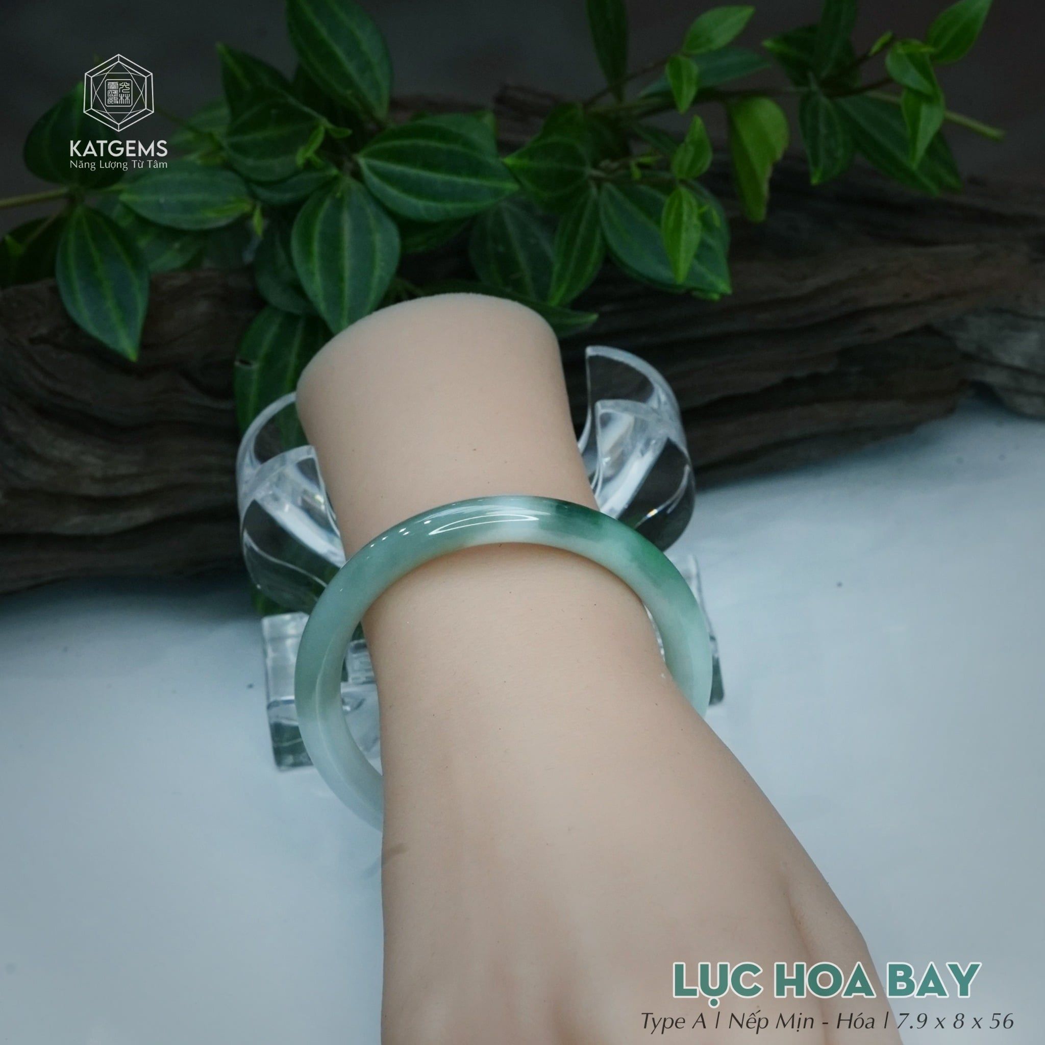 Vòng Khối Ngọc Phỉ Thúy Lục Hoa Bay Cao Cấp Bản Đũa 7.9 x 8 x 56 (Không Kén Mệnh) 260178