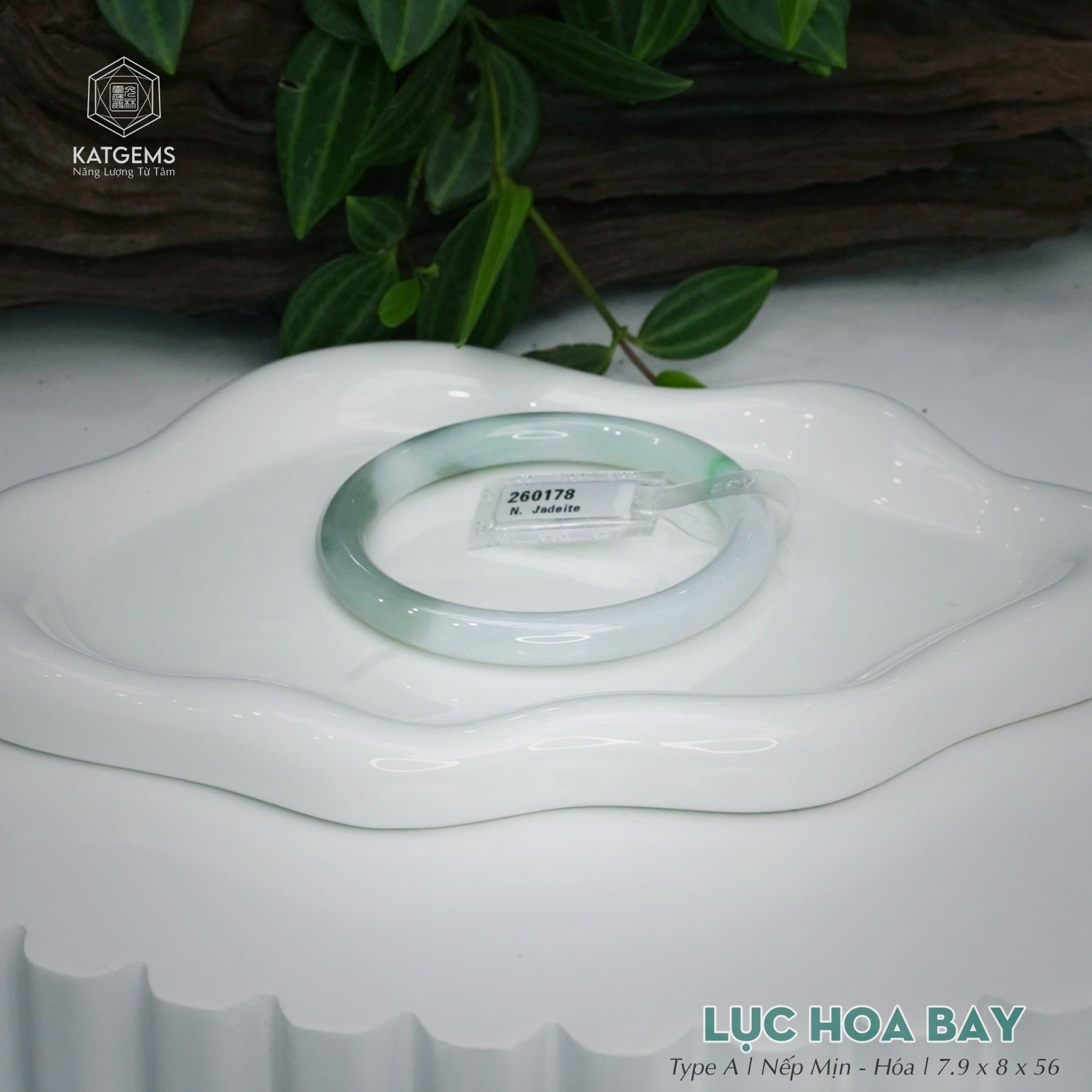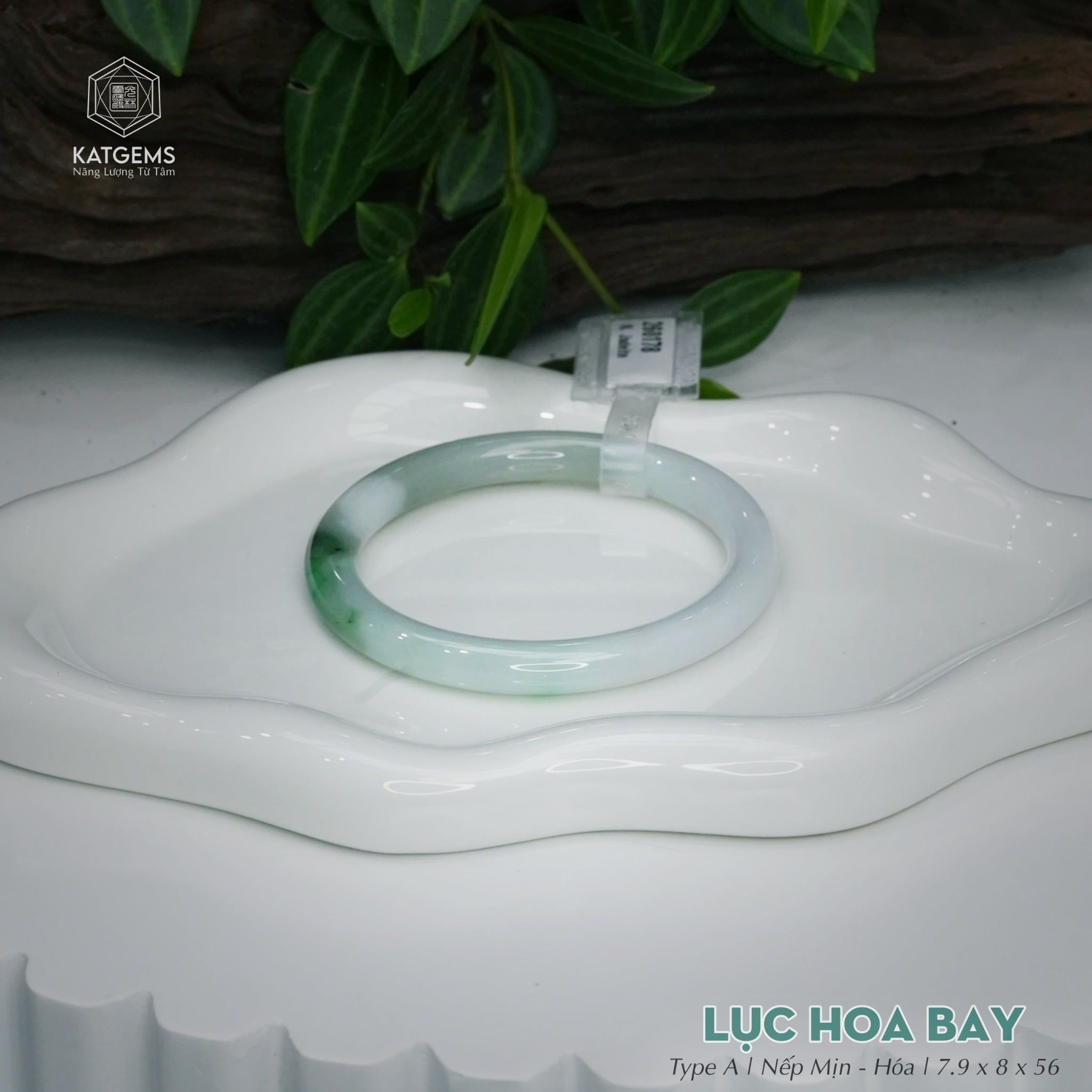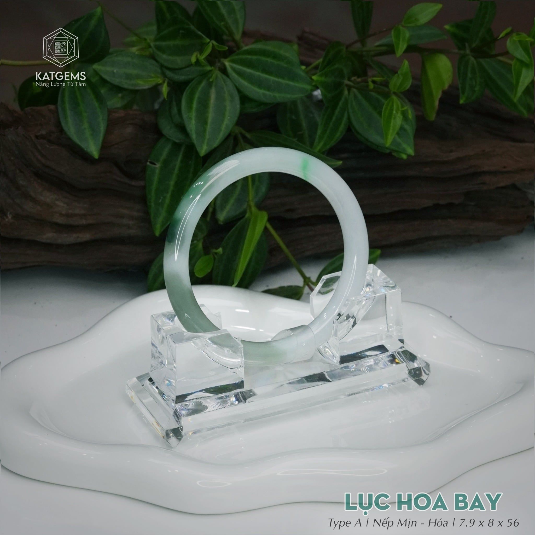 Vòng Khối Ngọc Phỉ Thúy Lục Hoa Bay Cao Cấp Bản Đũa 7.9 x 8 x 56 (Không Kén Mệnh) 260178