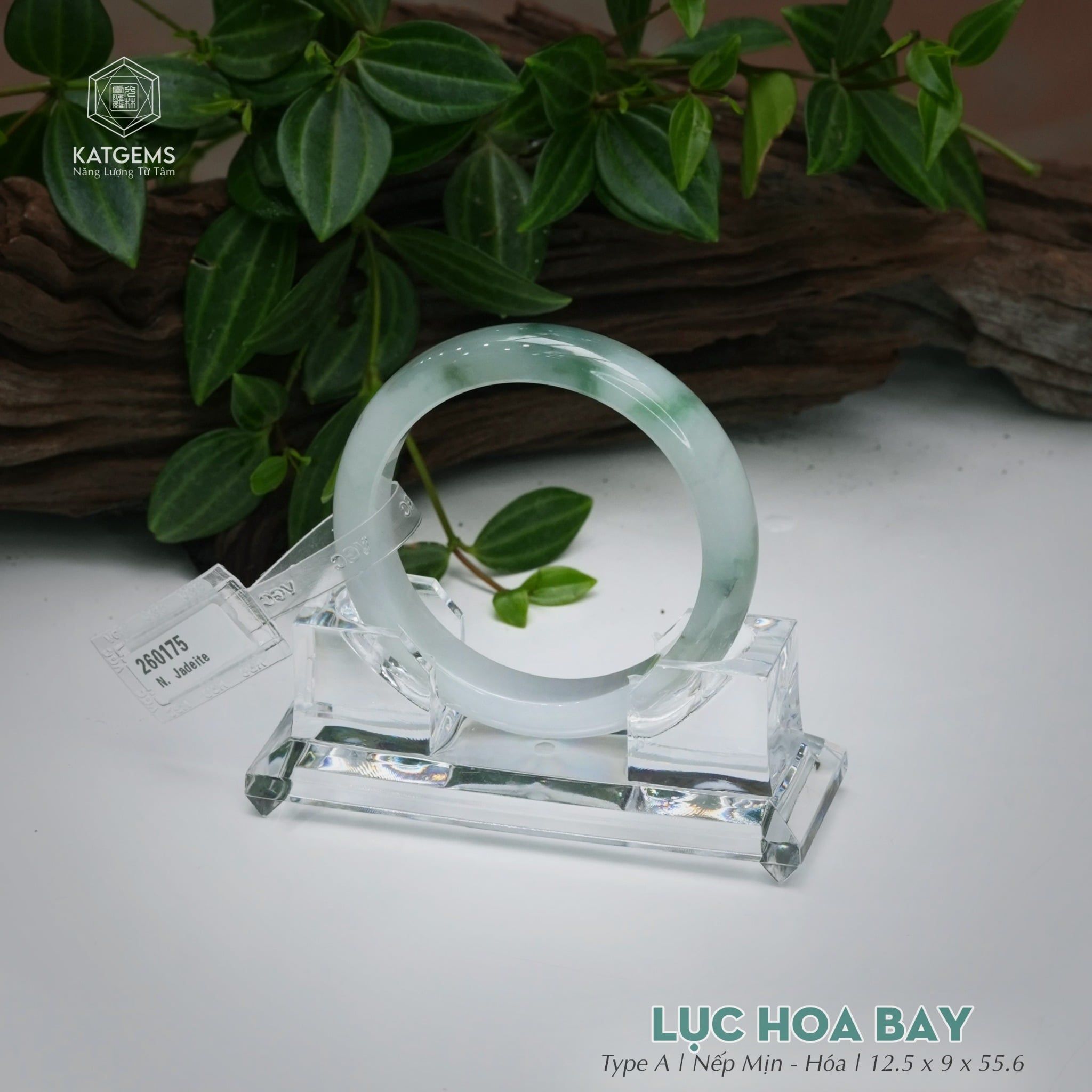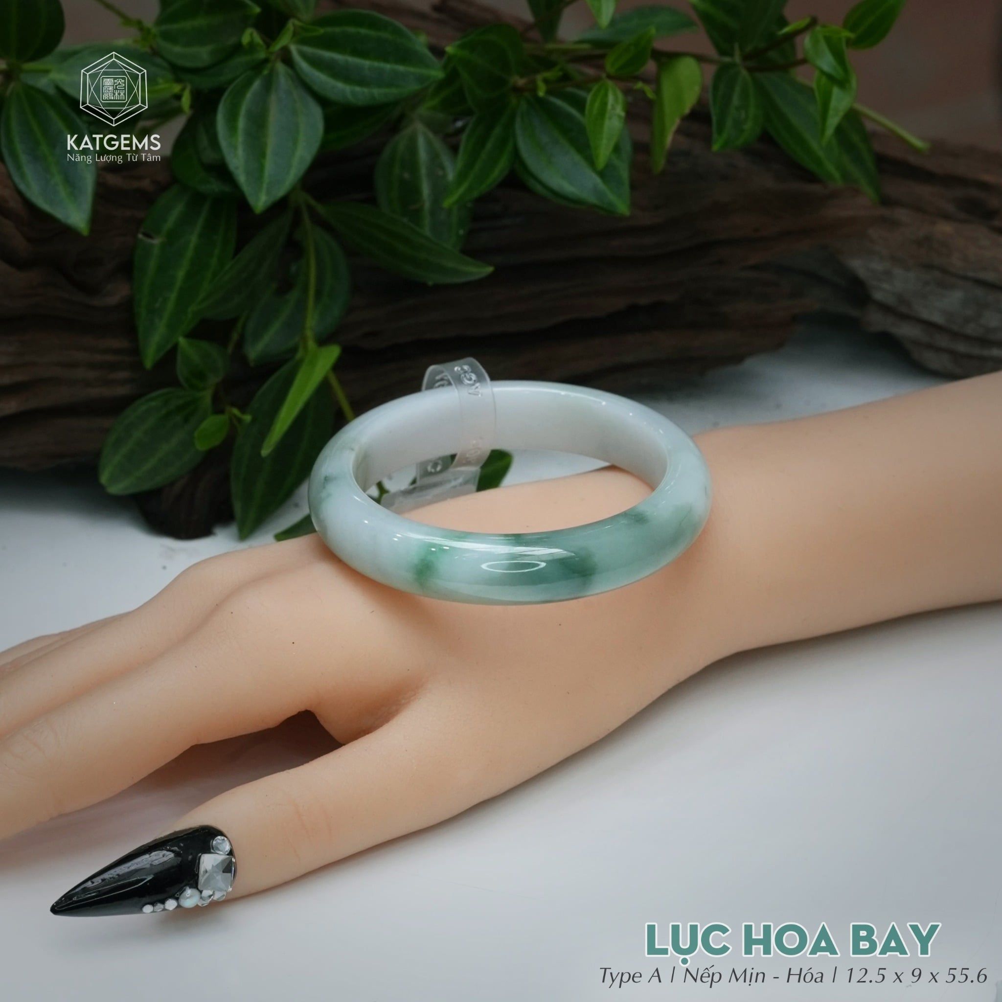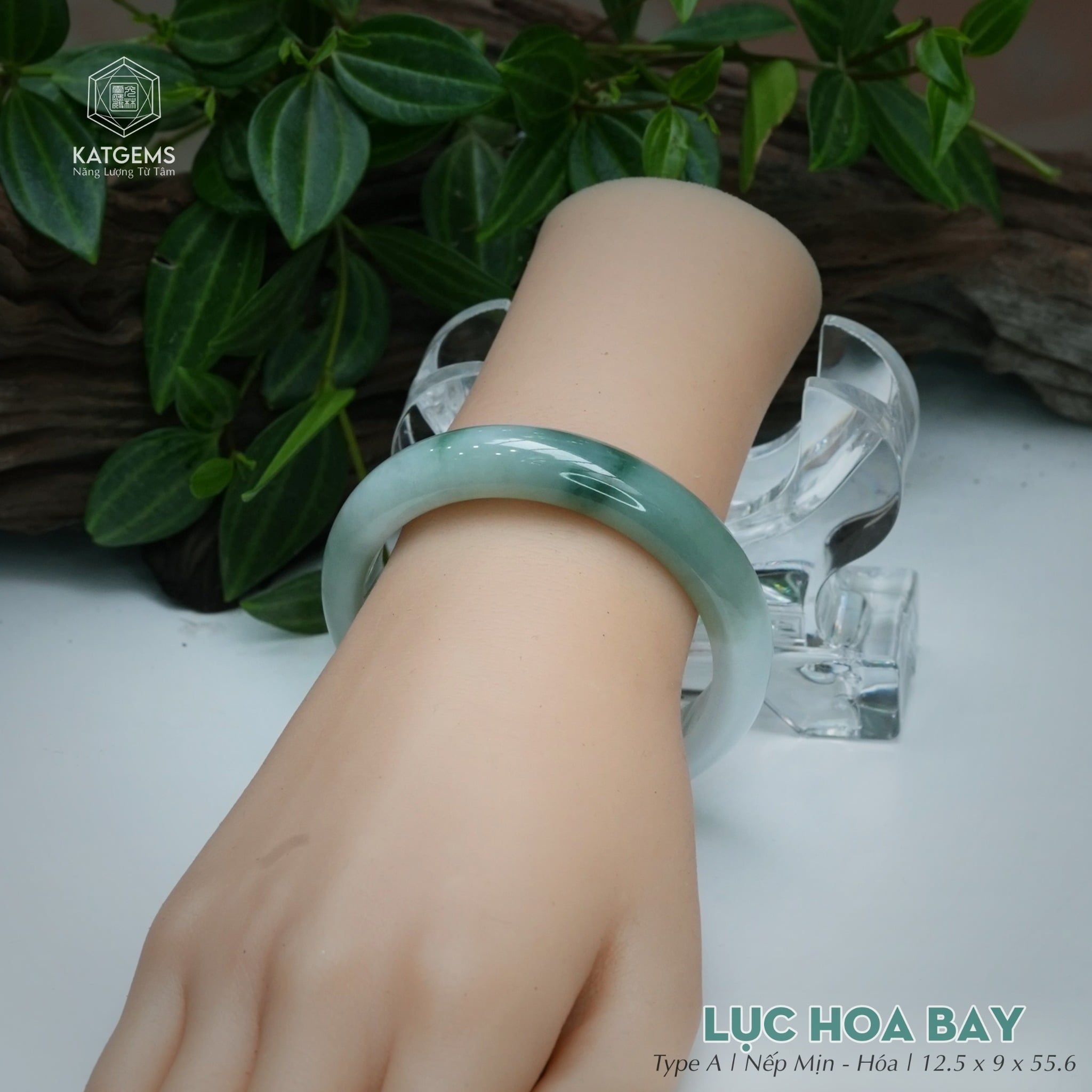 Vòng Khối Ngọc Phỉ Thúy Lục Hoa Bay Cao Cấp Bản Hẹ 12.5 x 9 x 55.6 (Không Kén Mệnh) 260175