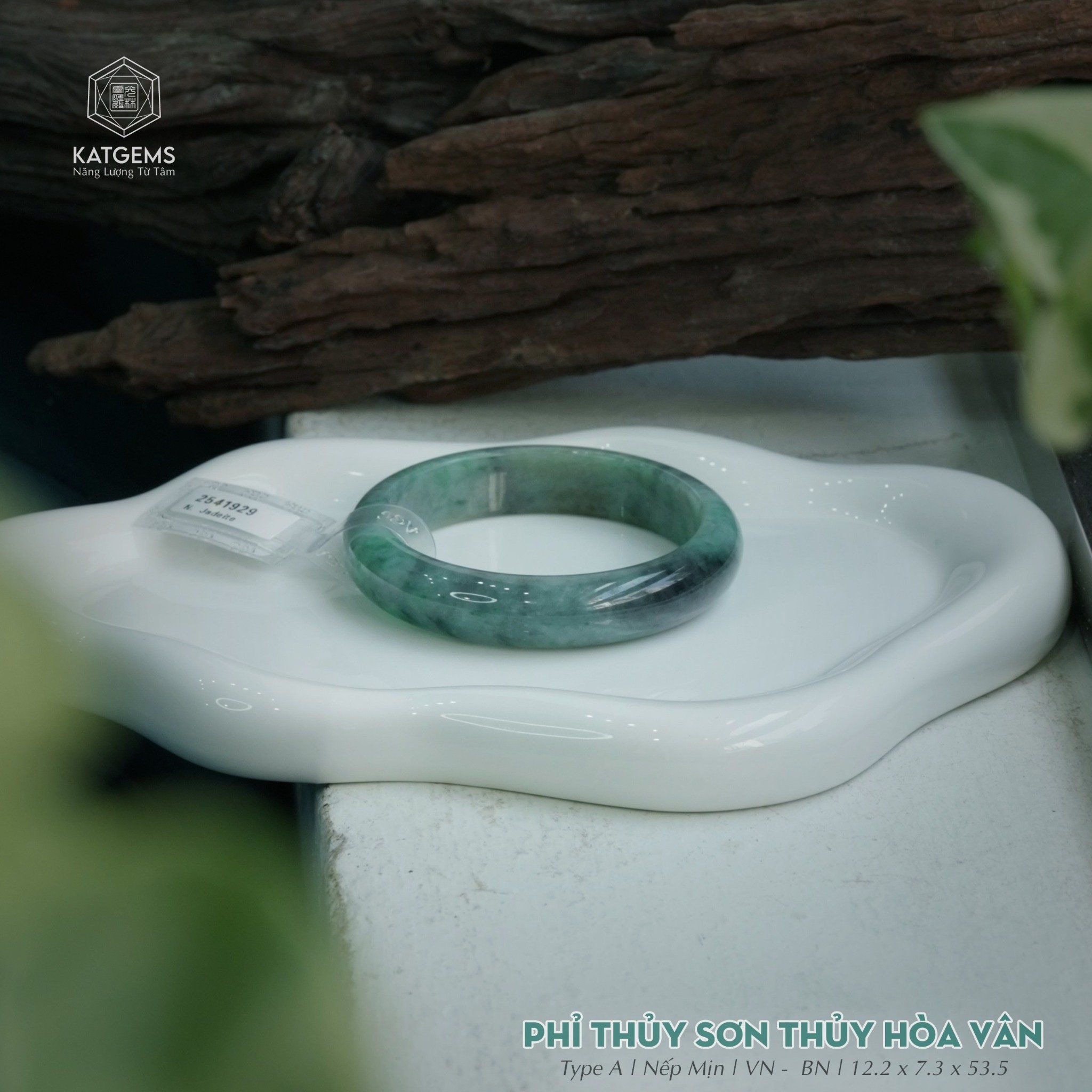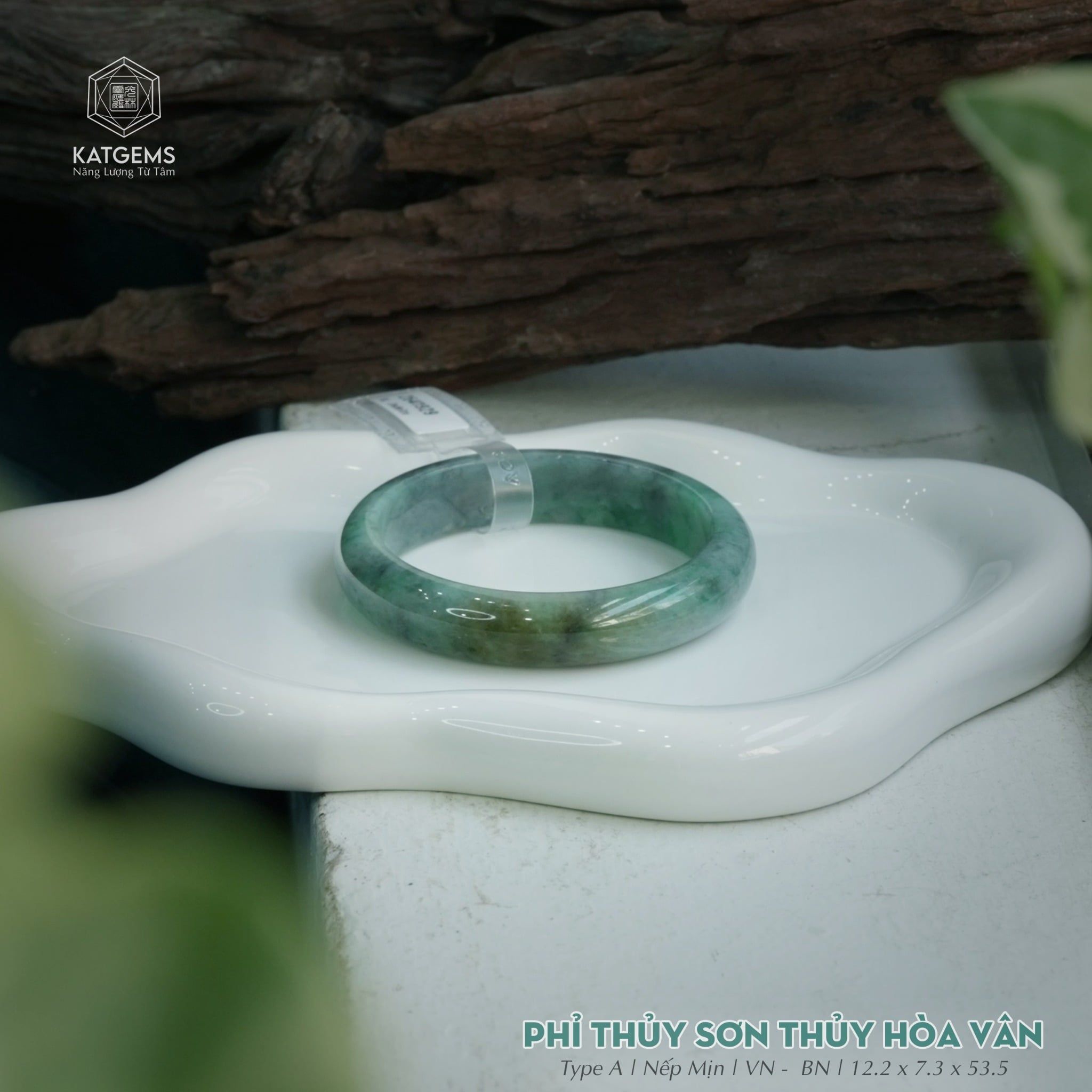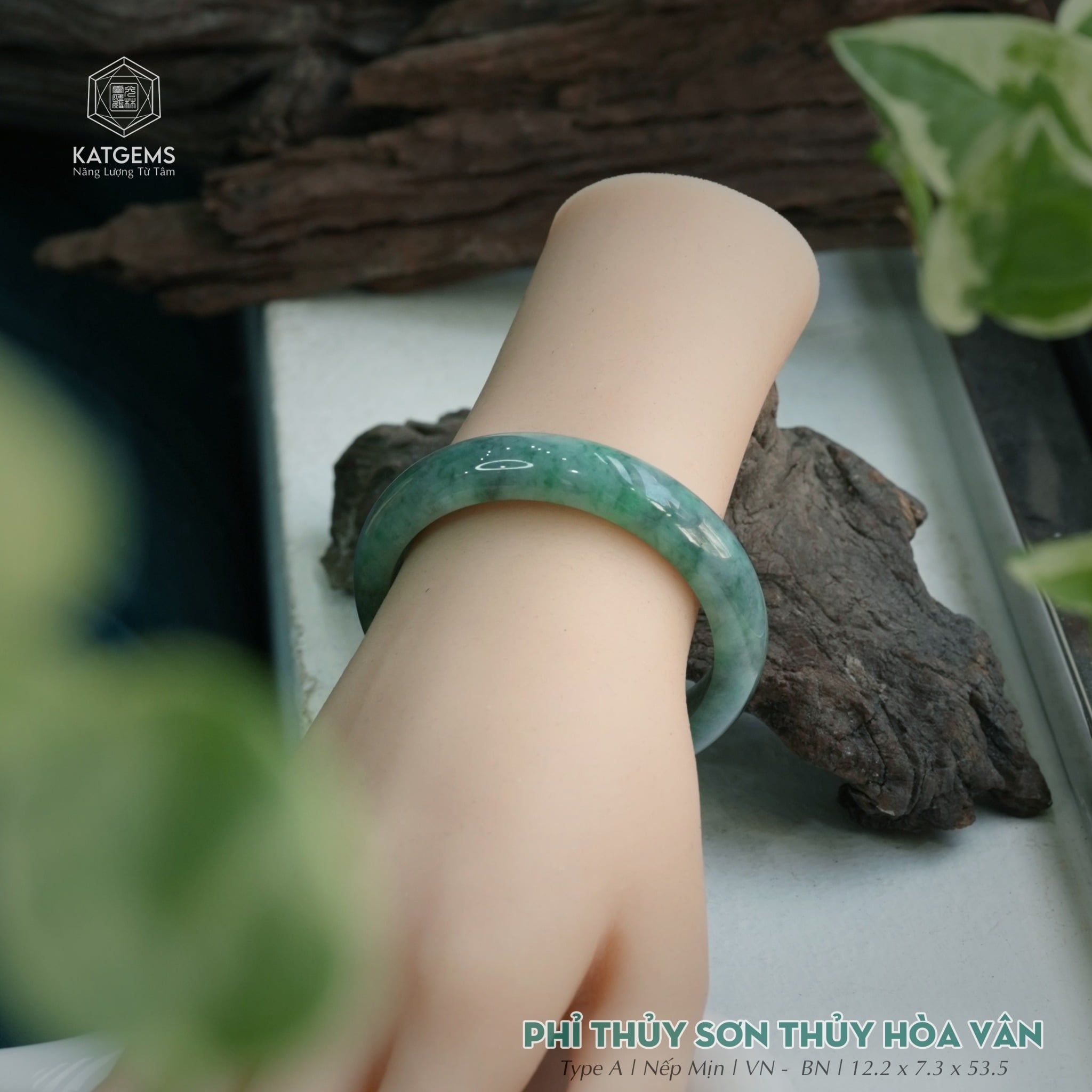 Vòng Khối Ngọc Phỉ Thúy Sơn Thủy Hòa Vân Cao Cấp Bản Hẹ 12.2 x 7.3 x 53.5 (Không Kén Mệnh) 2541929