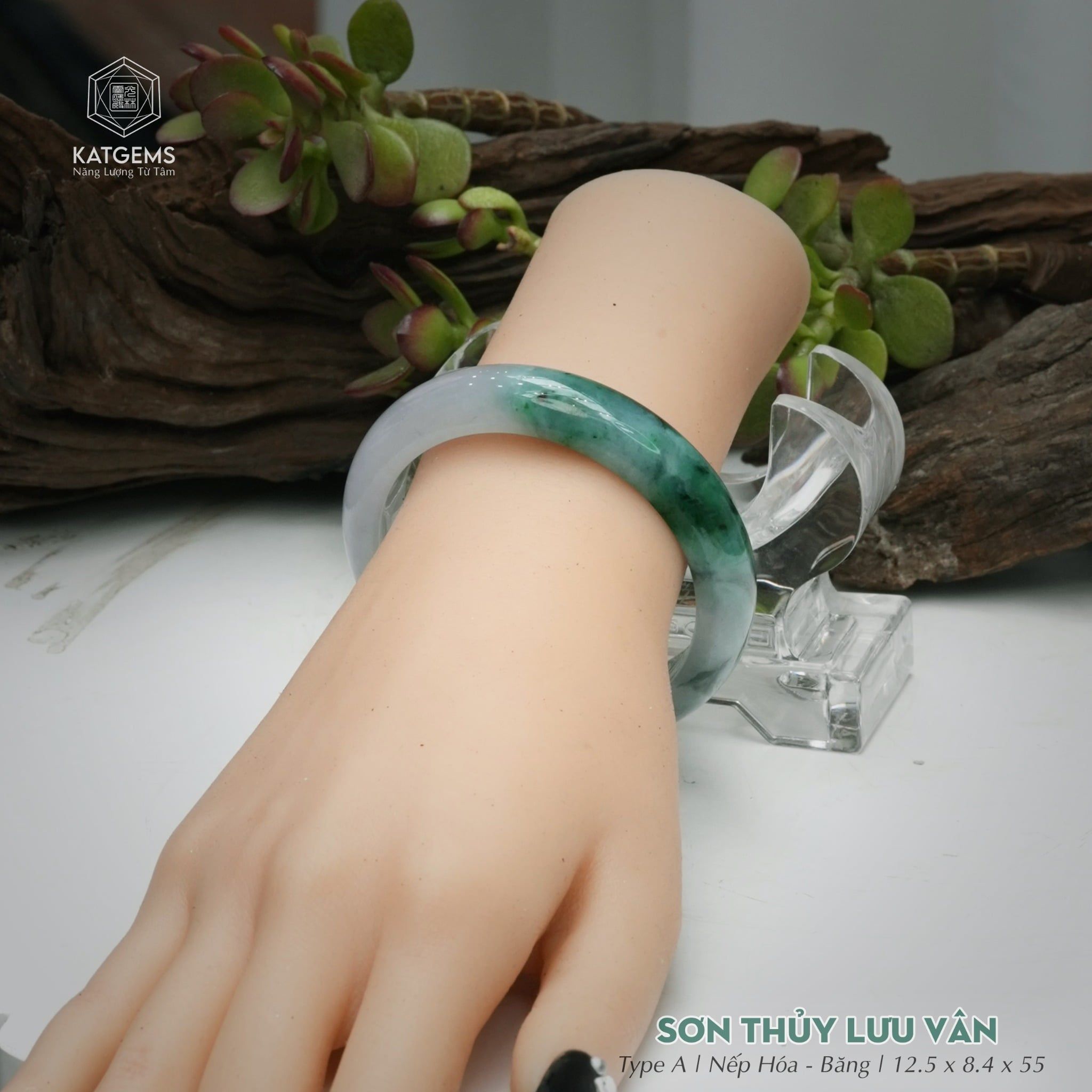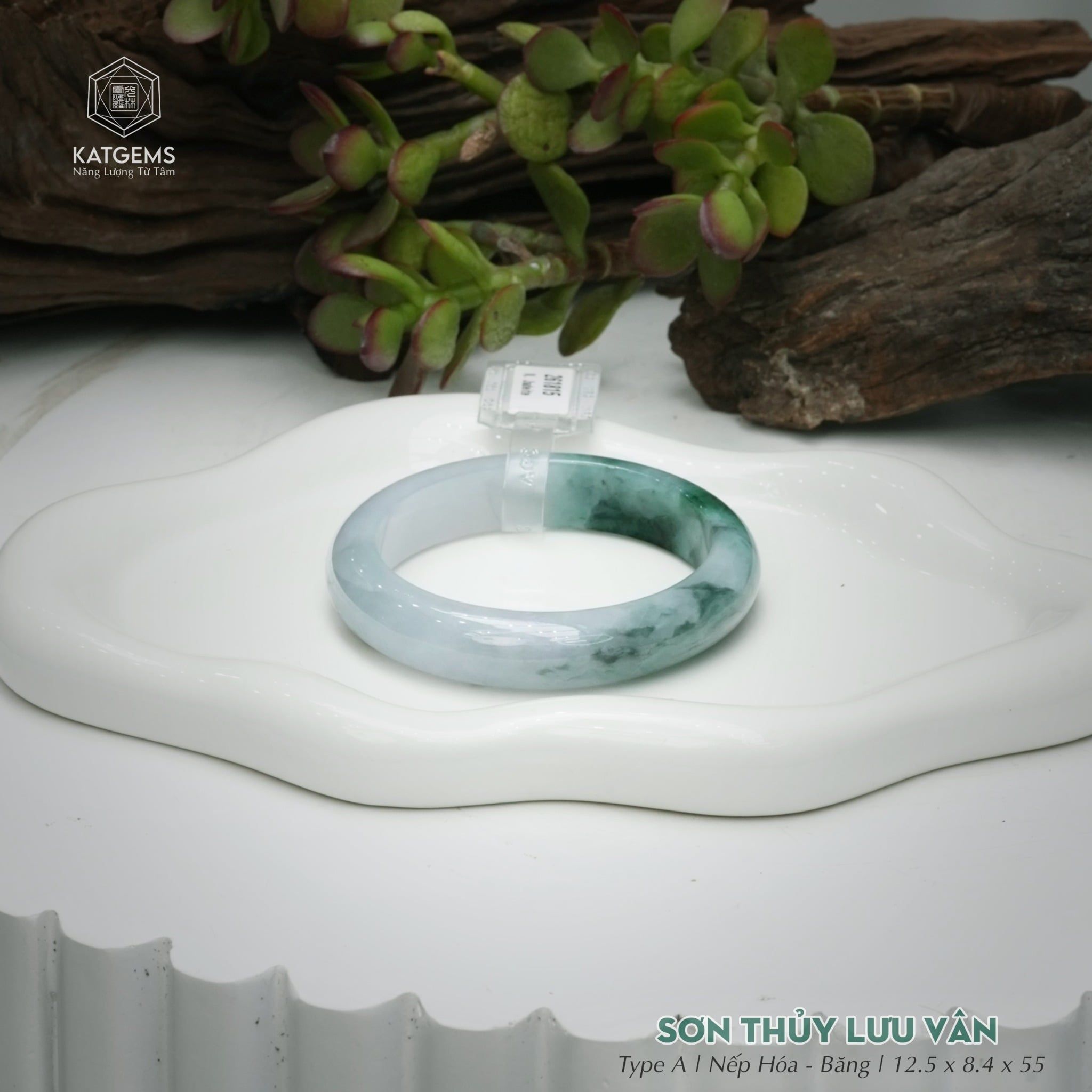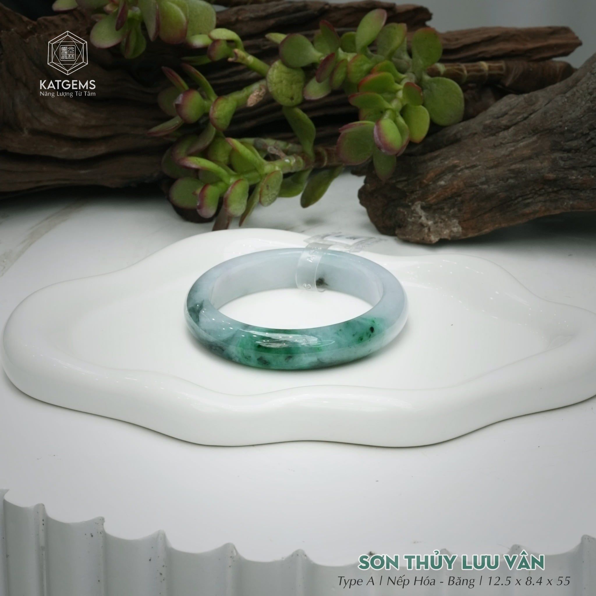 Vòng Khối Ngọc Phỉ Thúy Sơn Thủy Lưu Vân Cao Cấp Bản Hẹ KT: 12.5 x 8.4 x 55 (Không Kén Mệnh) 261815