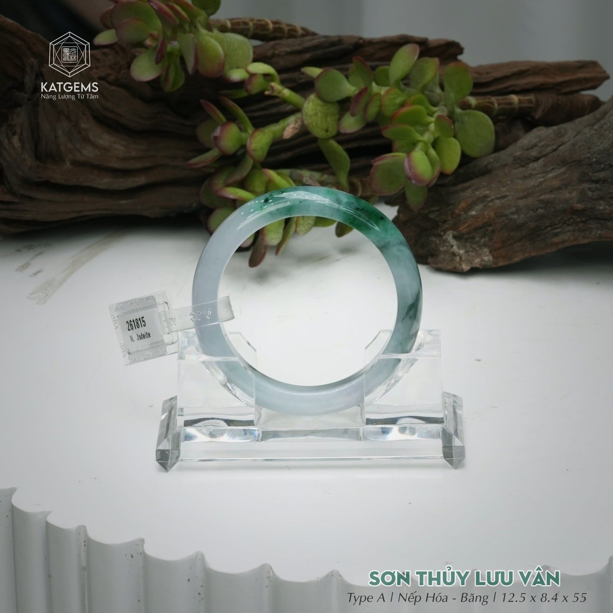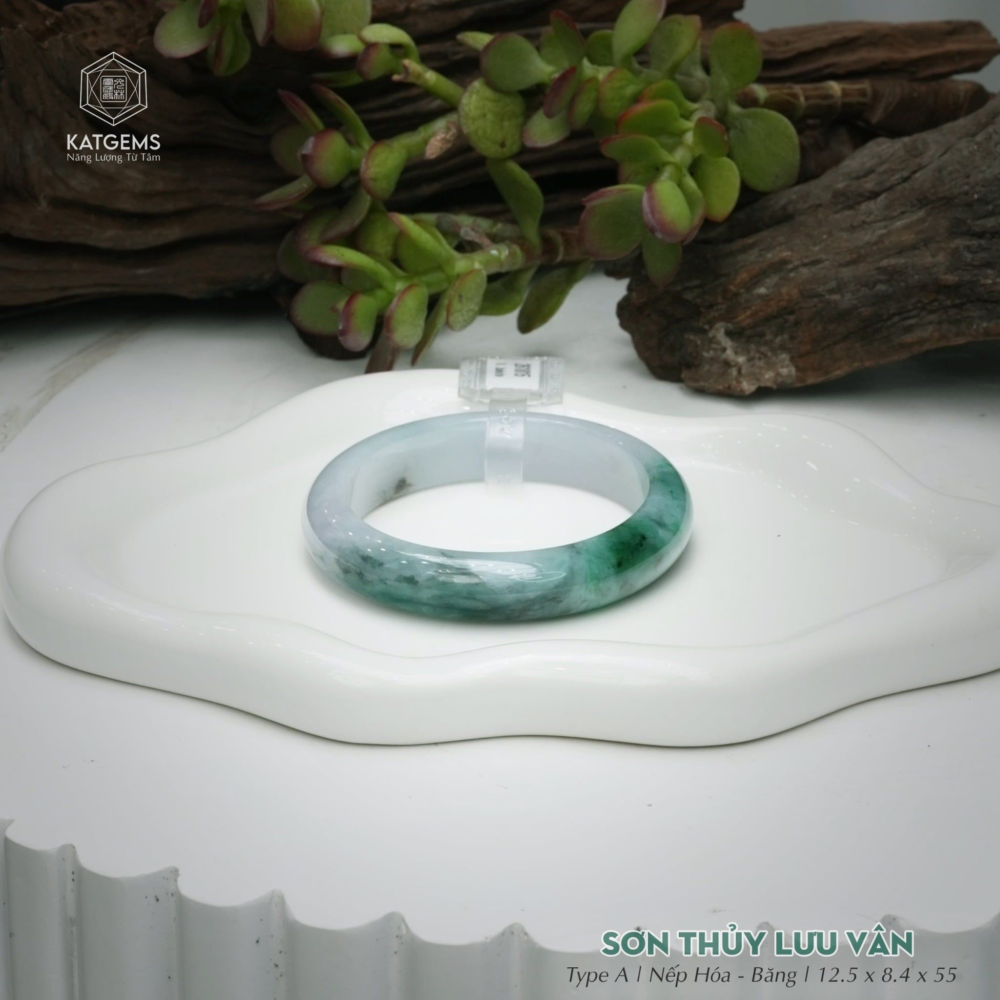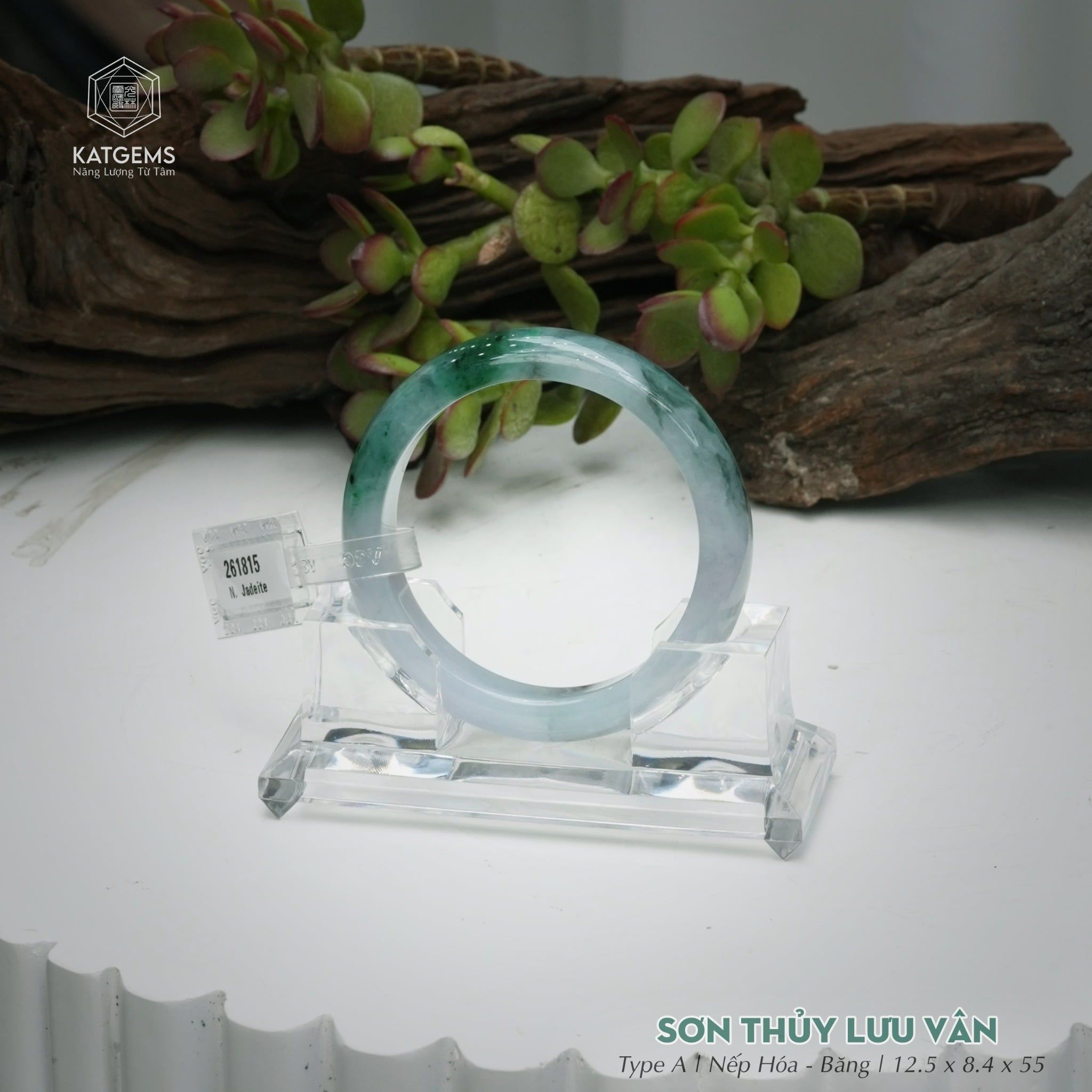 Vòng Khối Ngọc Phỉ Thúy Sơn Thủy Lưu Vân Cao Cấp Bản Hẹ KT: 12.5 x 8.4 x 55 (Không Kén Mệnh) 261815