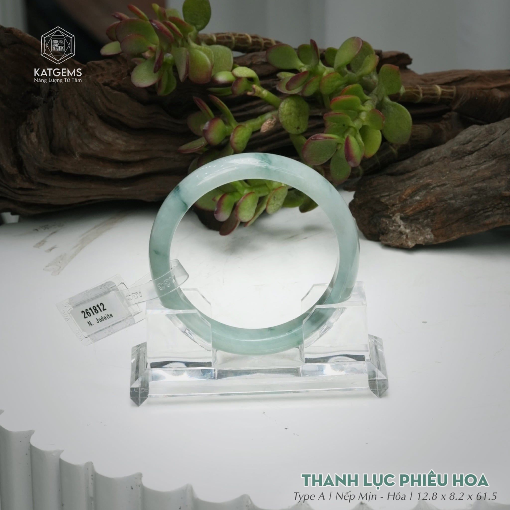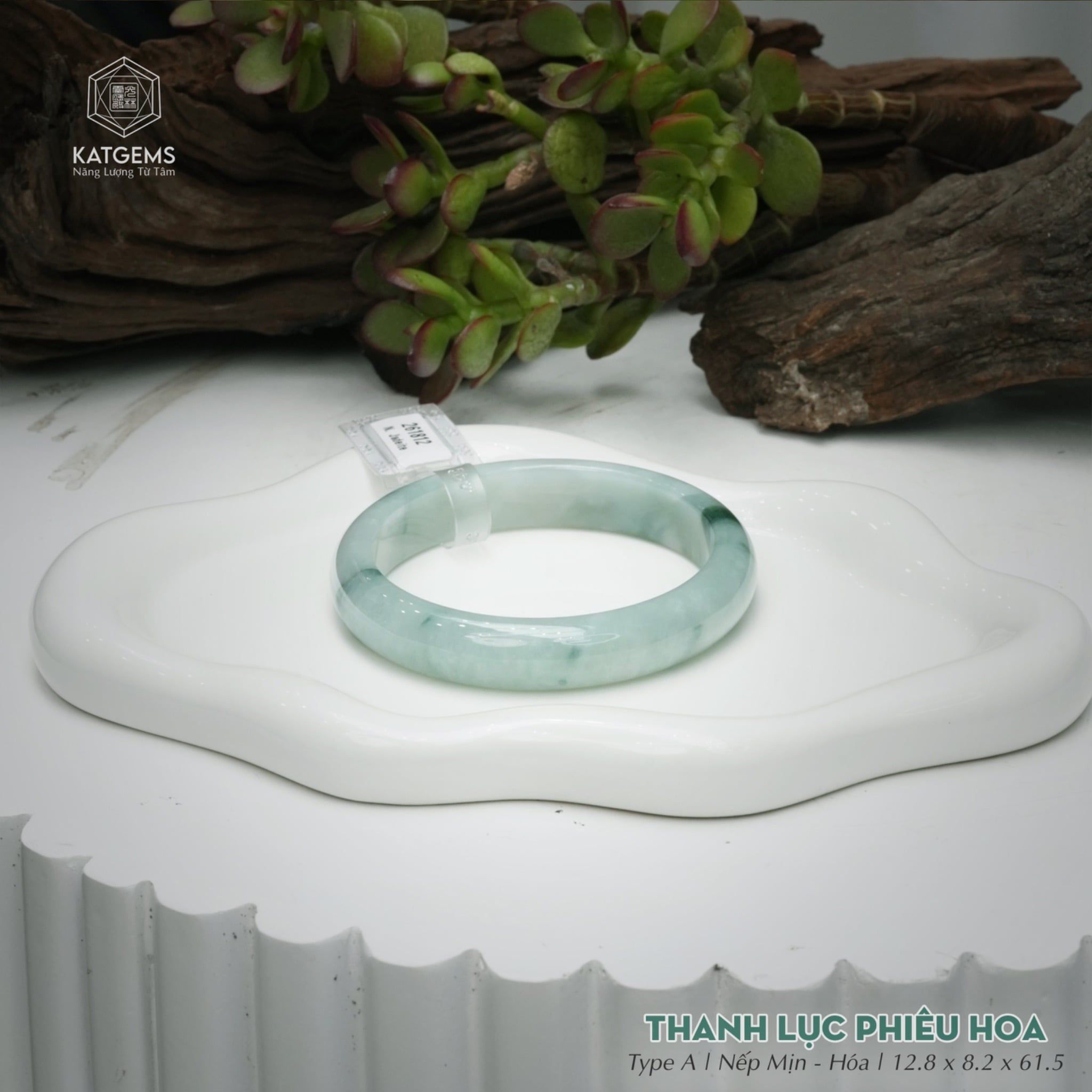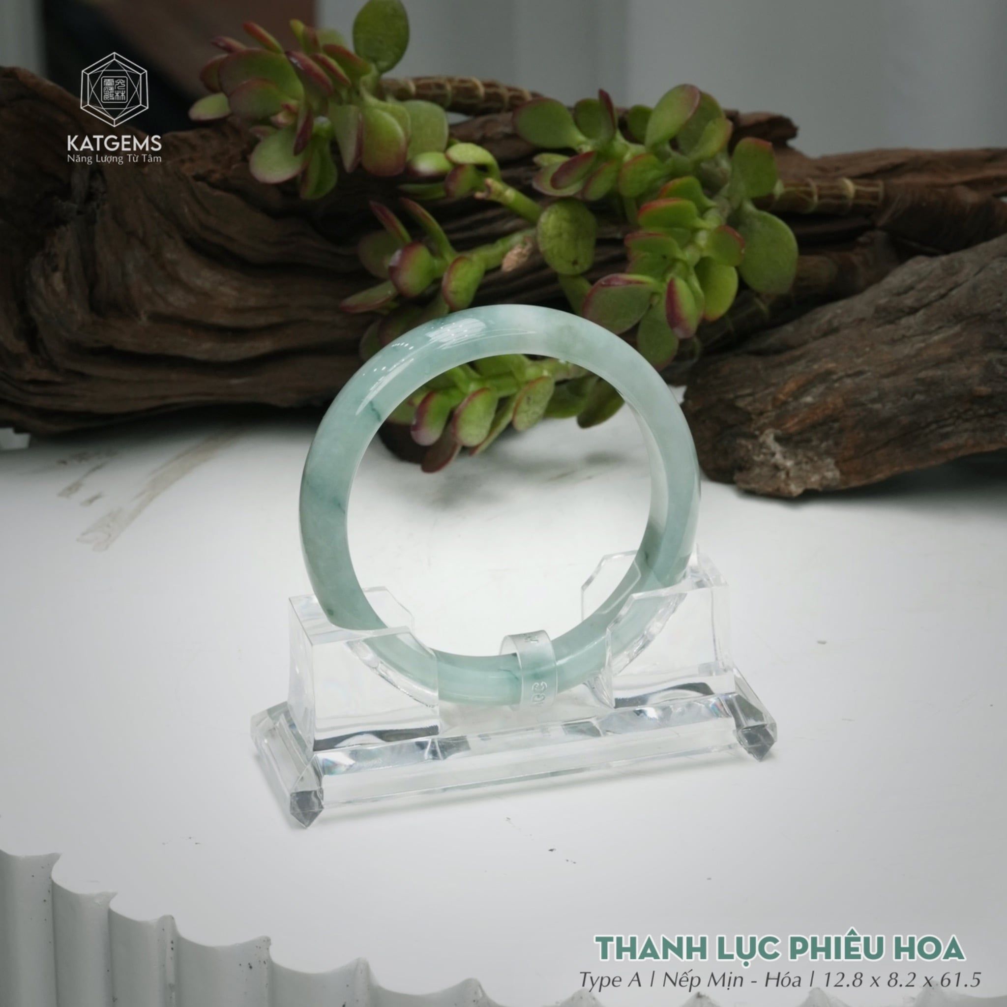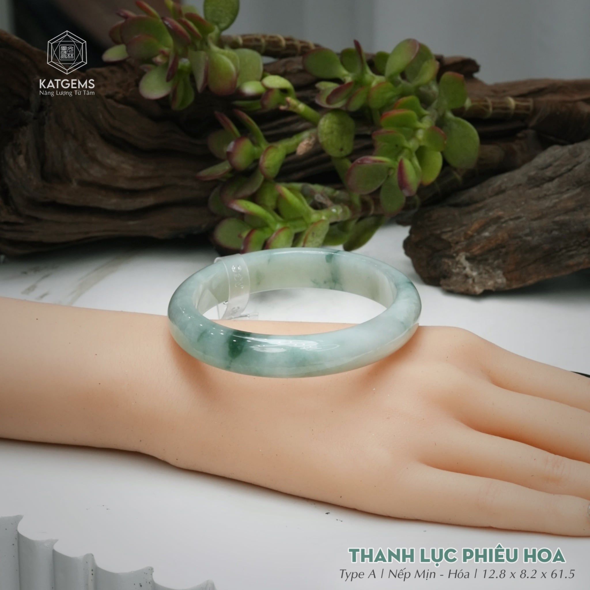 Vòng Khối Ngọc Phỉ Thúy Thanh Lục Phiêu Hoa Cao Cấp Bản Hẹ KT: 12.8 x 8.2 x 61.5 (Không Kén Mệnh) 261812