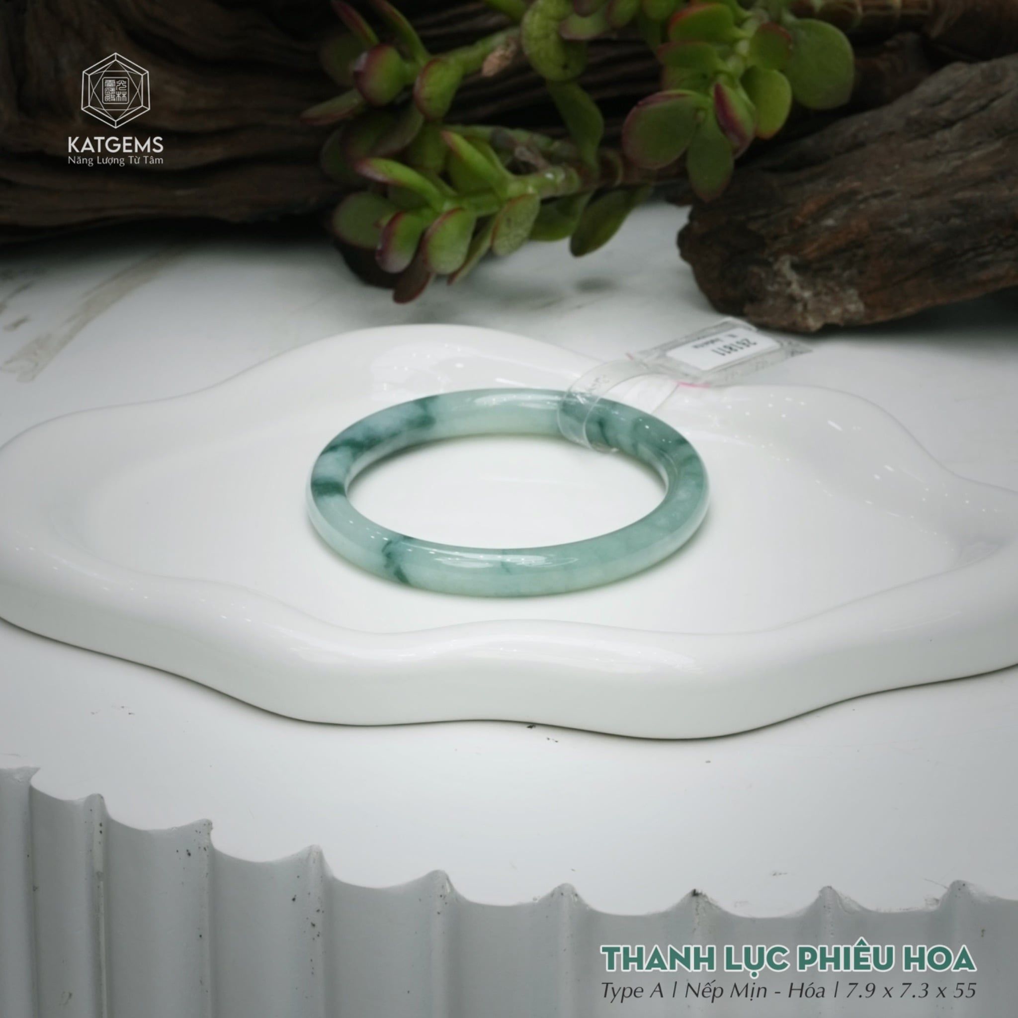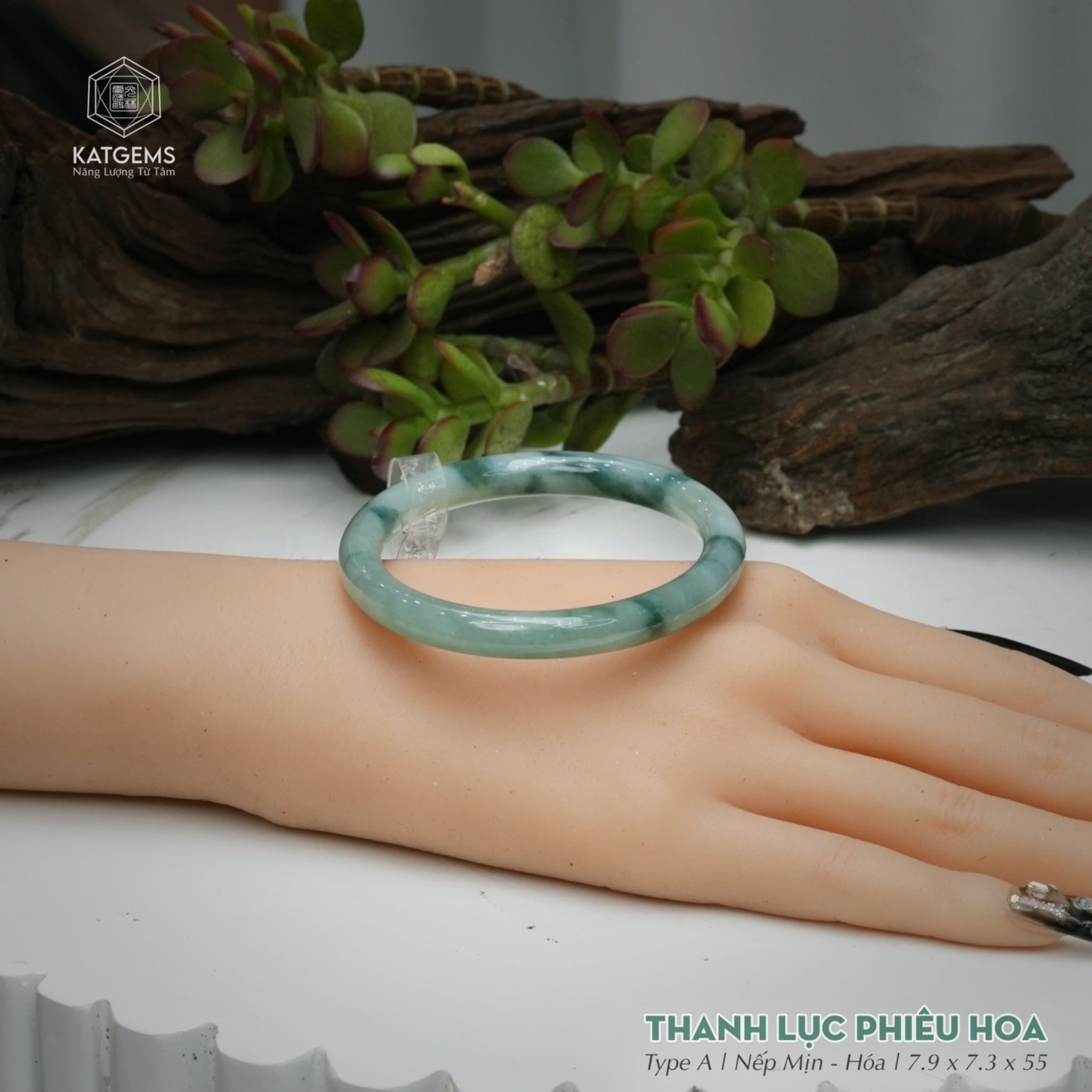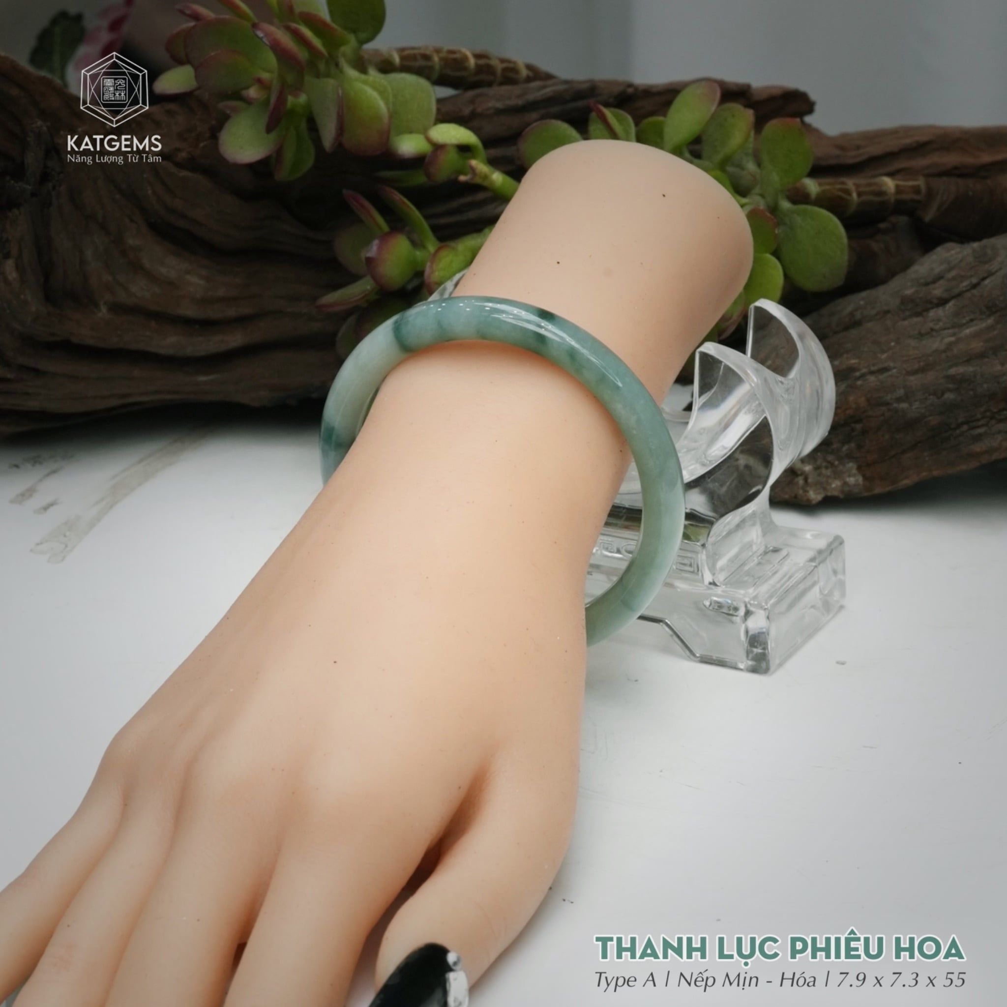 Vòng Khối Ngọc Phỉ Thúy Thanh Lục Phiêu Hoa Cao Cấp Bản Hẹ KT: 7.9 x 7.3 x 55 (Không Kén Mệnh) 261811