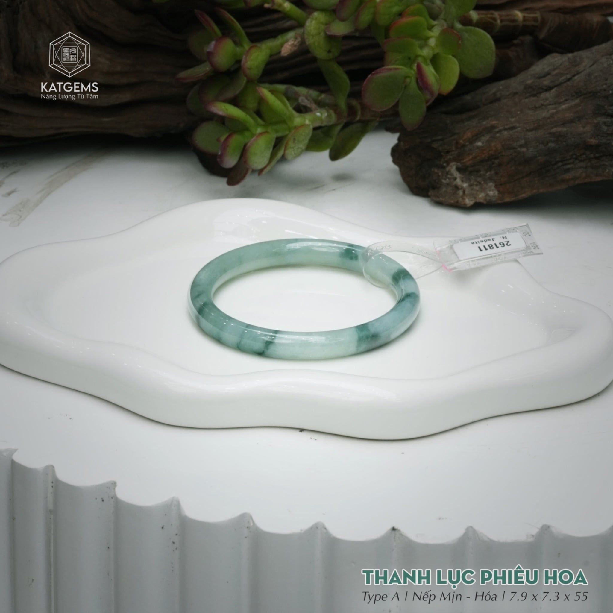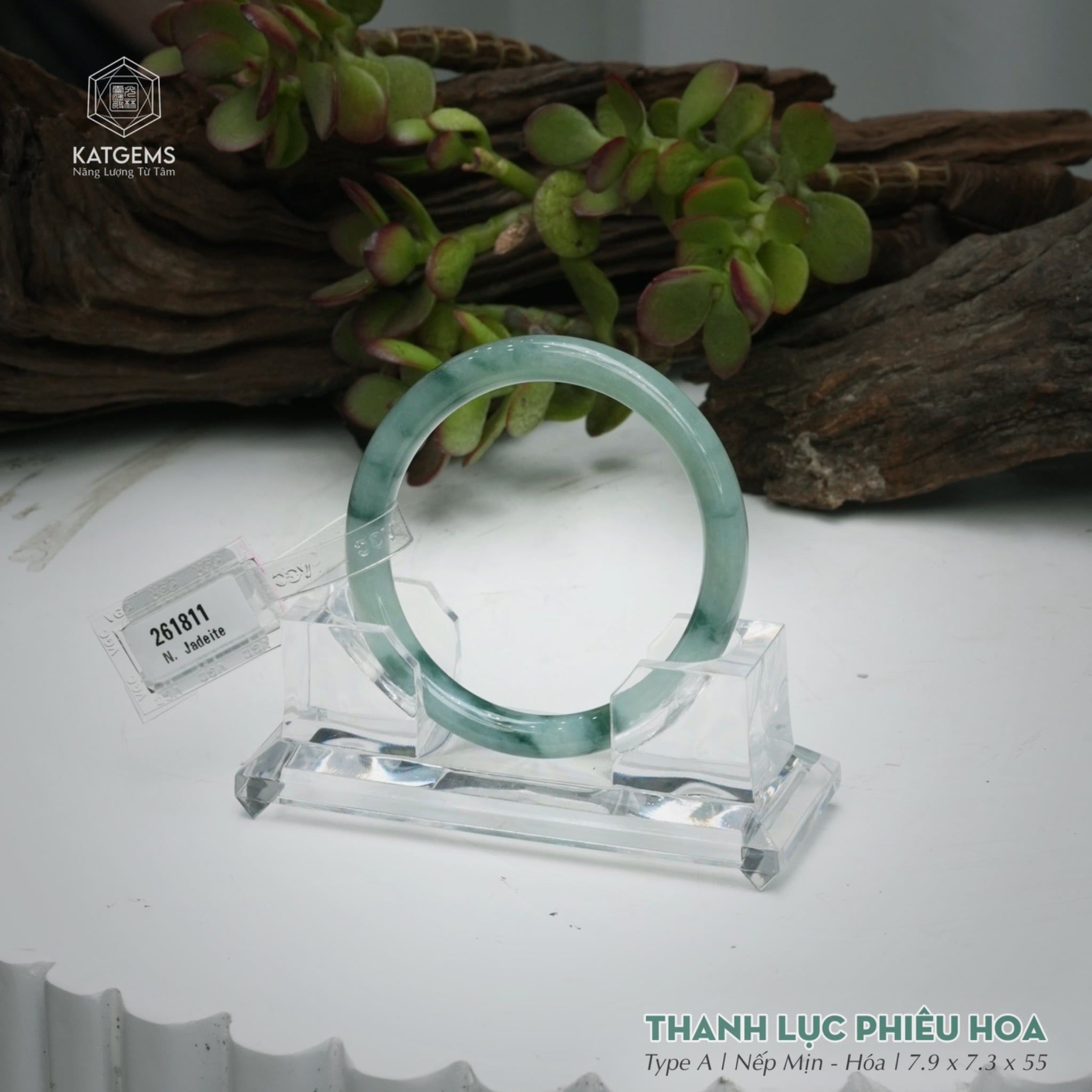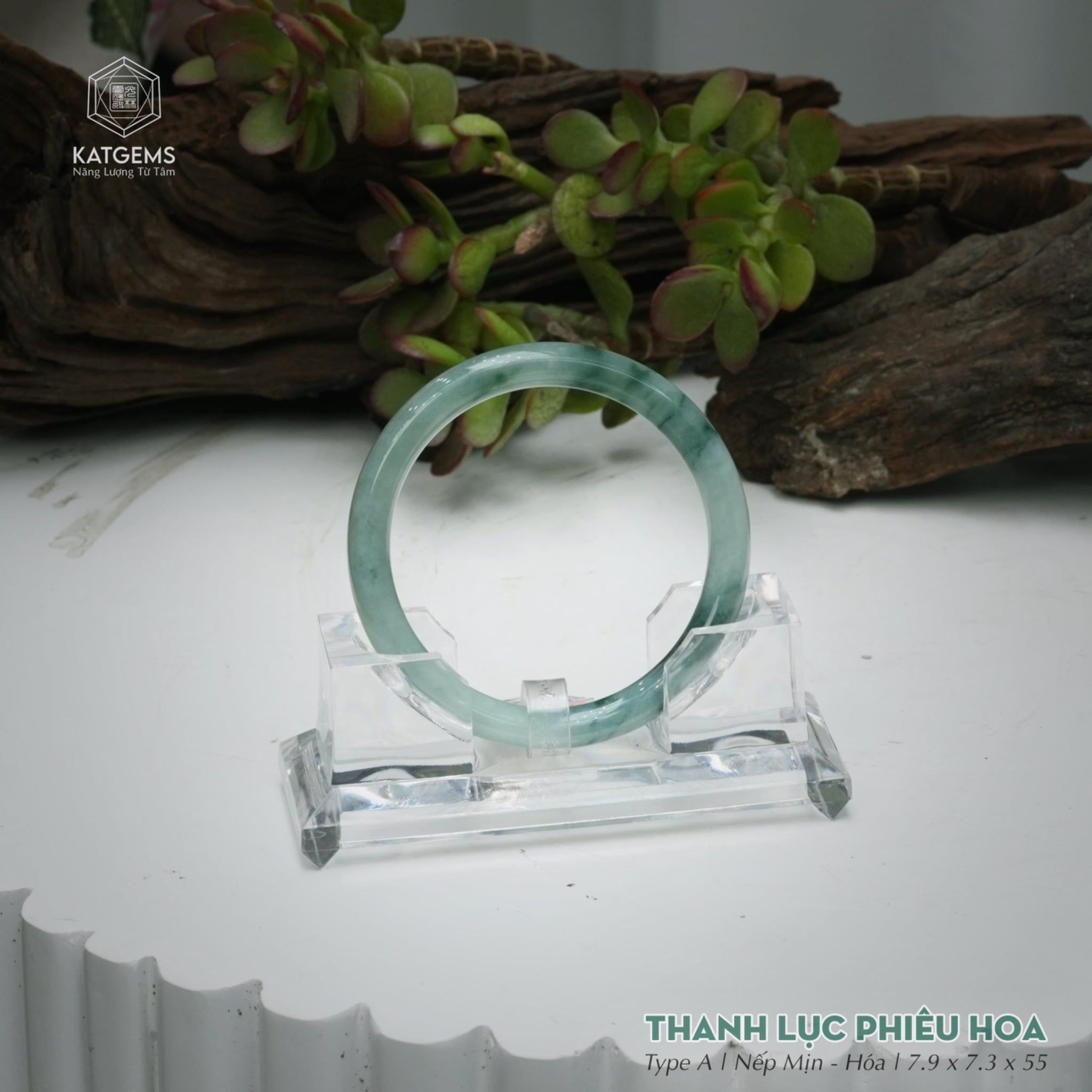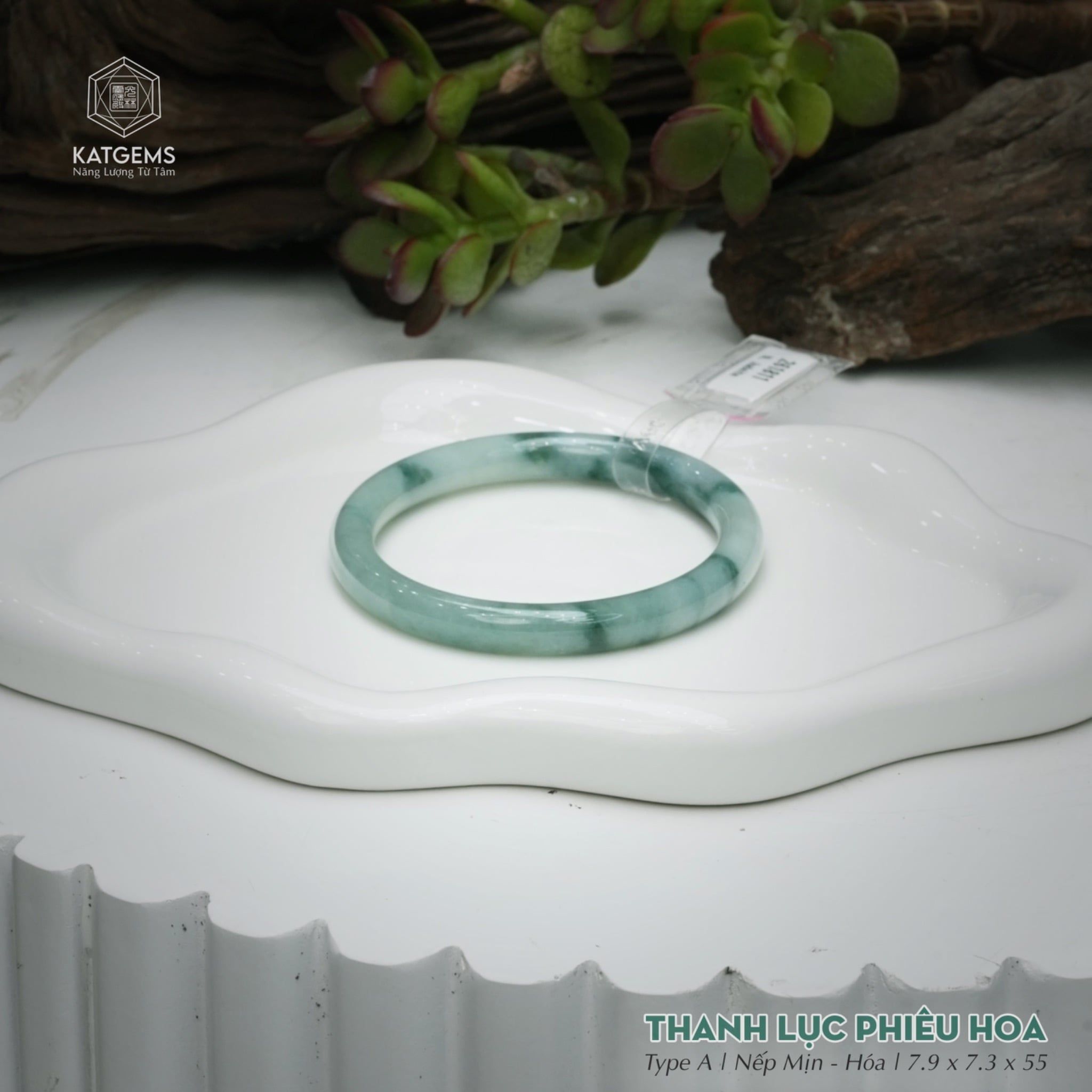 Vòng Khối Ngọc Phỉ Thúy Thanh Lục Phiêu Hoa Cao Cấp Bản Hẹ KT: 7.9 x 7.3 x 55 (Không Kén Mệnh) 261811