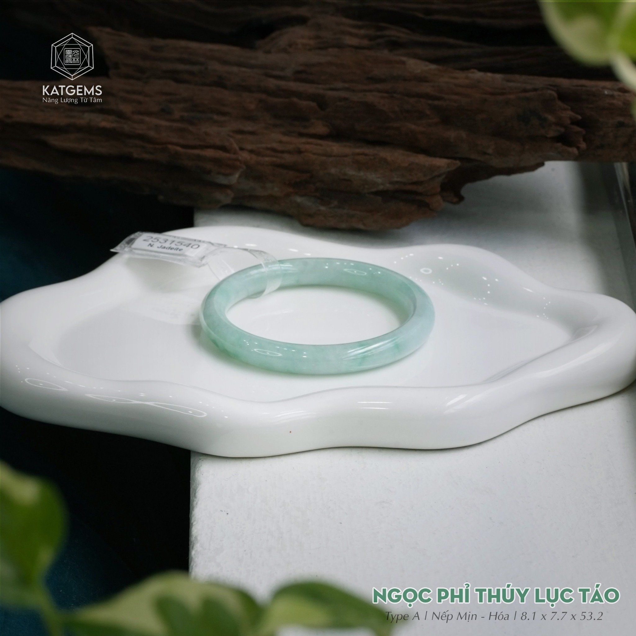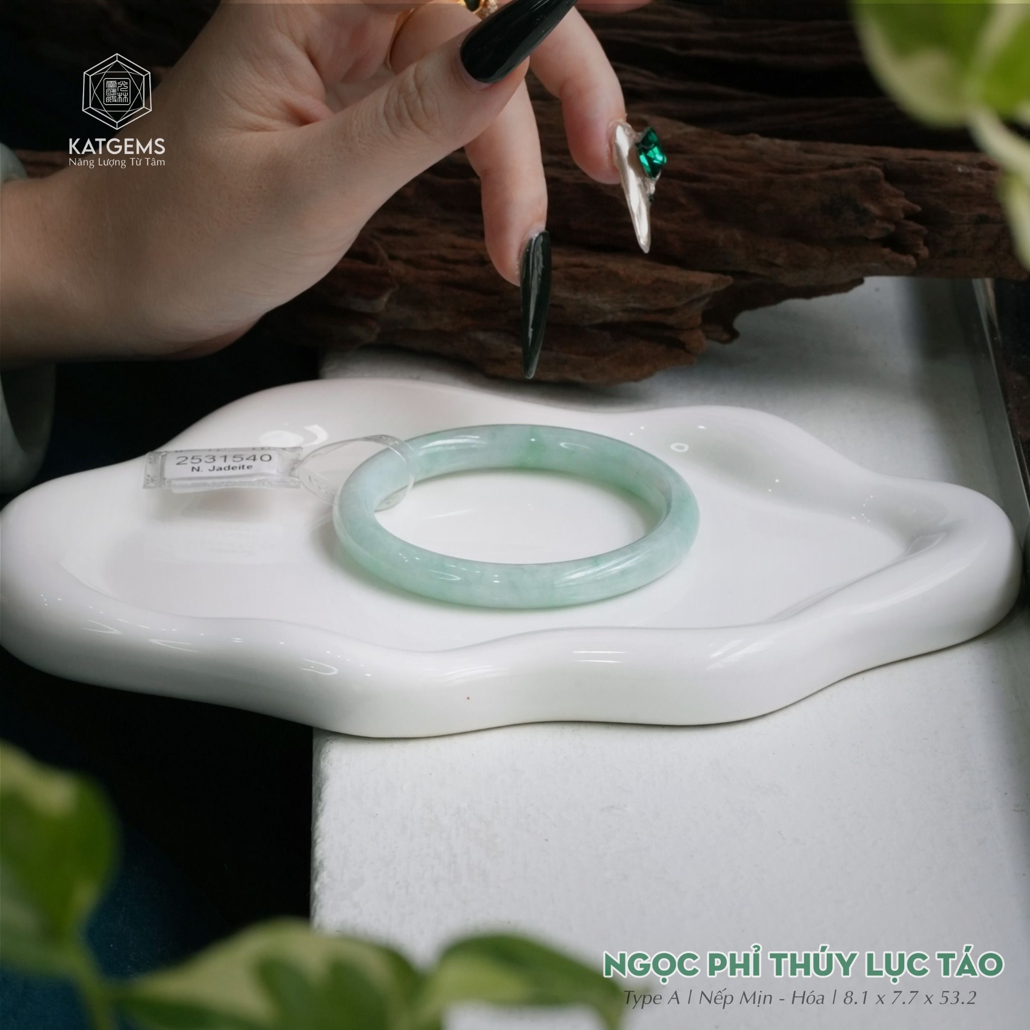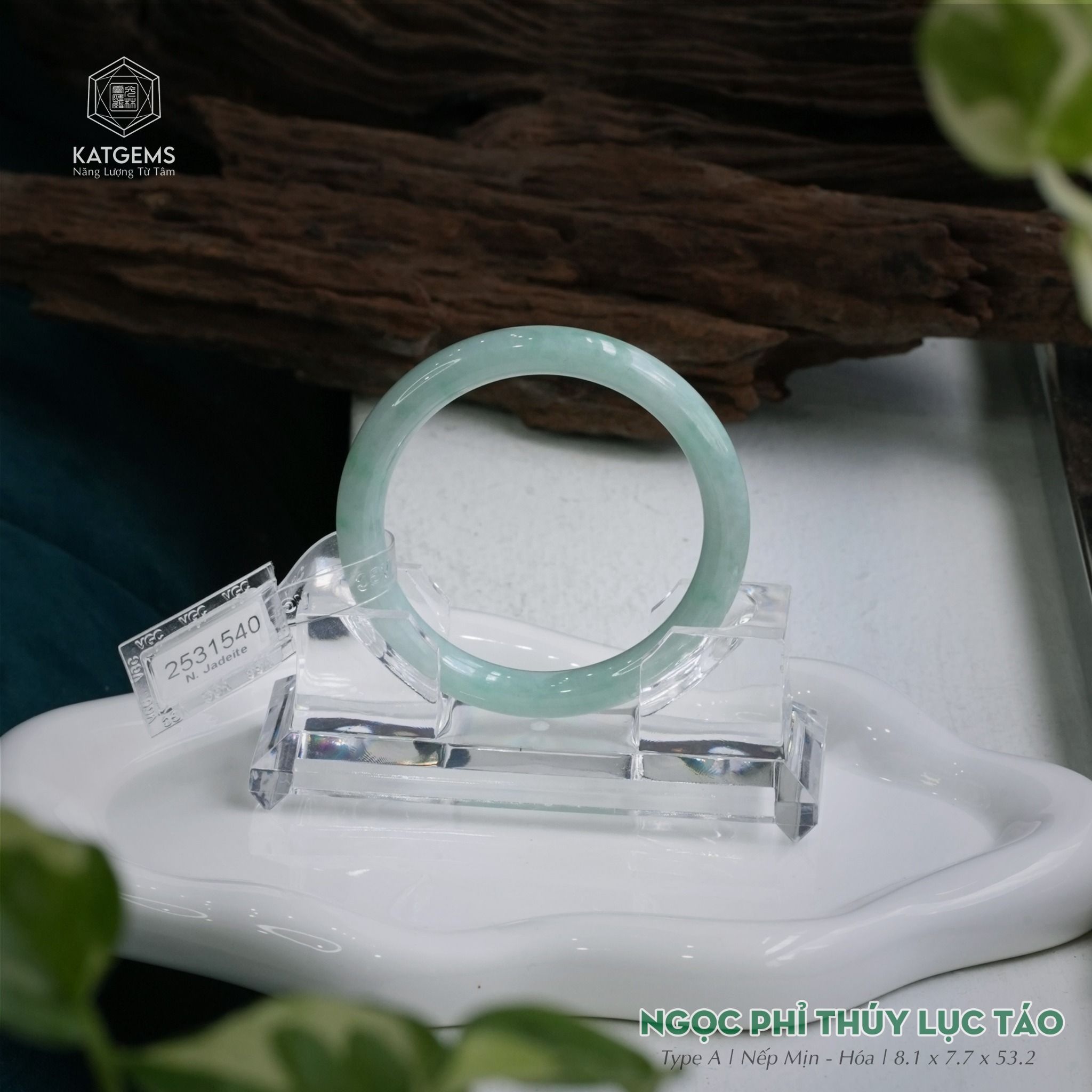 Vòng Khối Ngọc Phỉ Thúy Xanh Lục Táo Cao Cấp Bản Đũa 8.1 x 7.7 x 53.2 (Không Kén Mệnh) 2531540