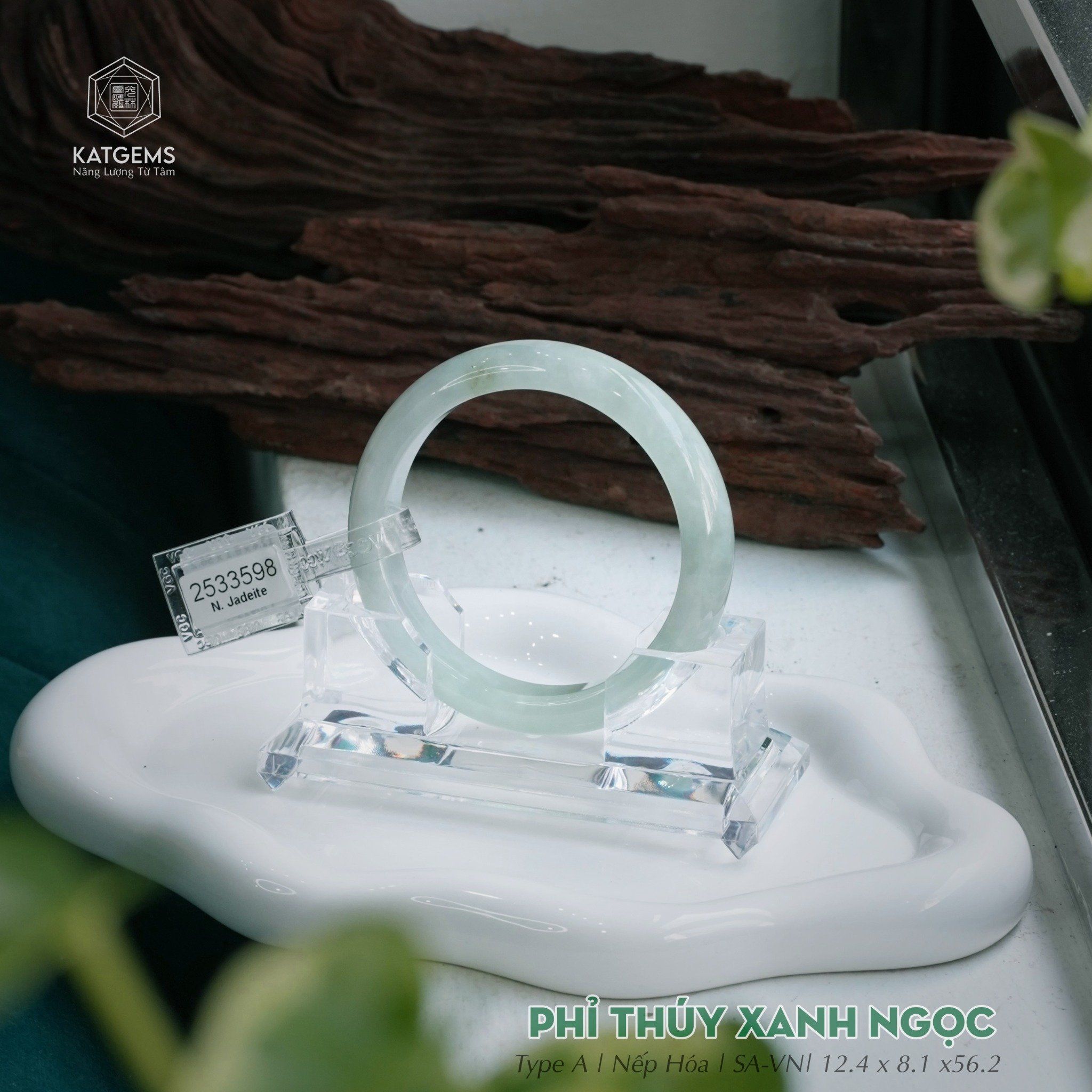 Vòng Khối Ngọc Phỉ Thúy Xanh Ngọc Cao Cấp Bản Hẹ 12.4 x 8.1 x 56.2 (Không Kén Mệnh) 2533598
